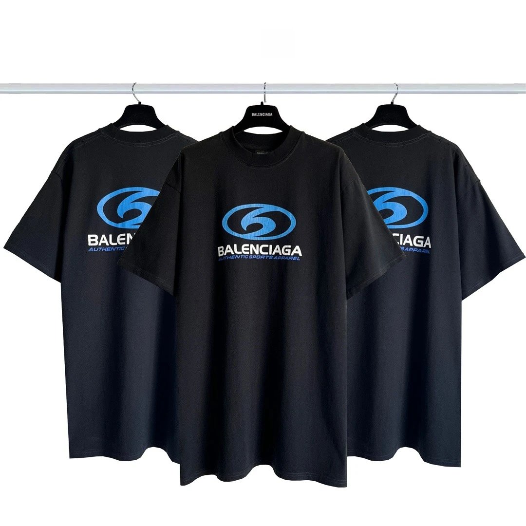 Balenciaga Surf Logo Crack Print Short Sleeve T-Shirt