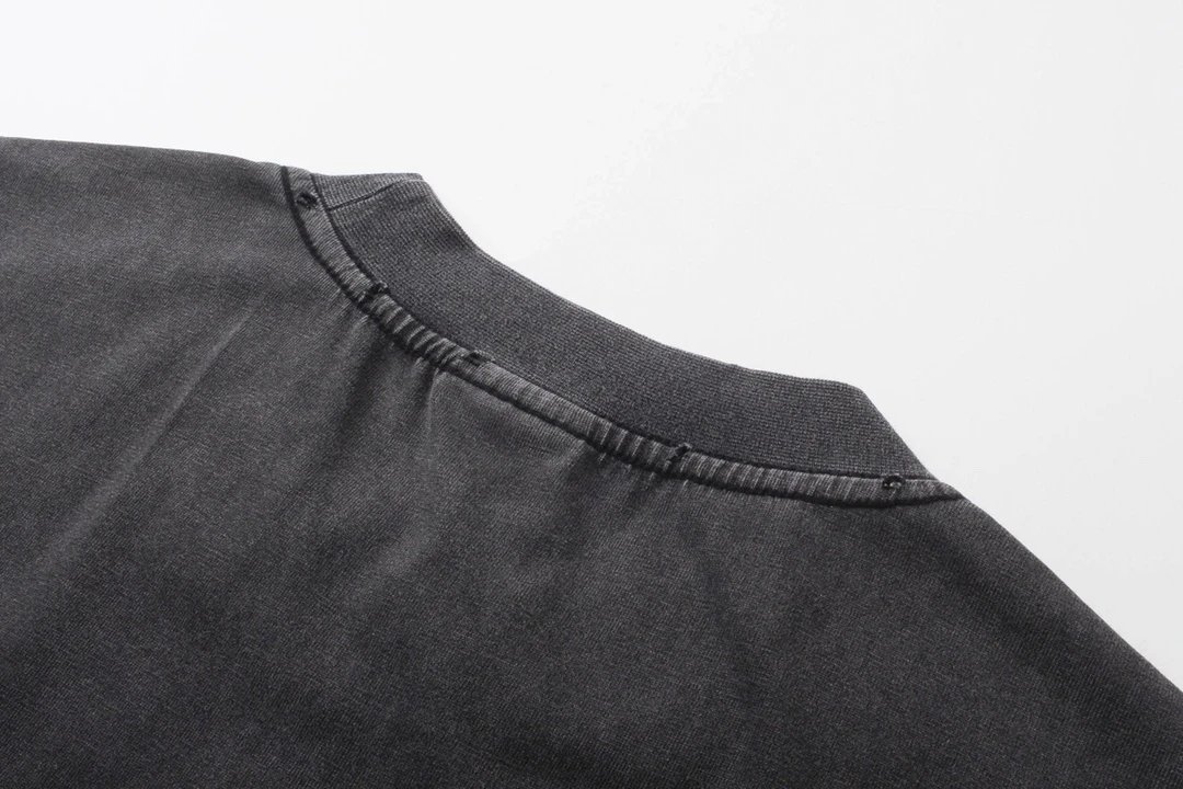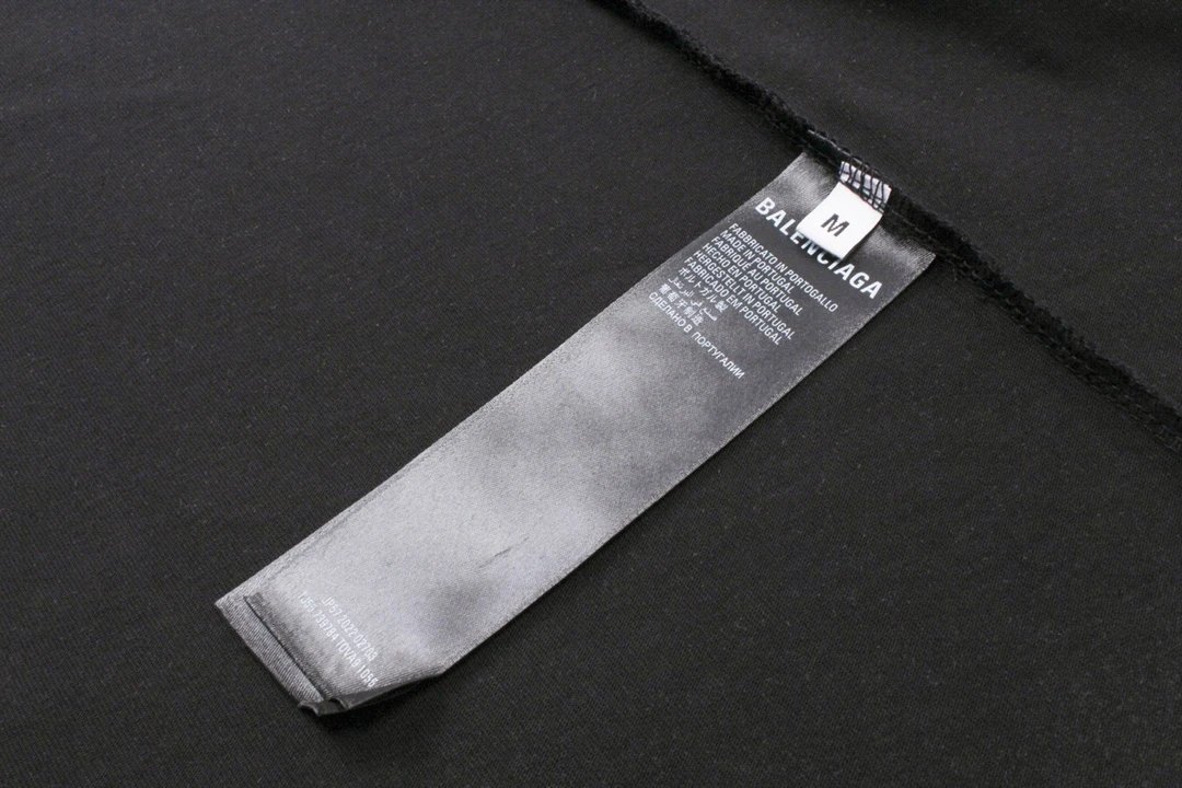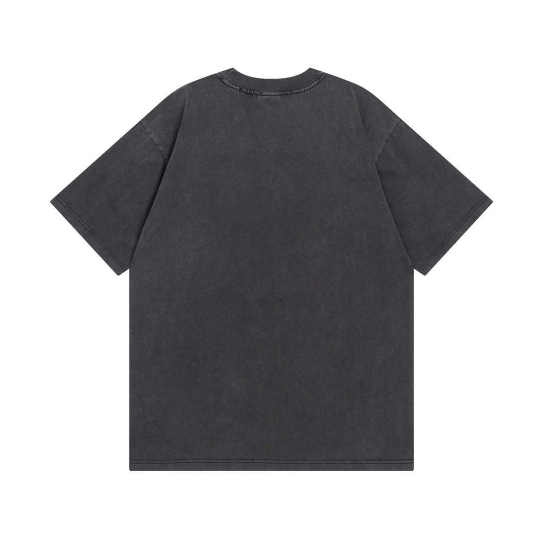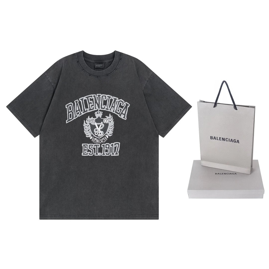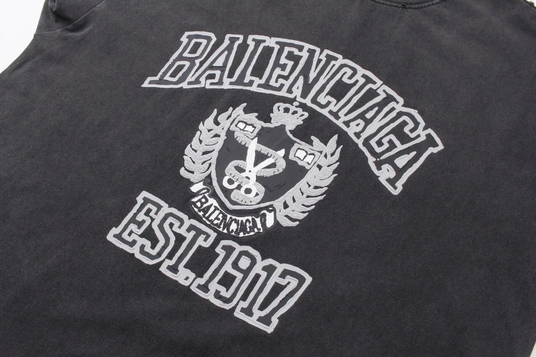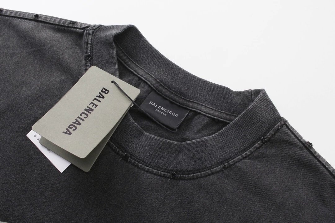 Balenciaga 2024 Spring Washed Black T-Shirt: foam print, 260g double cotton, oversize unisex fit, vintage washed effect.