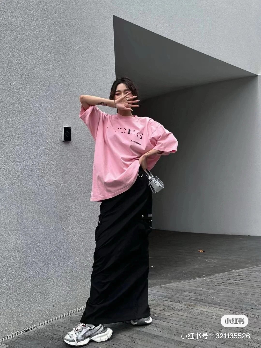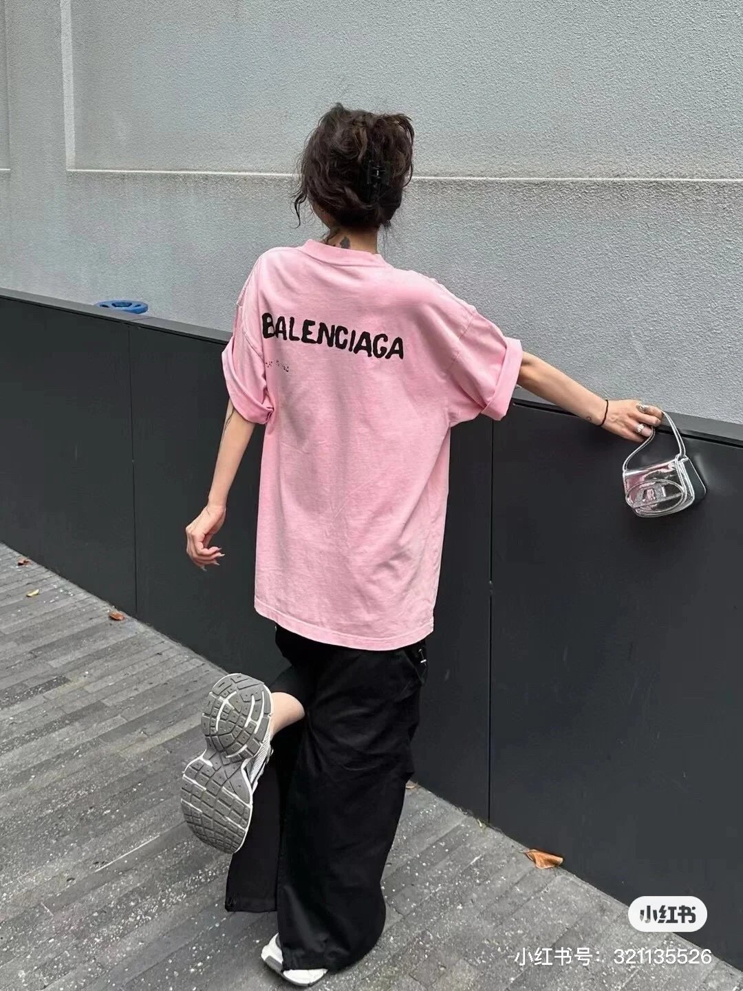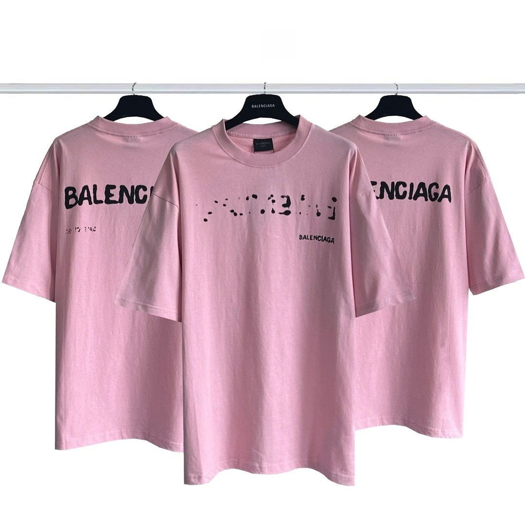 Balenciaga 2023 Blurred Shadow Logo Pink T-Shirt