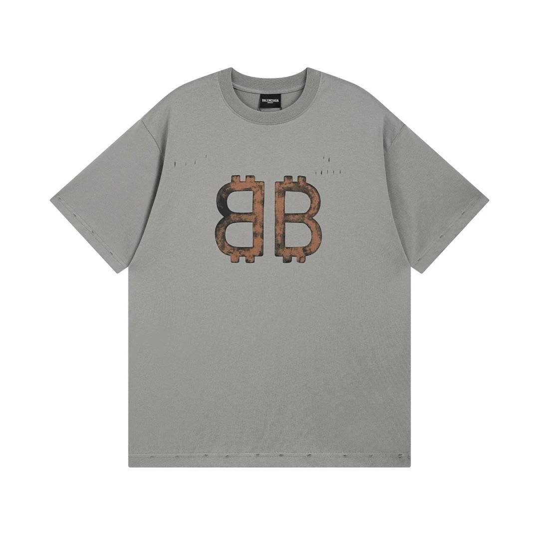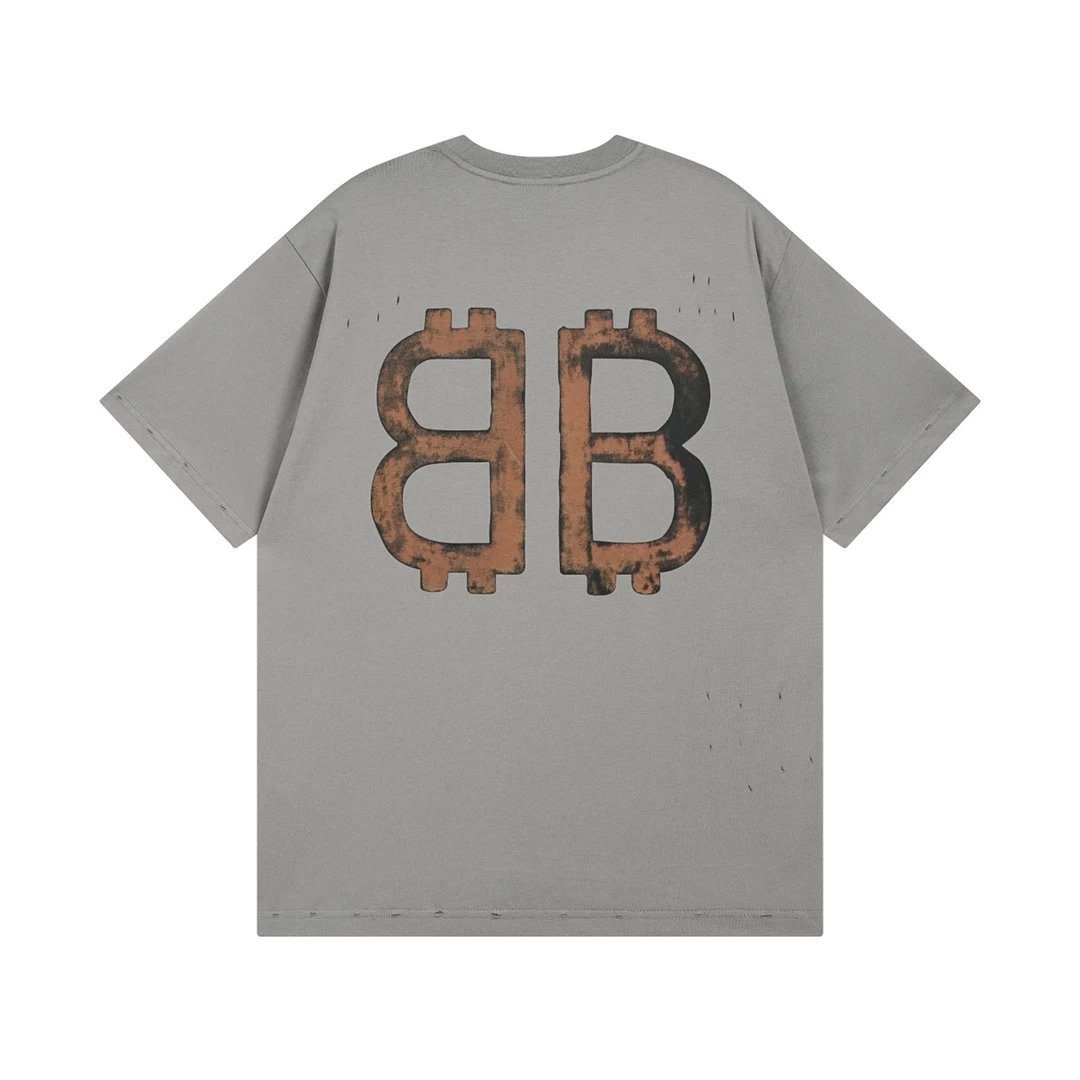 Balenciaga 2023 Distressed Hand-Painted Cotton T-Shirts, boutique quality. 260g custom double cotton, soft & breathable. OS loose drop-shoulder, unisex.