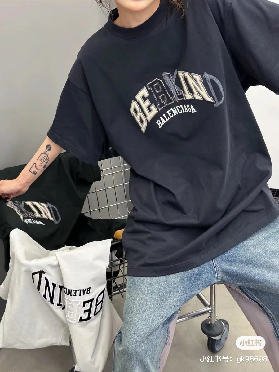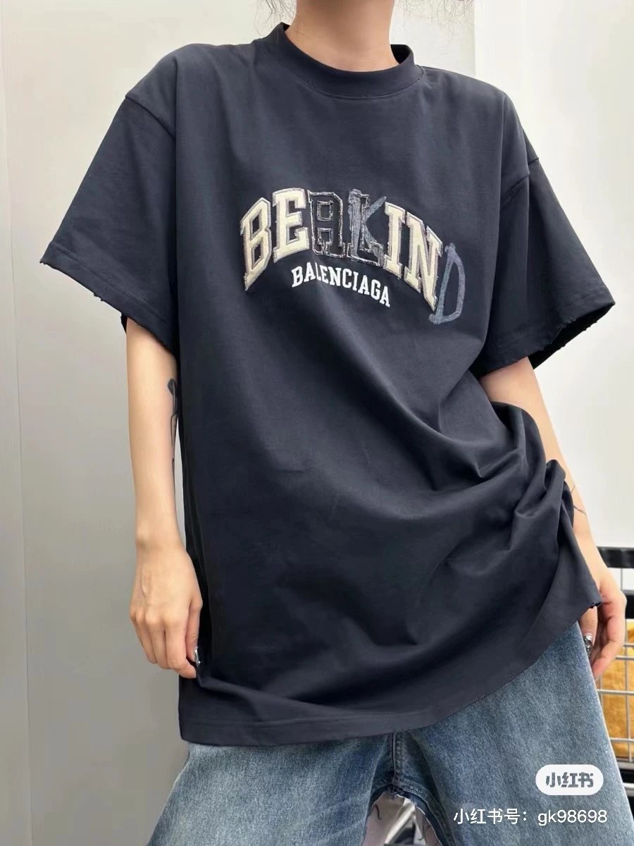 Balenciaga Be Kind Embroidered T-Shirt uses 32S combed cotton with thick texture.