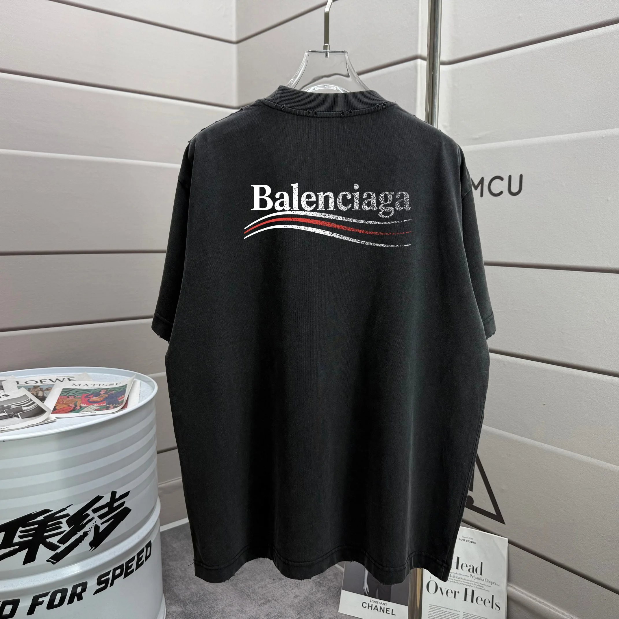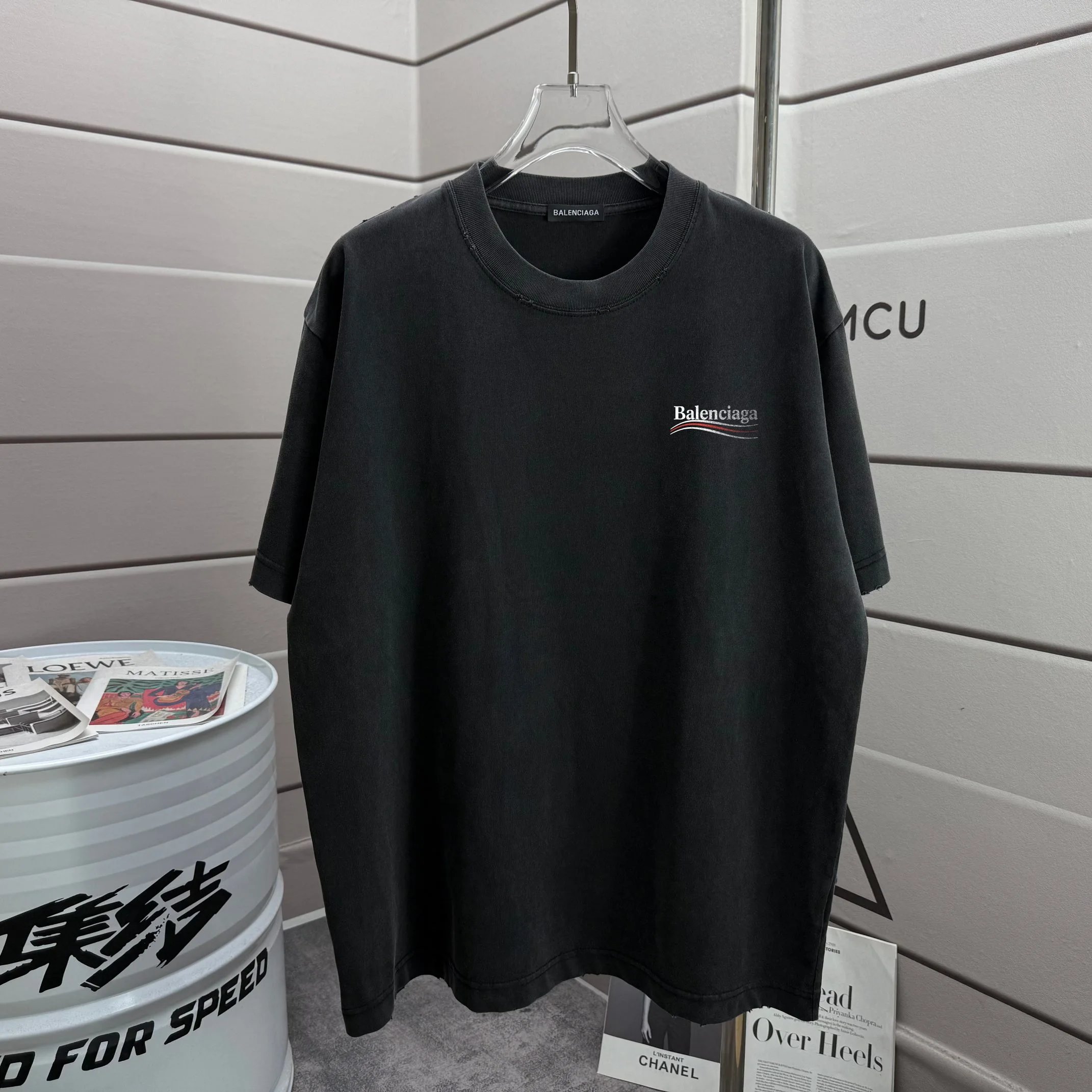 Balenciaga 2026 SS new collection distressed crew neck T-shirt, 320g fabric, unisex loose fit.