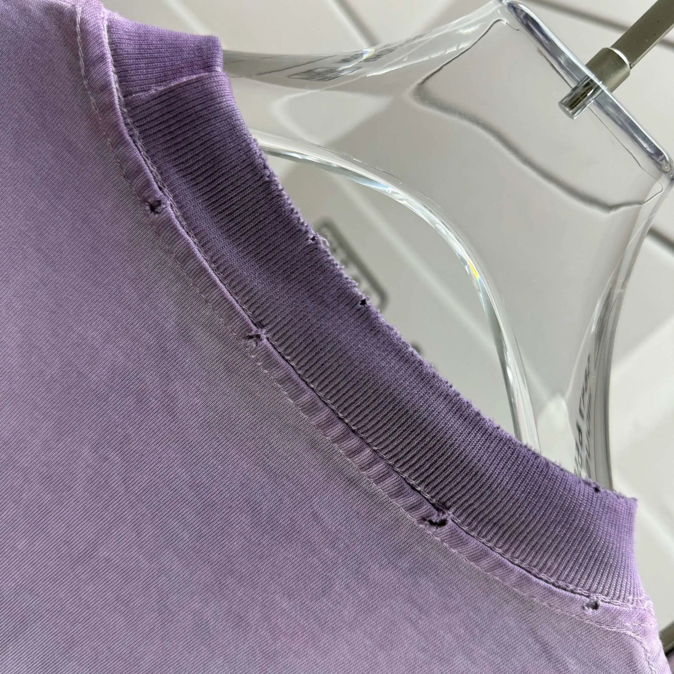 Balenciaga 2026 Spring-Summer new washed distressed crew neck short-sleeve T-shirt, unisex loose fit, 320g heavy cotton.