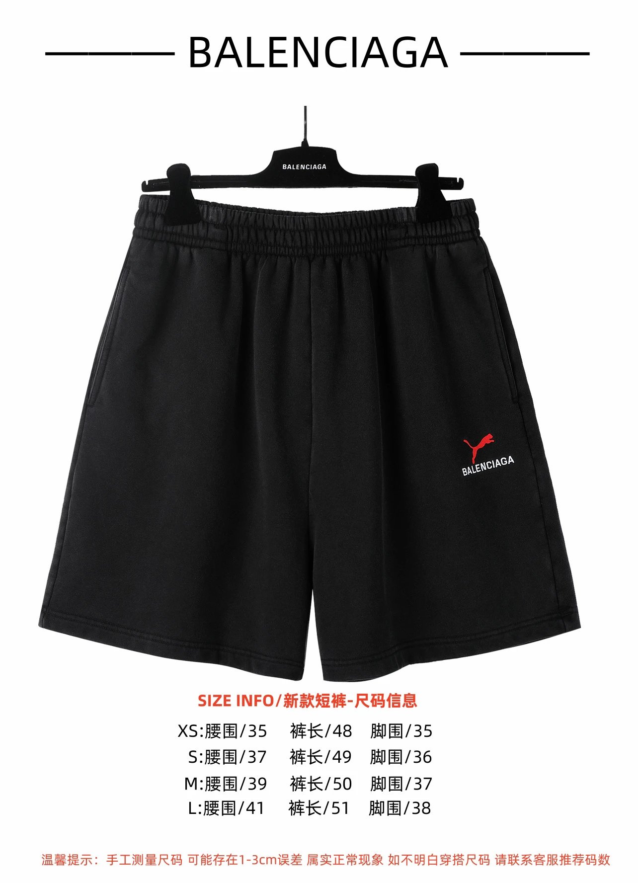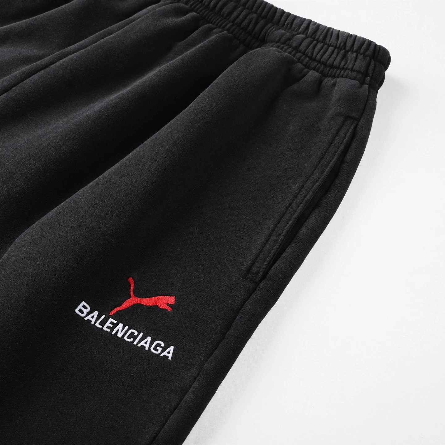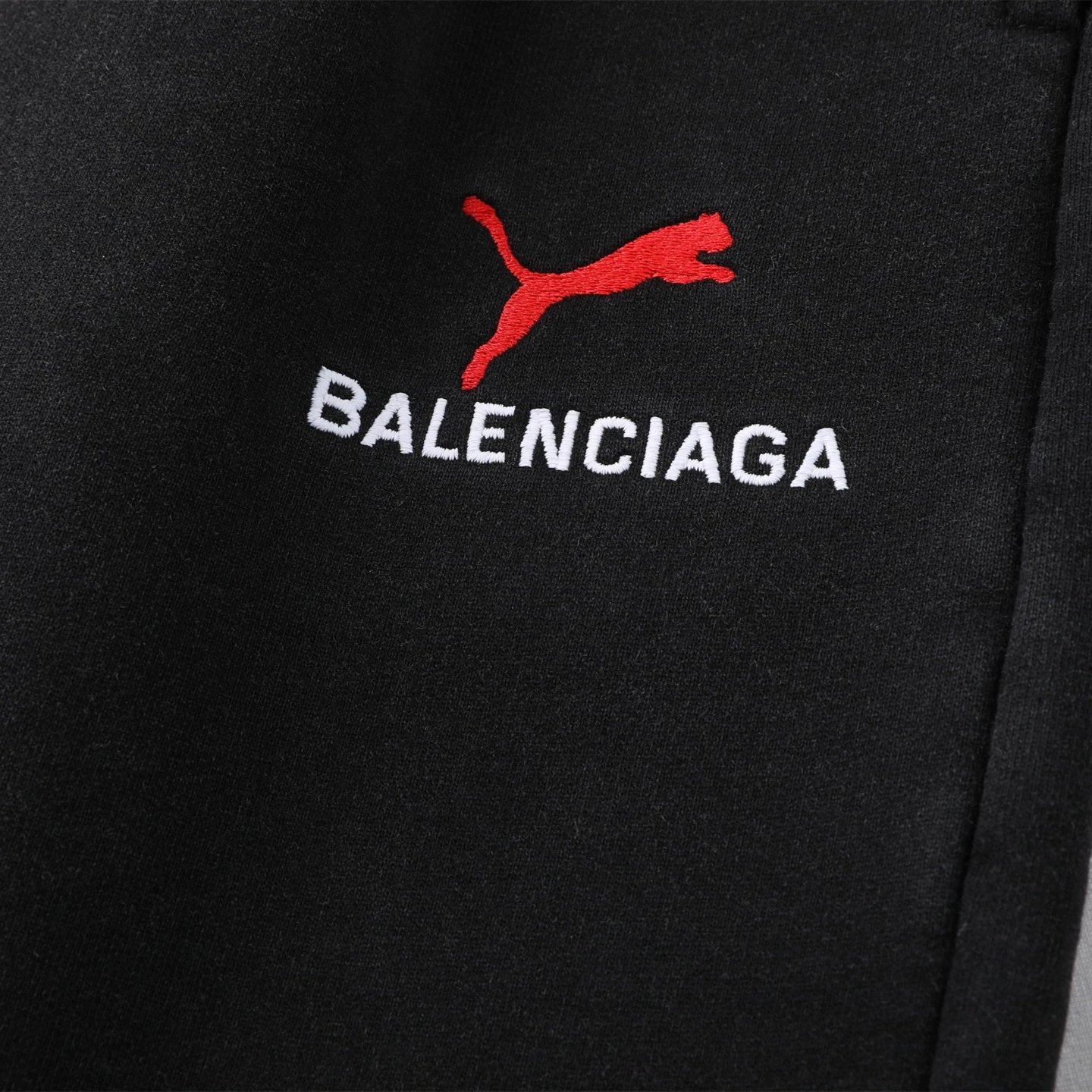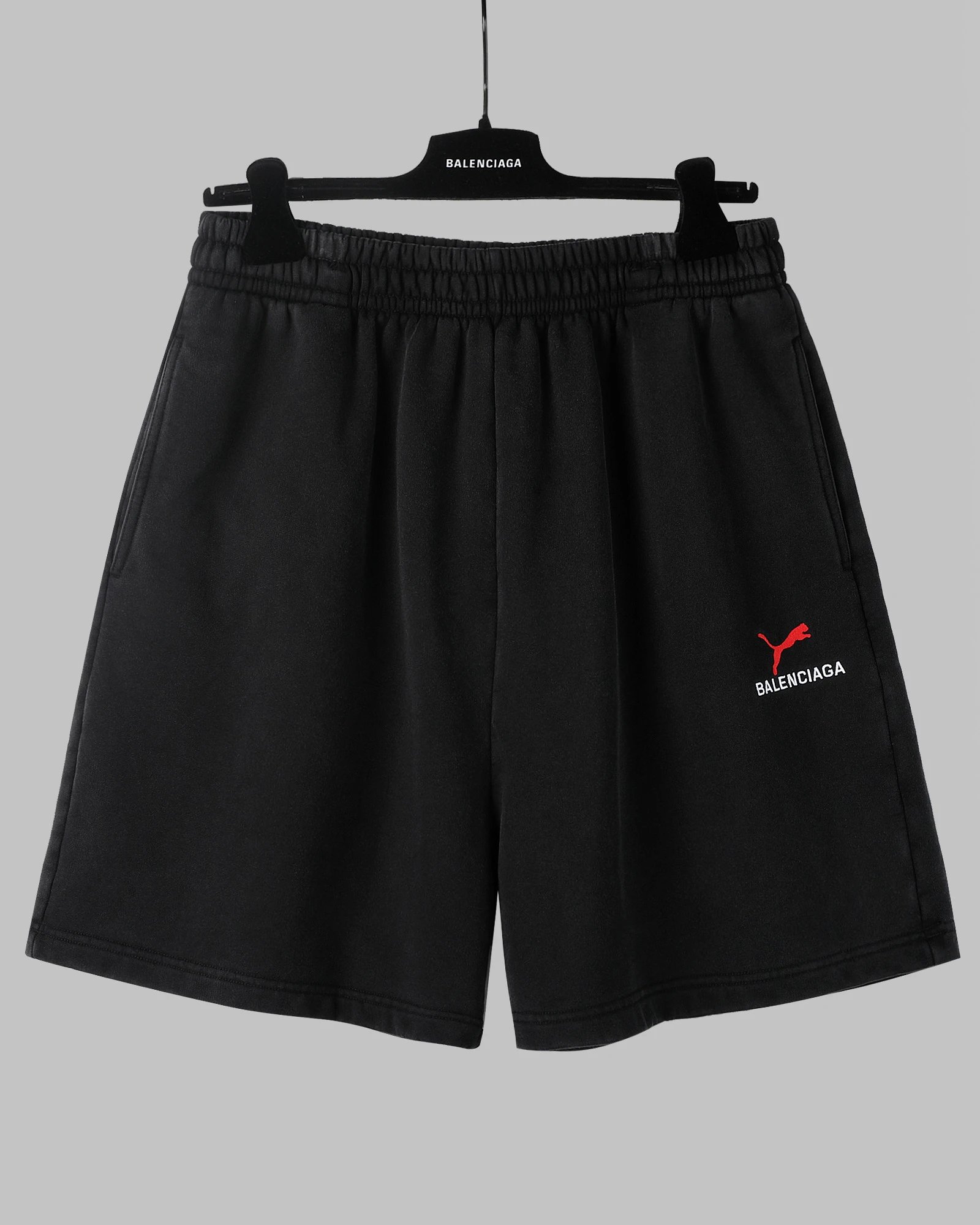 Balenciaga 25SS Puma Embroidered Shorts use 480g custom fabric, stone-washed for thick handfeel.