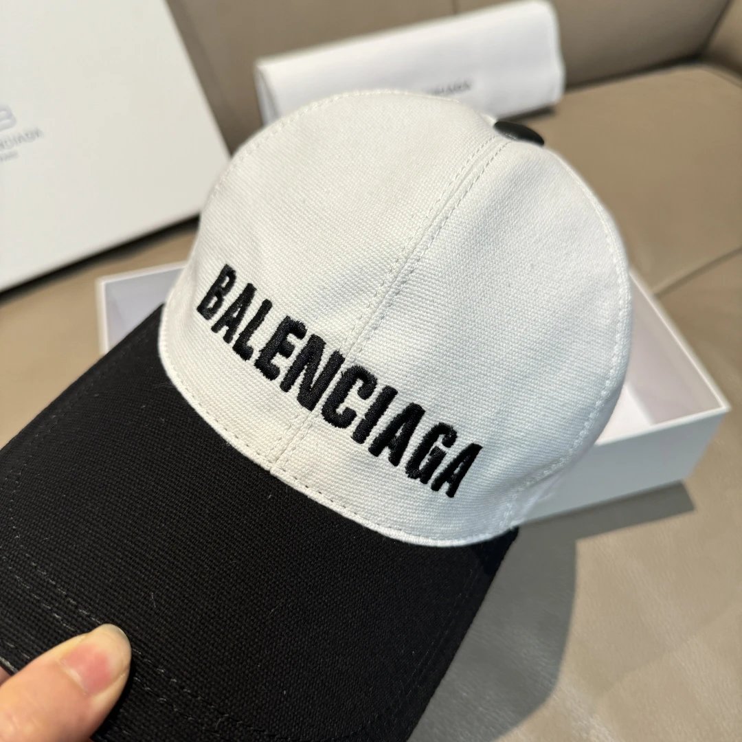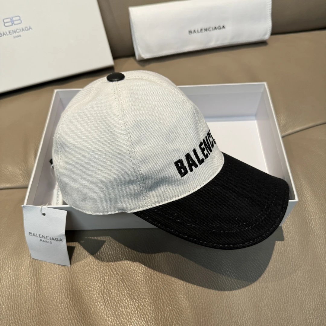 Balenciaga New Baseball Cap: Black White Patchwork, original canvas & top layer leather, precise 3D embroidery, fine workmanship, factory quality, exclusive real shot.