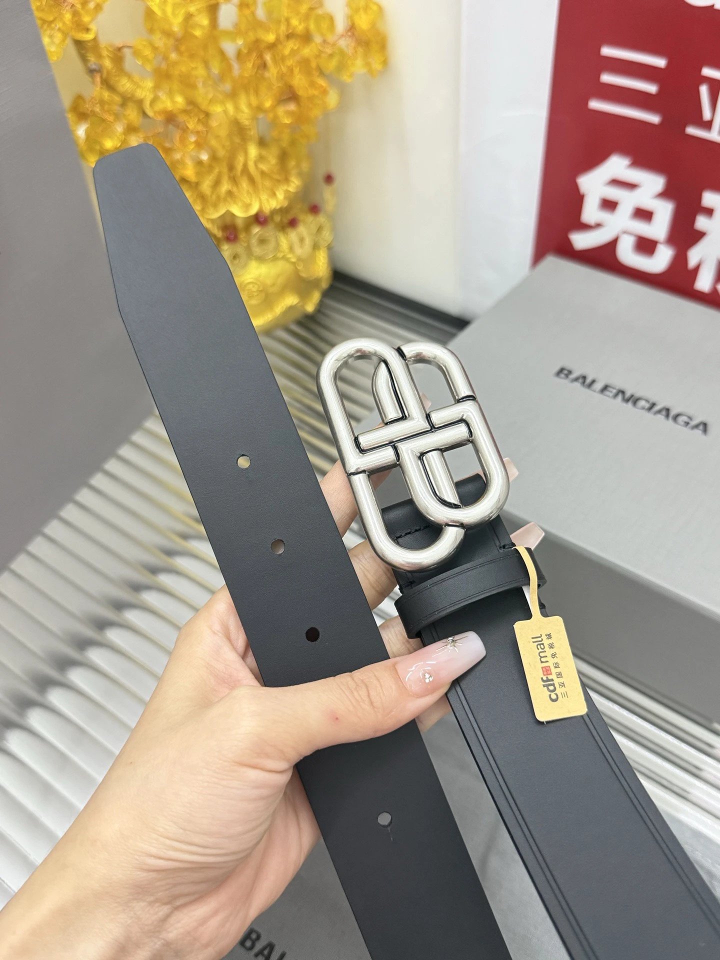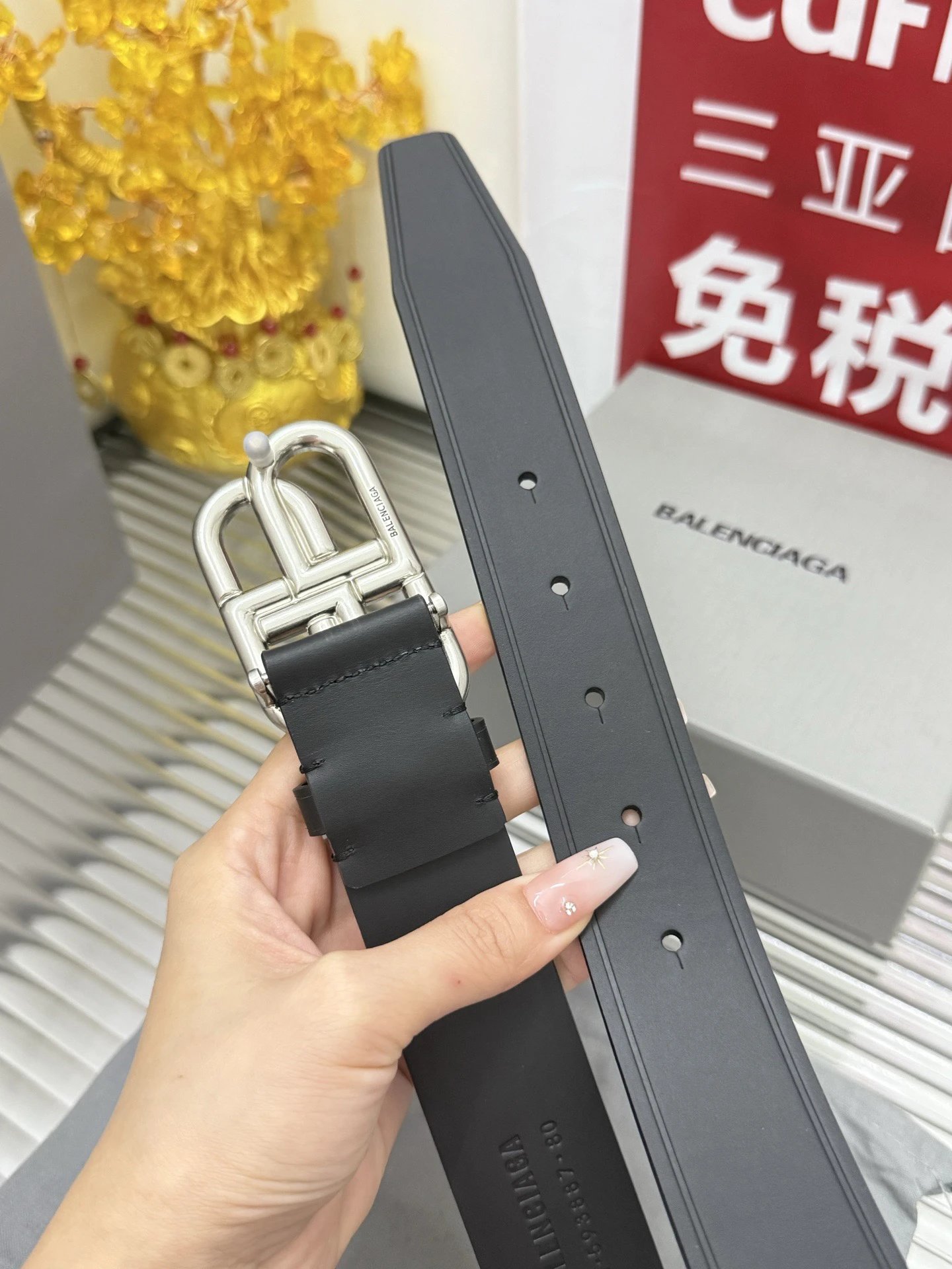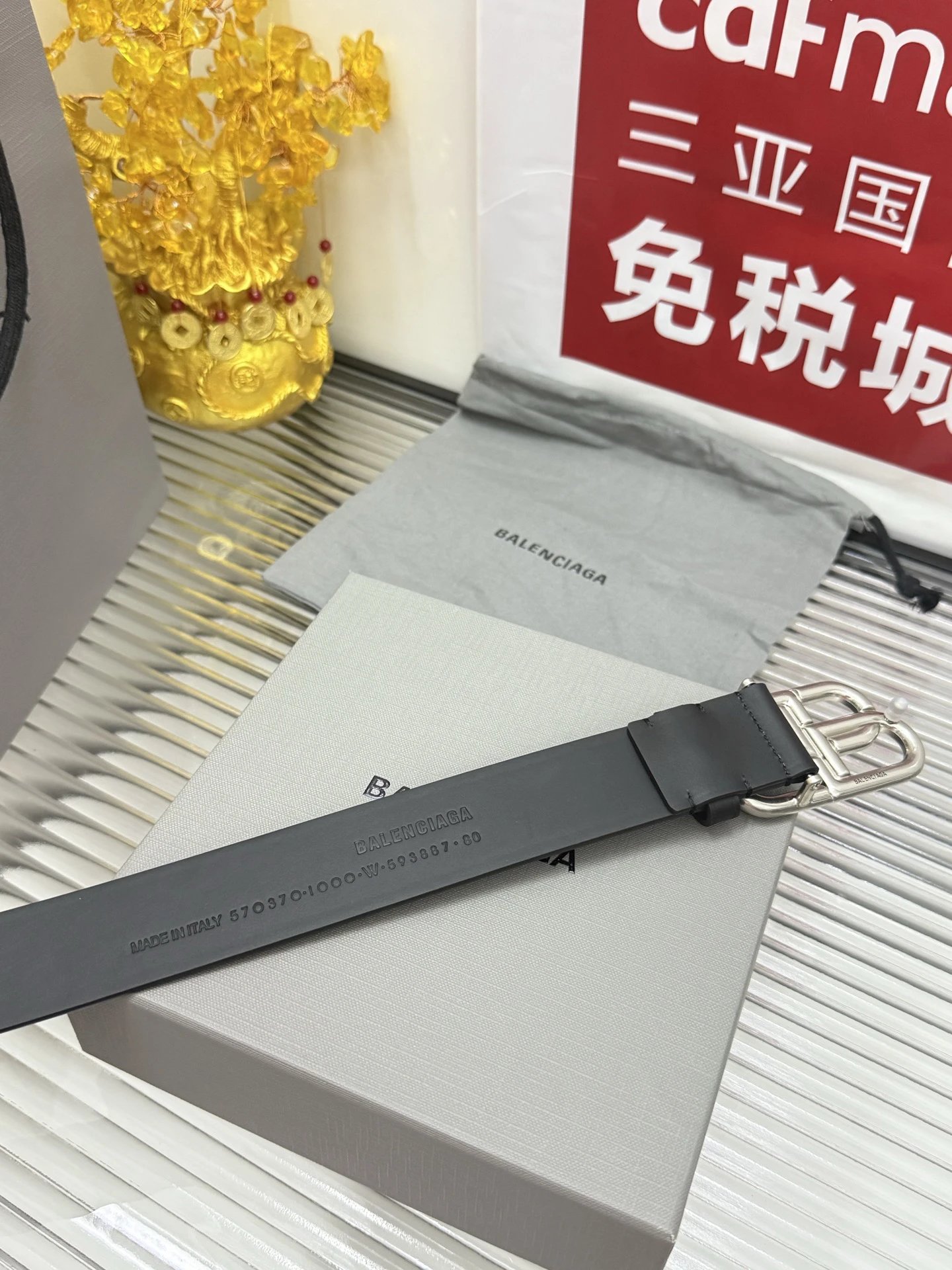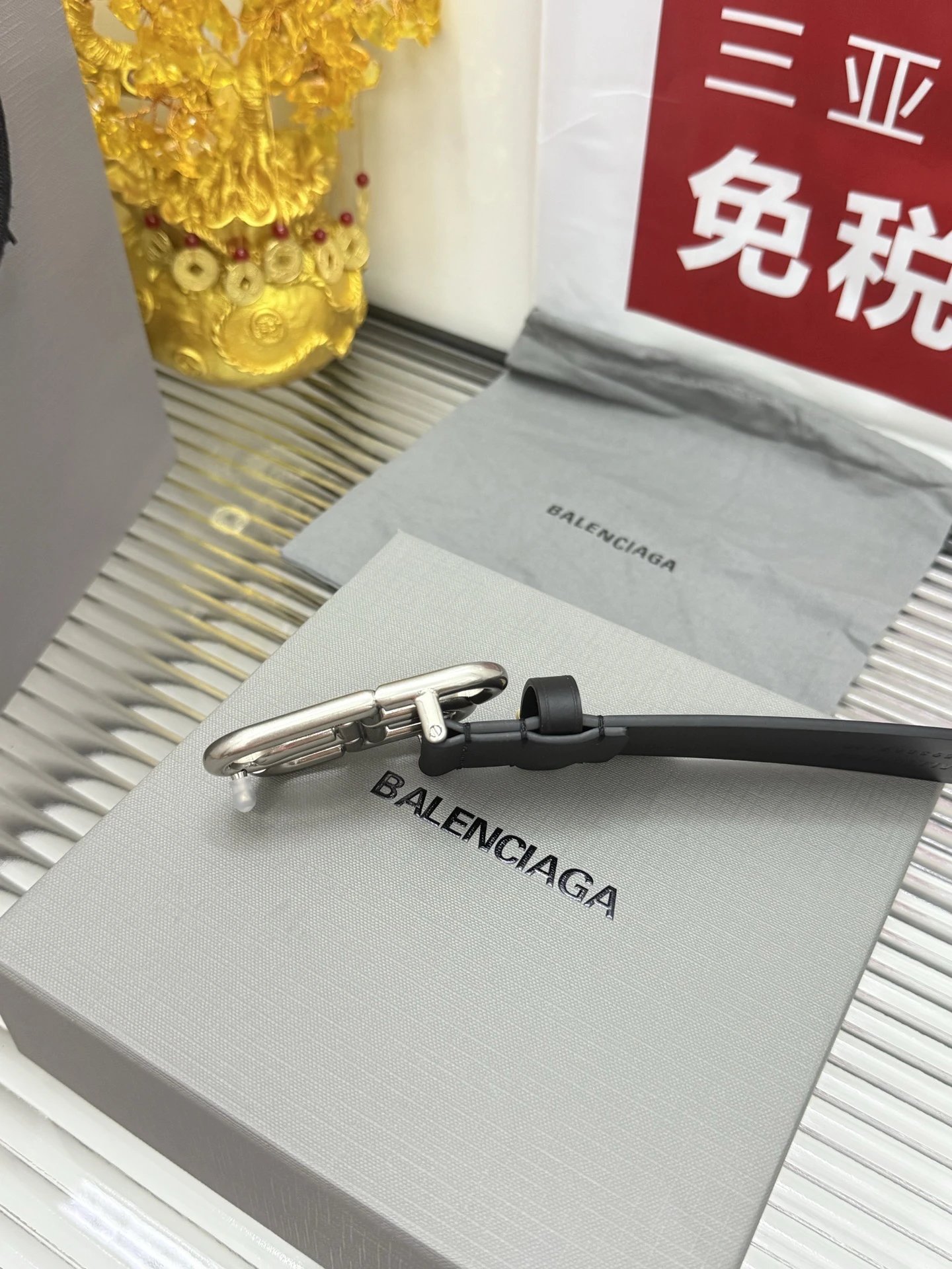 Balenciaga classic accessory uses imported calfskin with black grain & matte black copper buckle.
