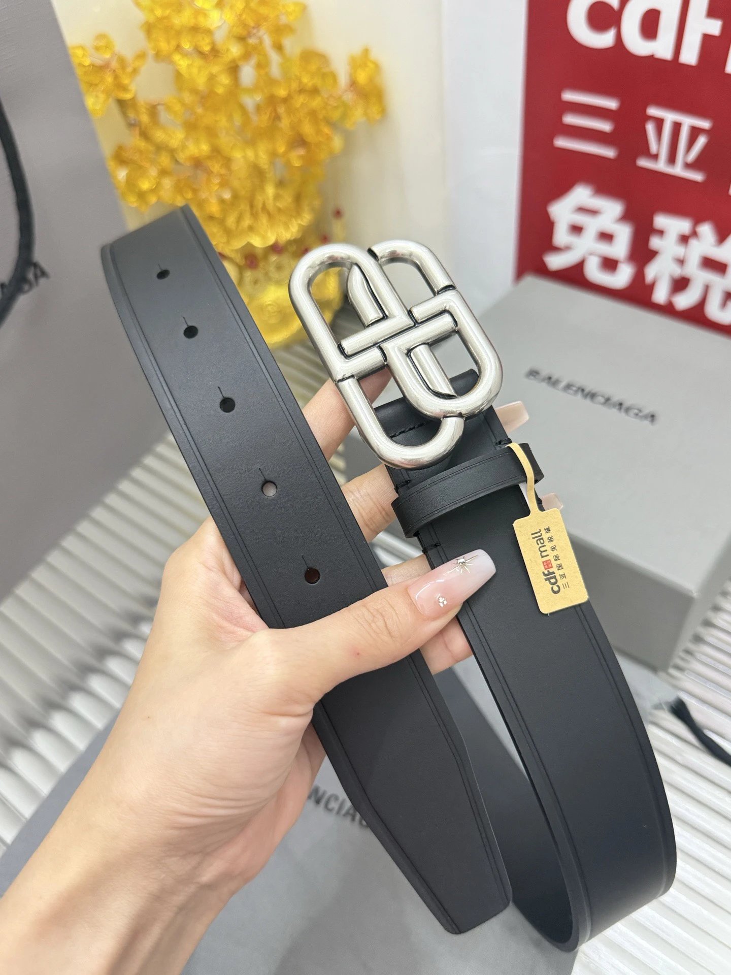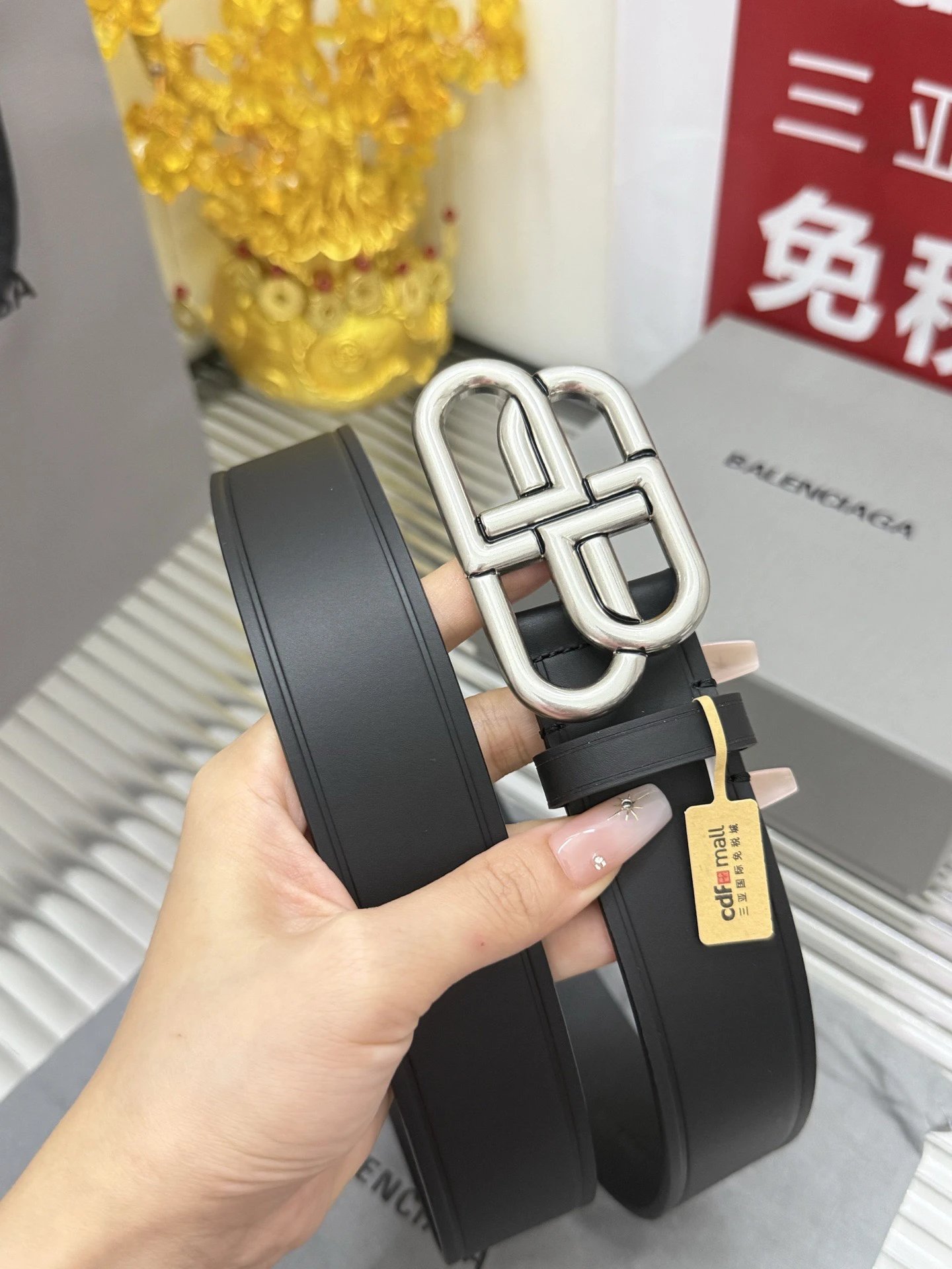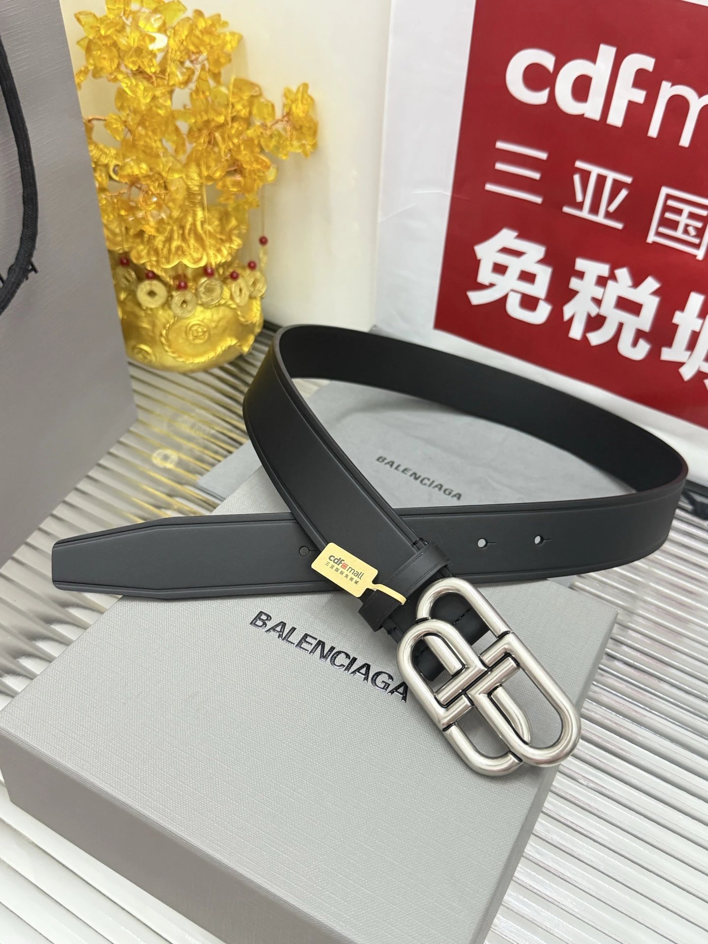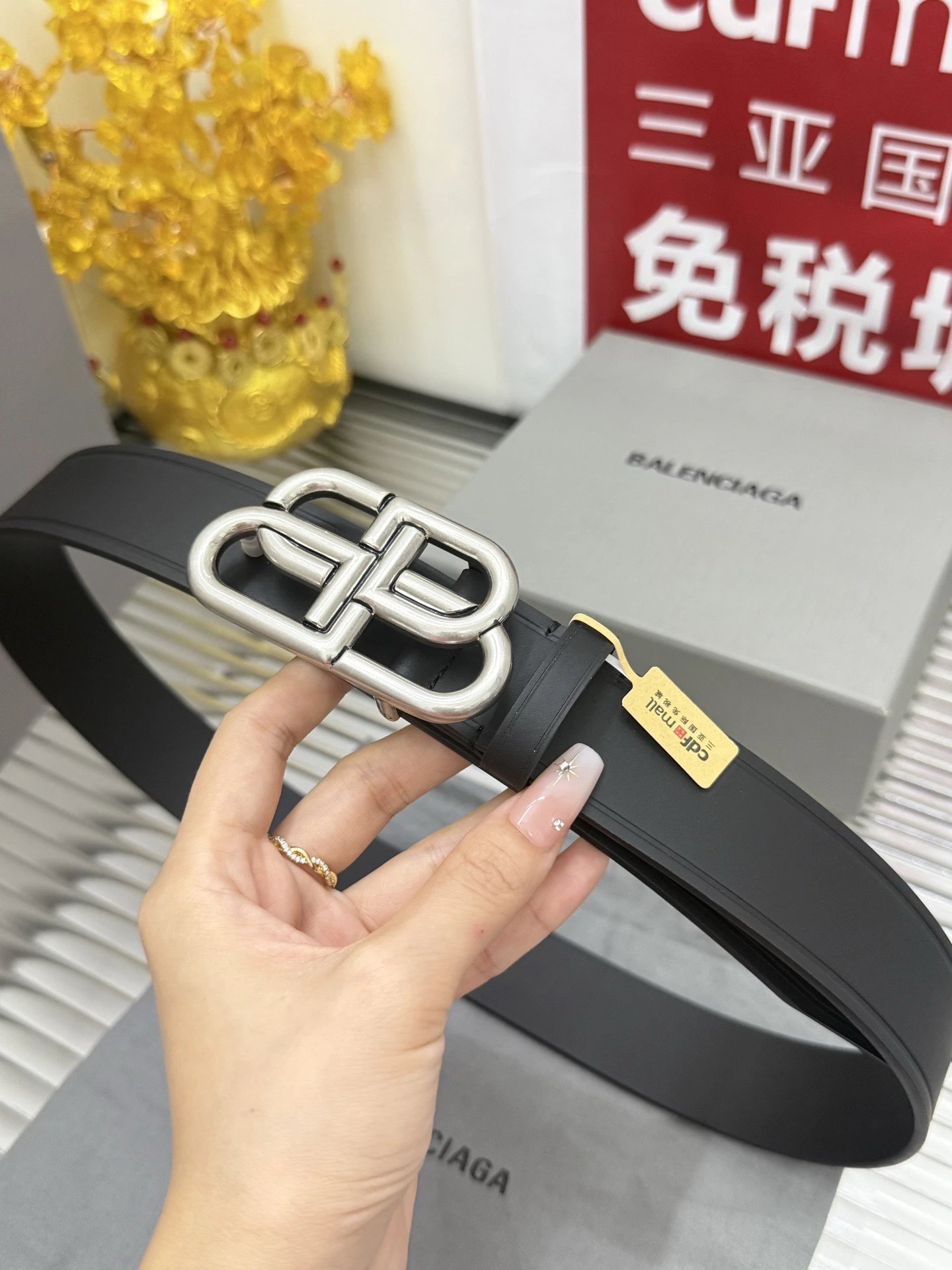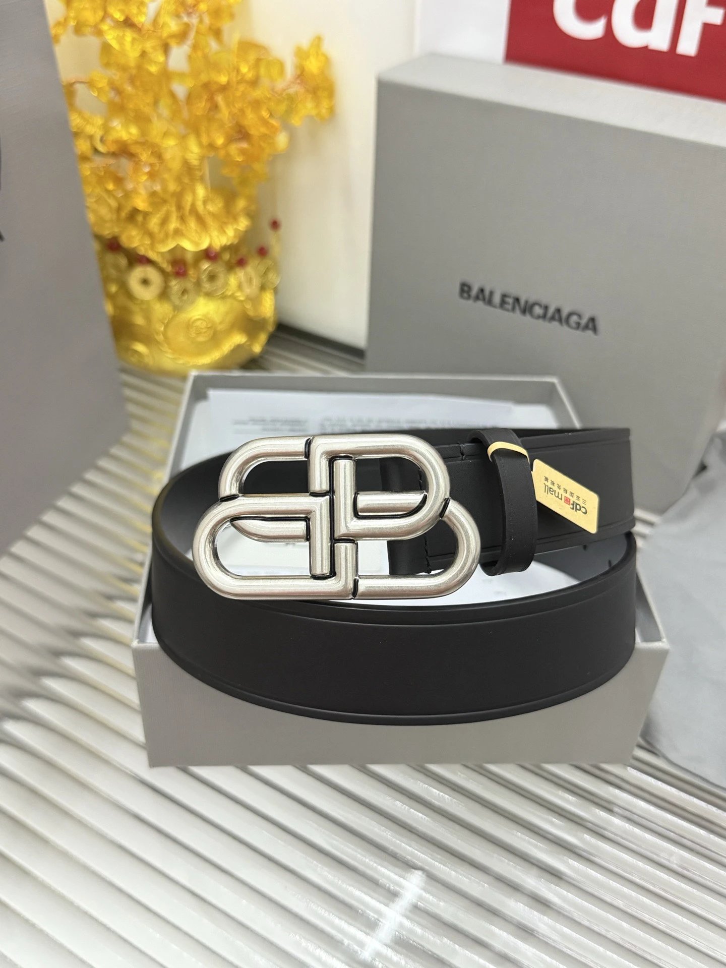 Balenciaga classic accessory uses imported calfskin with black grain & matte black copper buckle.