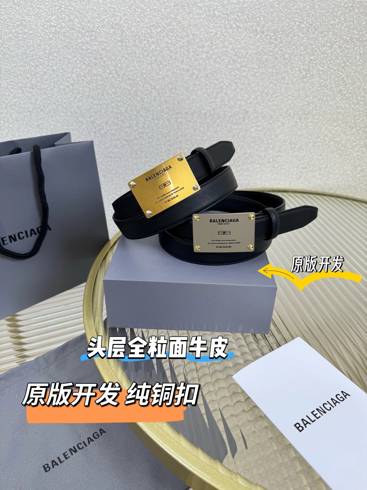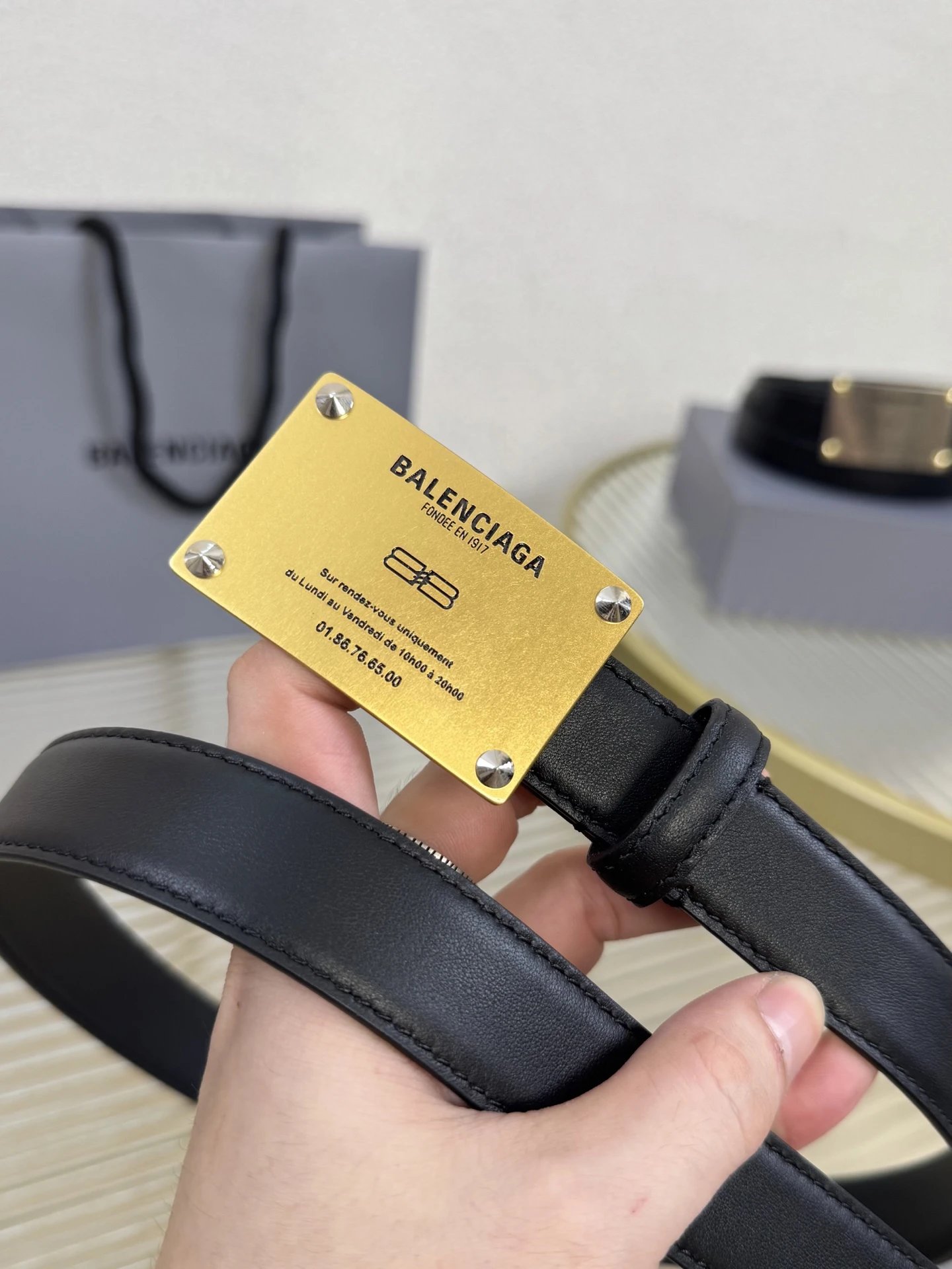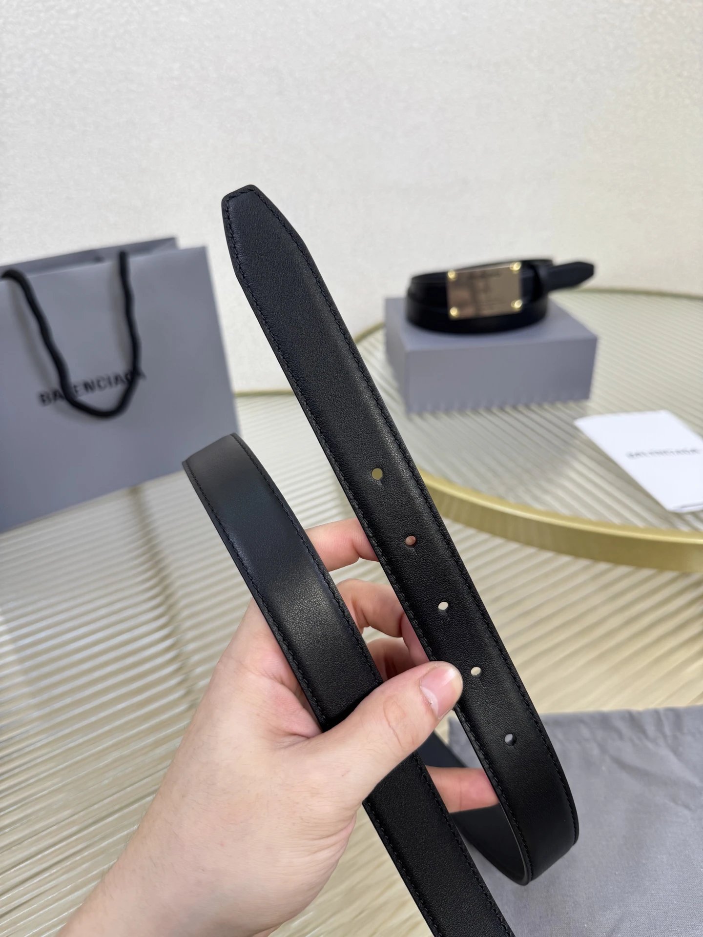 Balenciaga is a French luxury brand. This 2.5cm belt uses imported calfskin & vintage brass hardware, blending urban trends for versatile styling.