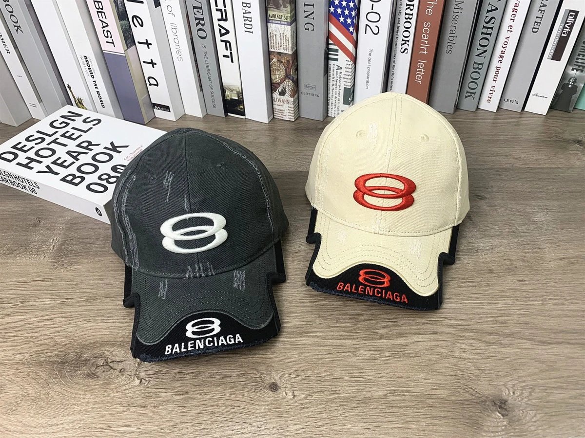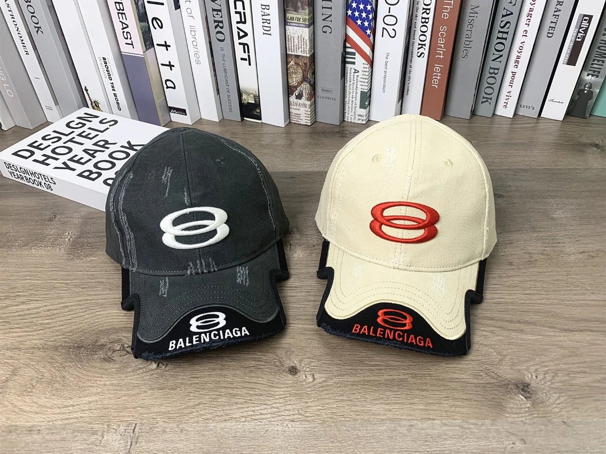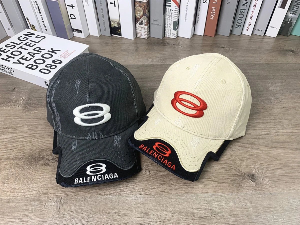 Balenciaga Washed Double Ring Baseball Cap with new double ring letter embroidery, top version and washed finish.