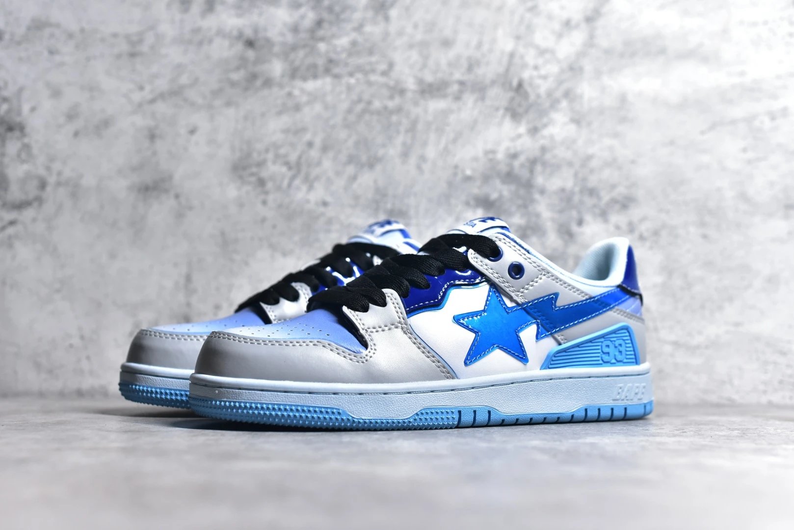 Features suede upper, rubber sole, STA logo, "93" year mark & BAPE heel embroidery.