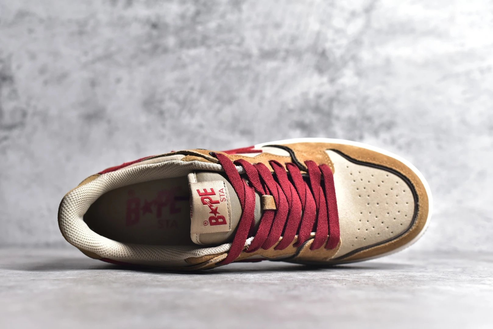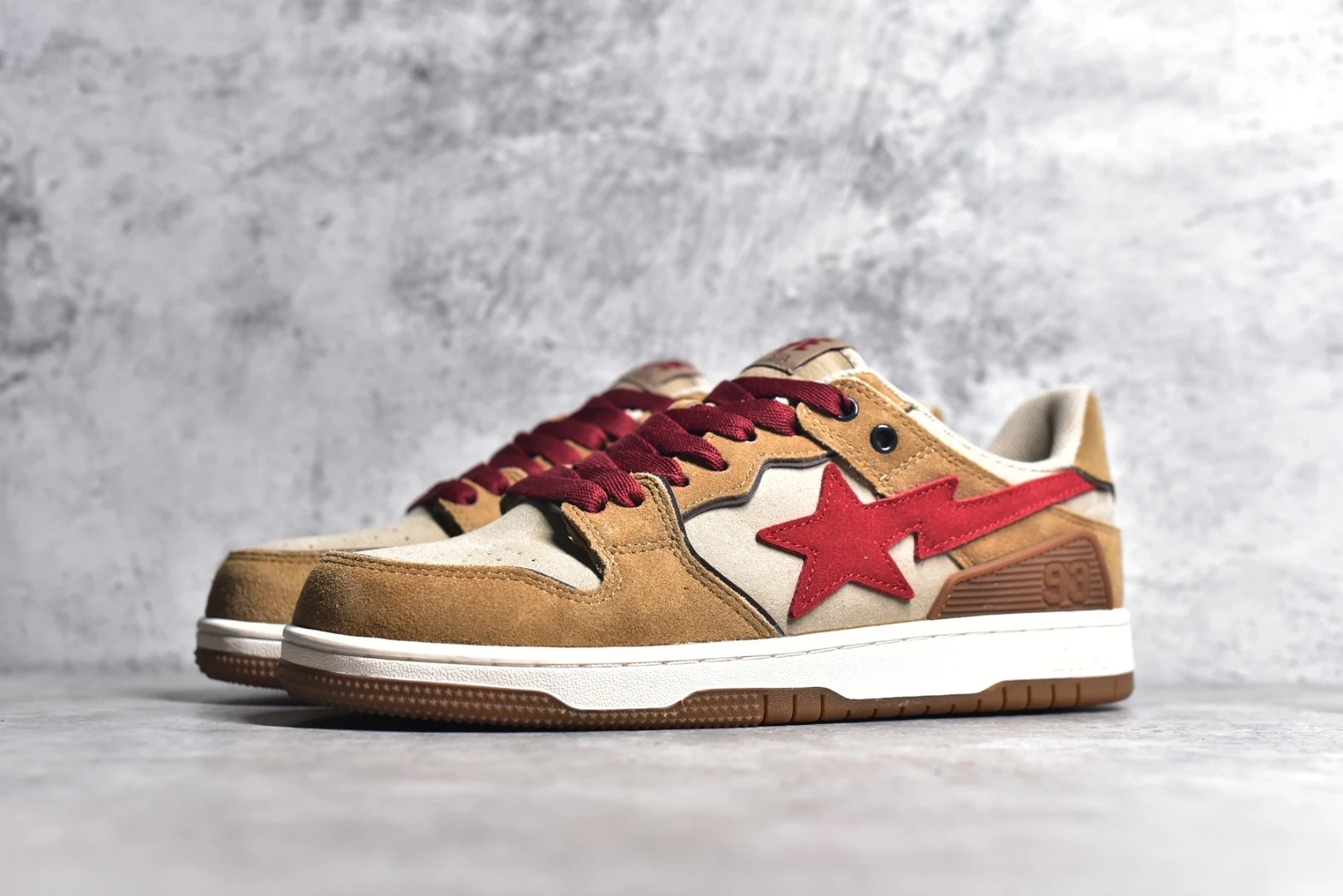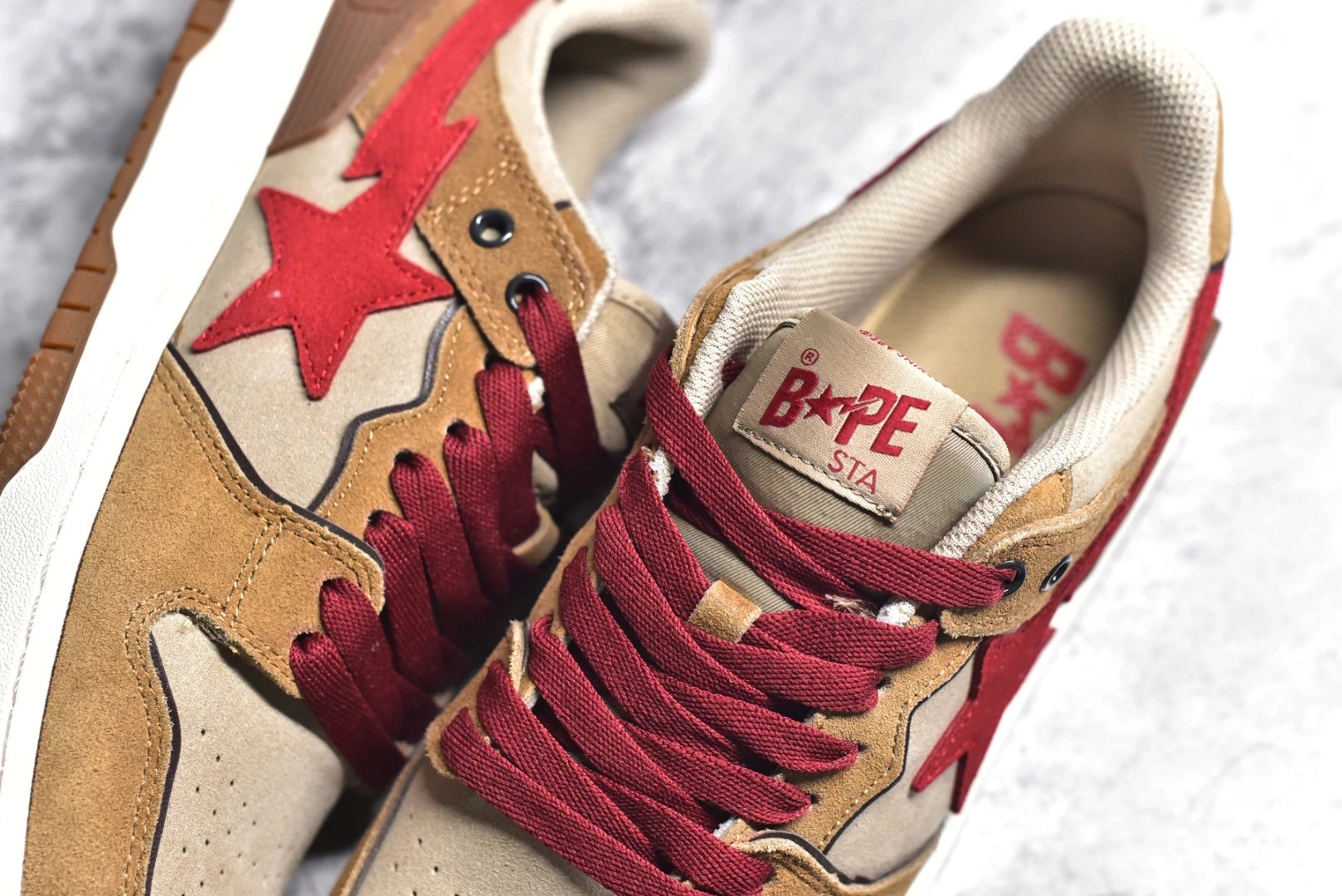 Features: "STA" logo, suede & rubber sole, "93" (brand year) at heel, BAPE embroidery.