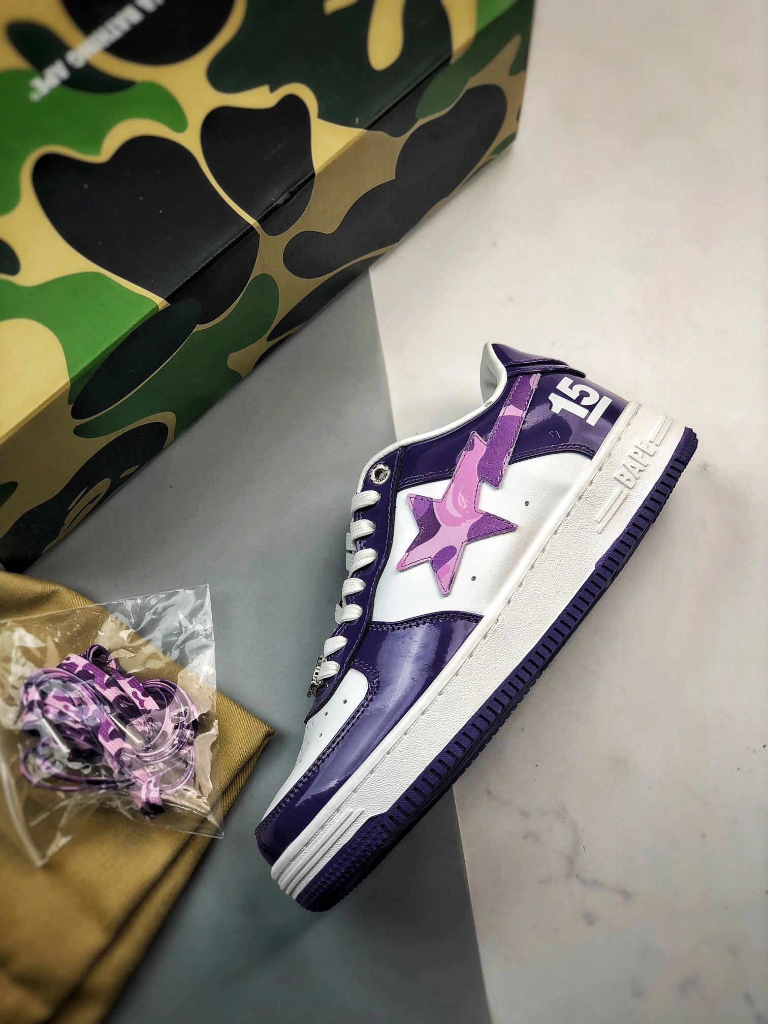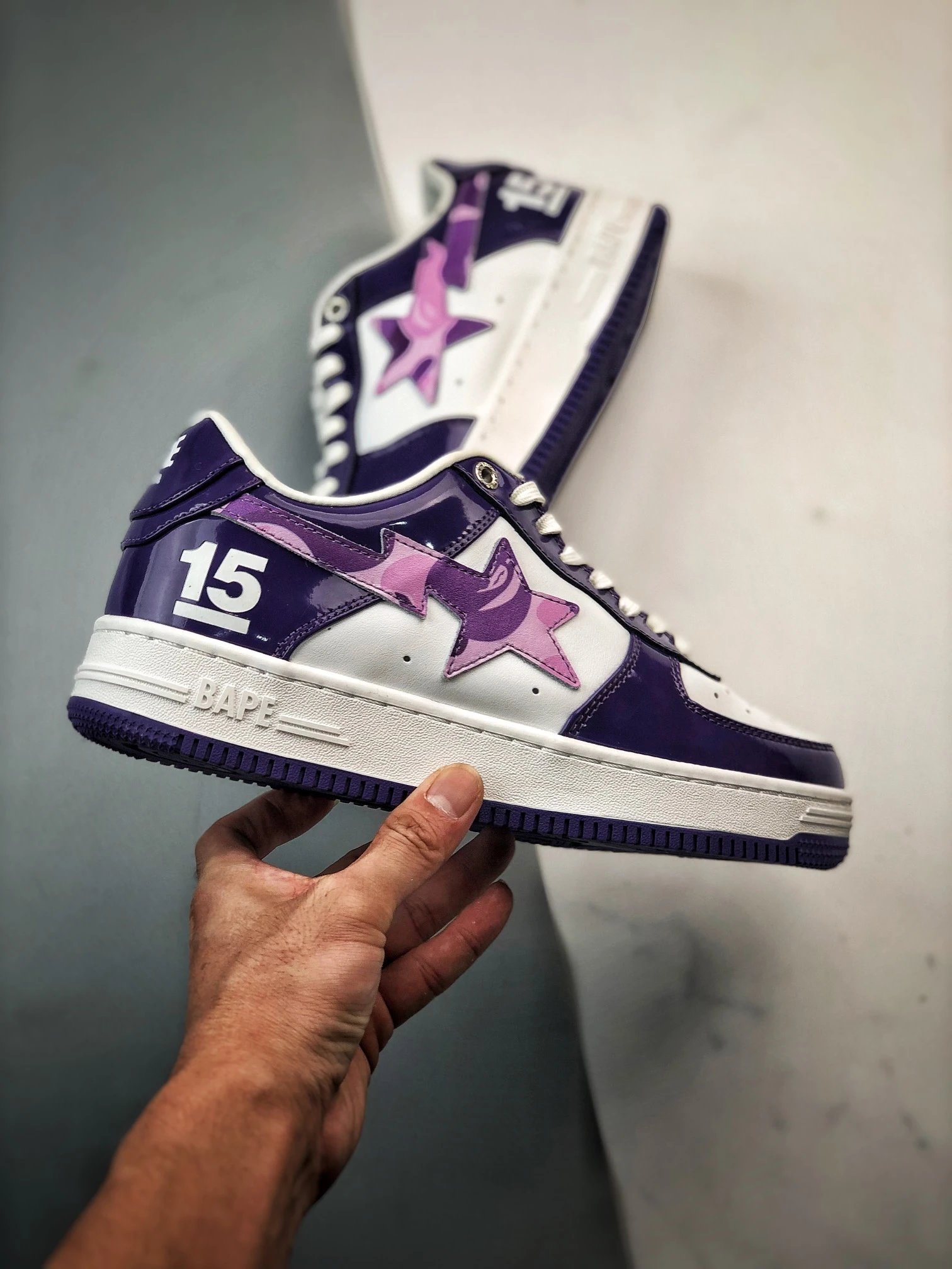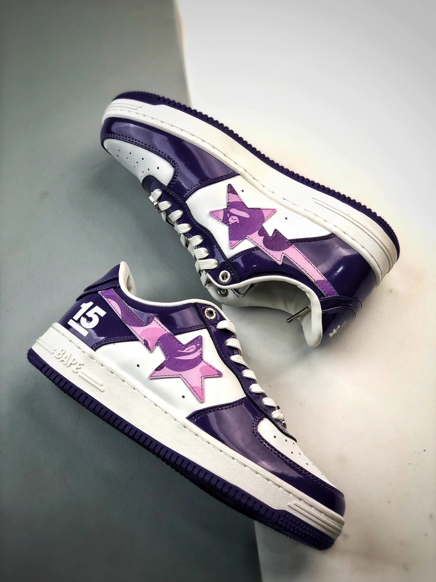 BAPE Bape x Air Force 1 Sta Low White Purple sneakers for Taipei 15th anniversary.