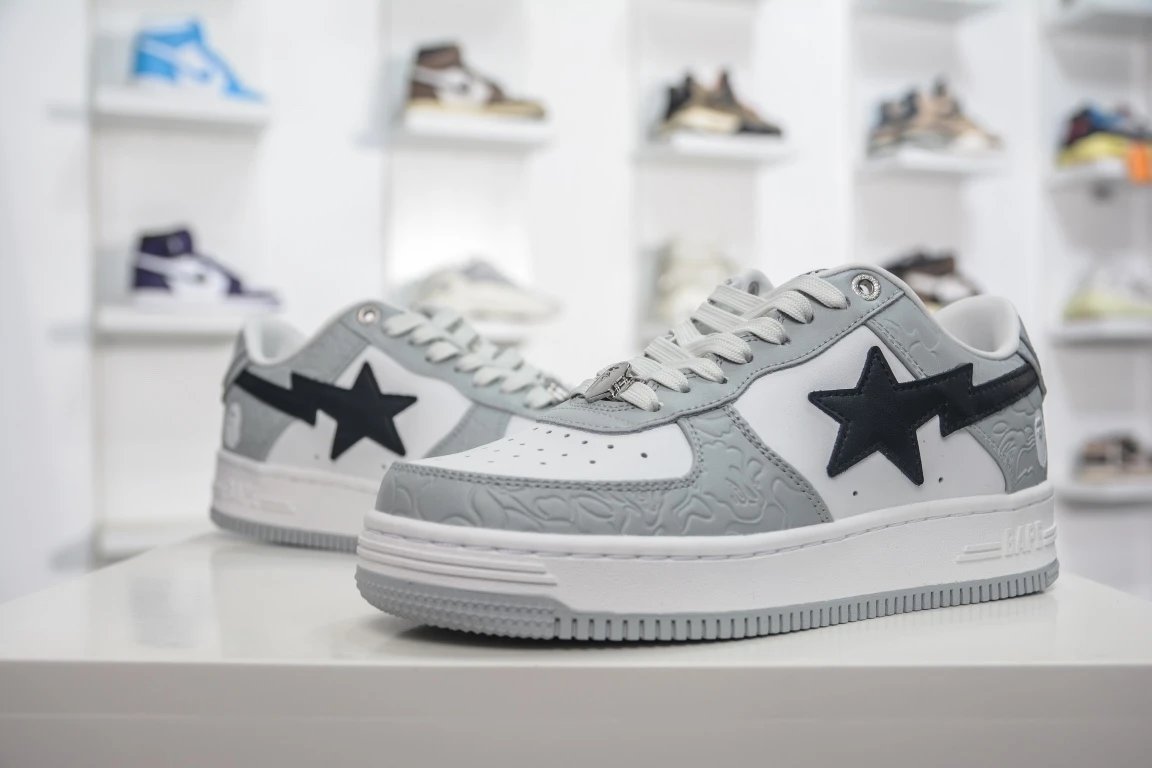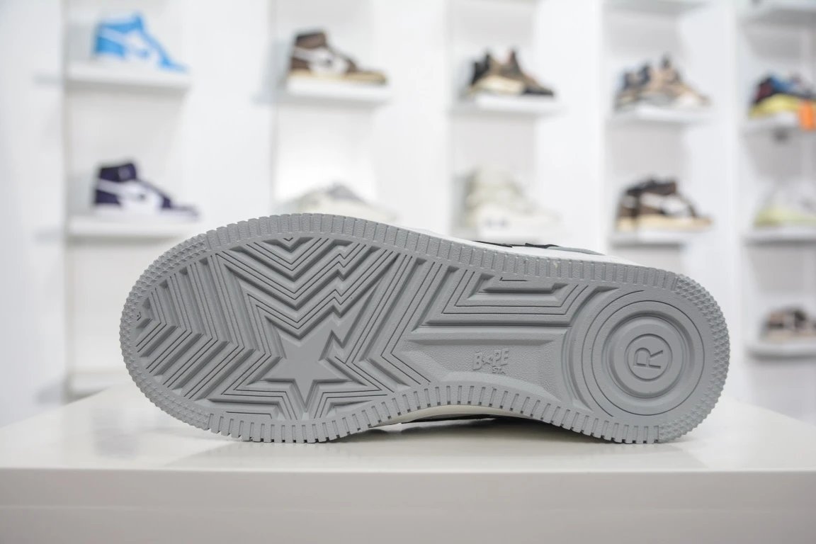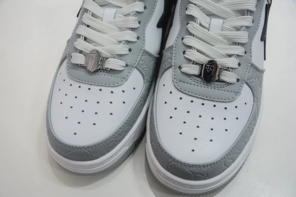 BAP Classic Grey-White Skate Shoes feature iconic ape head design, authentic shape, sea glass insole & full-length air cushion.