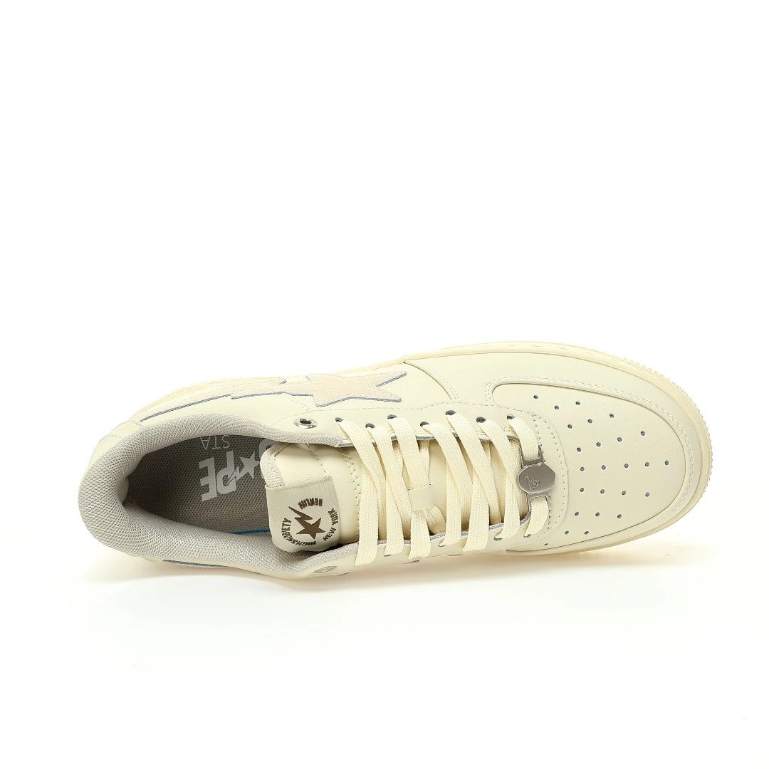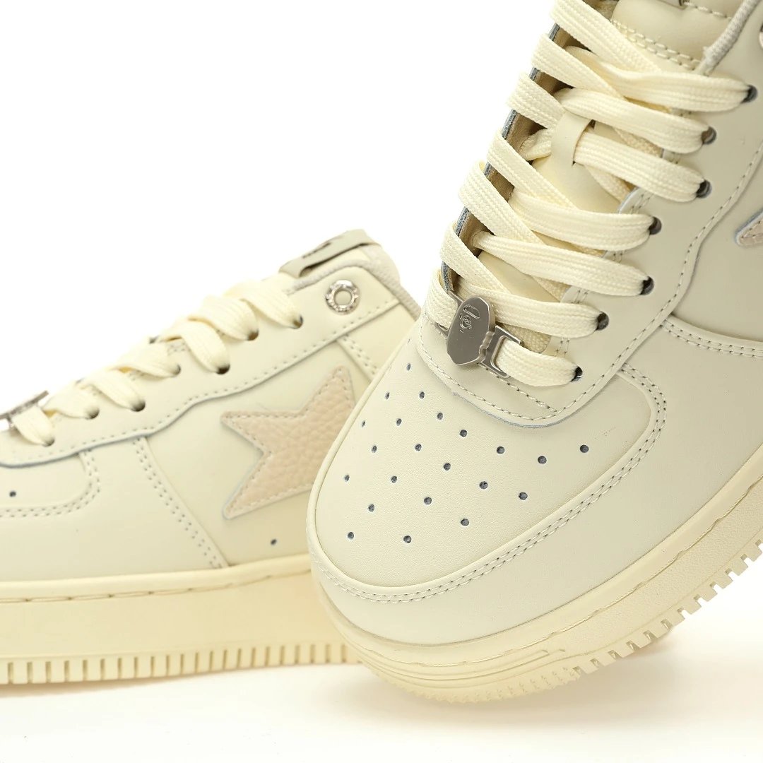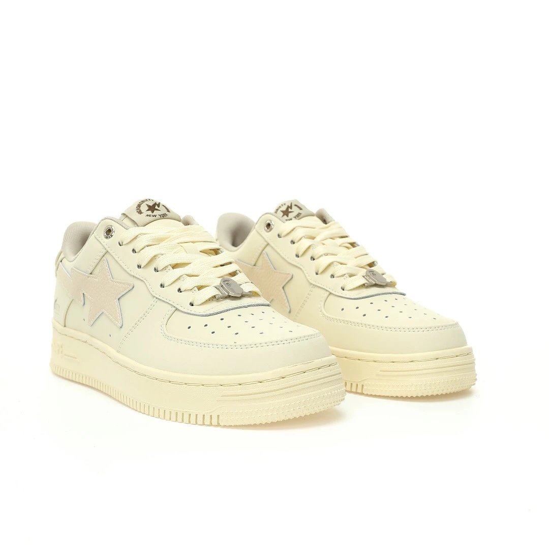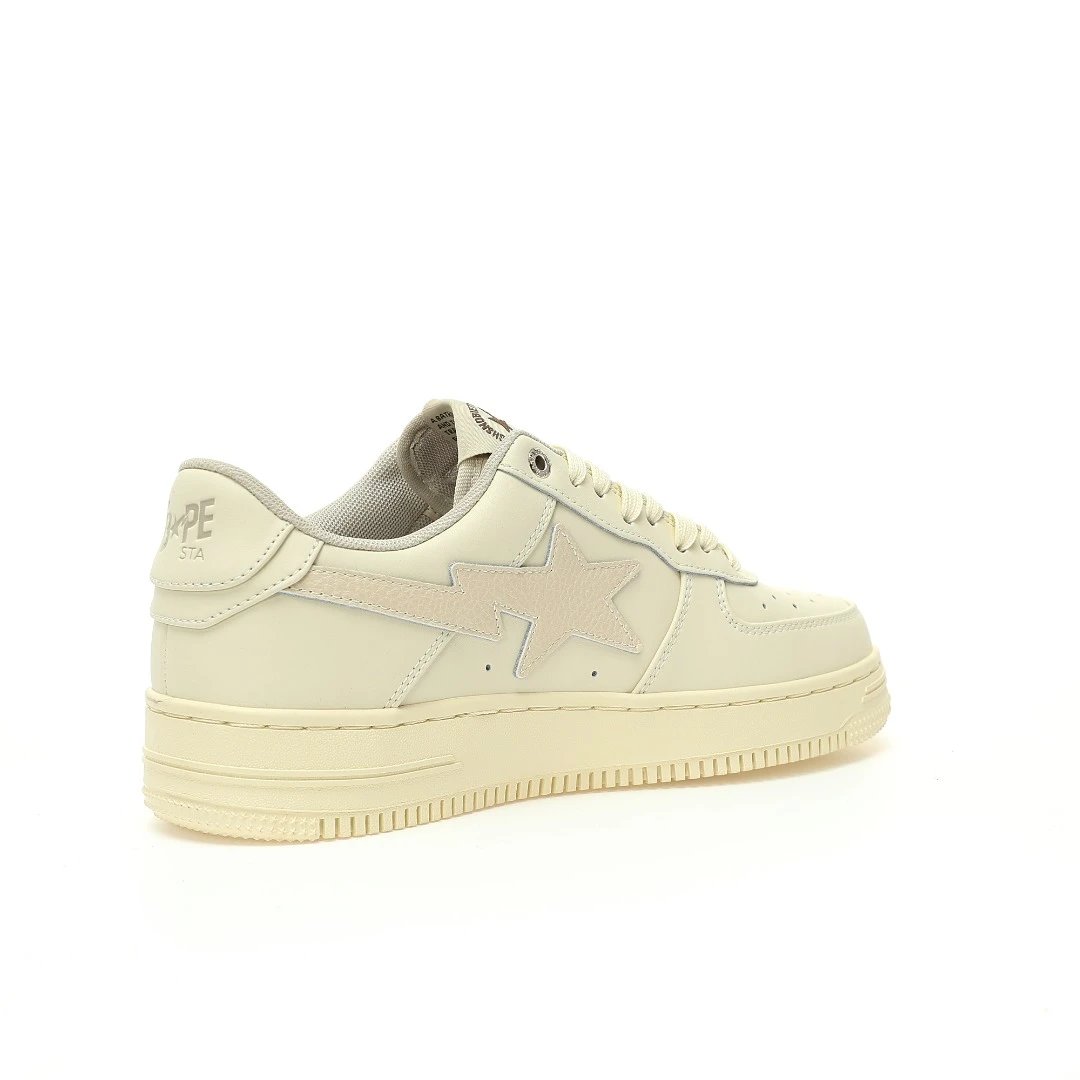 BAPE x HIGHSNOBIETY Sta Low Sand Beige Sneakers use premium calfskin & caviar leather upper, durable rubber outsole.