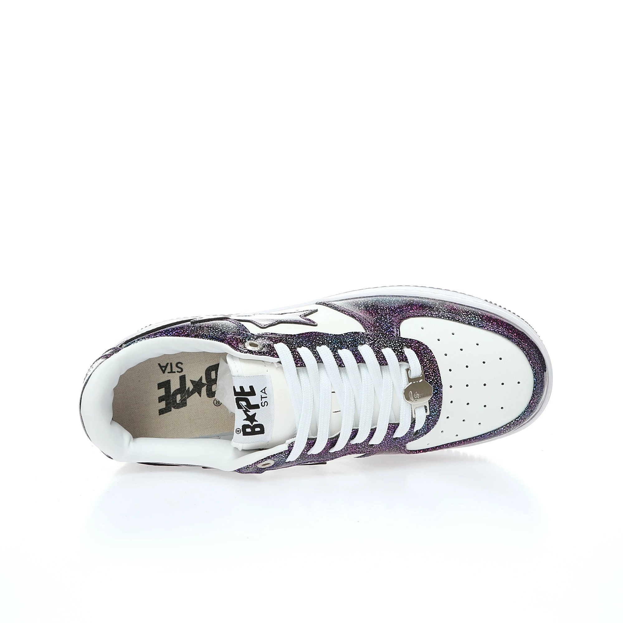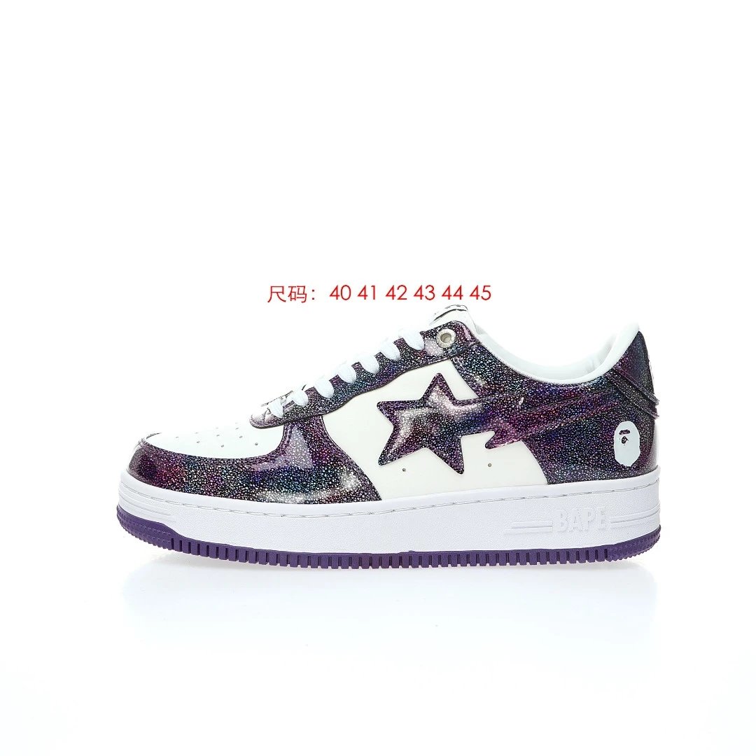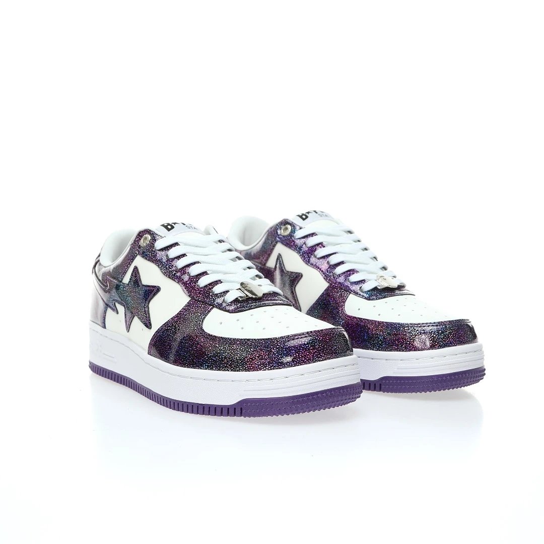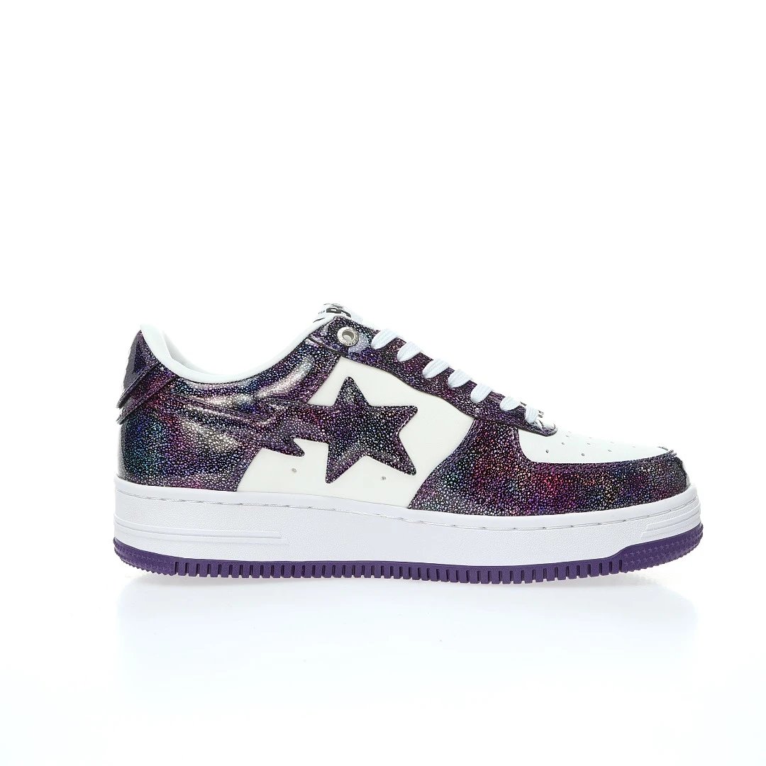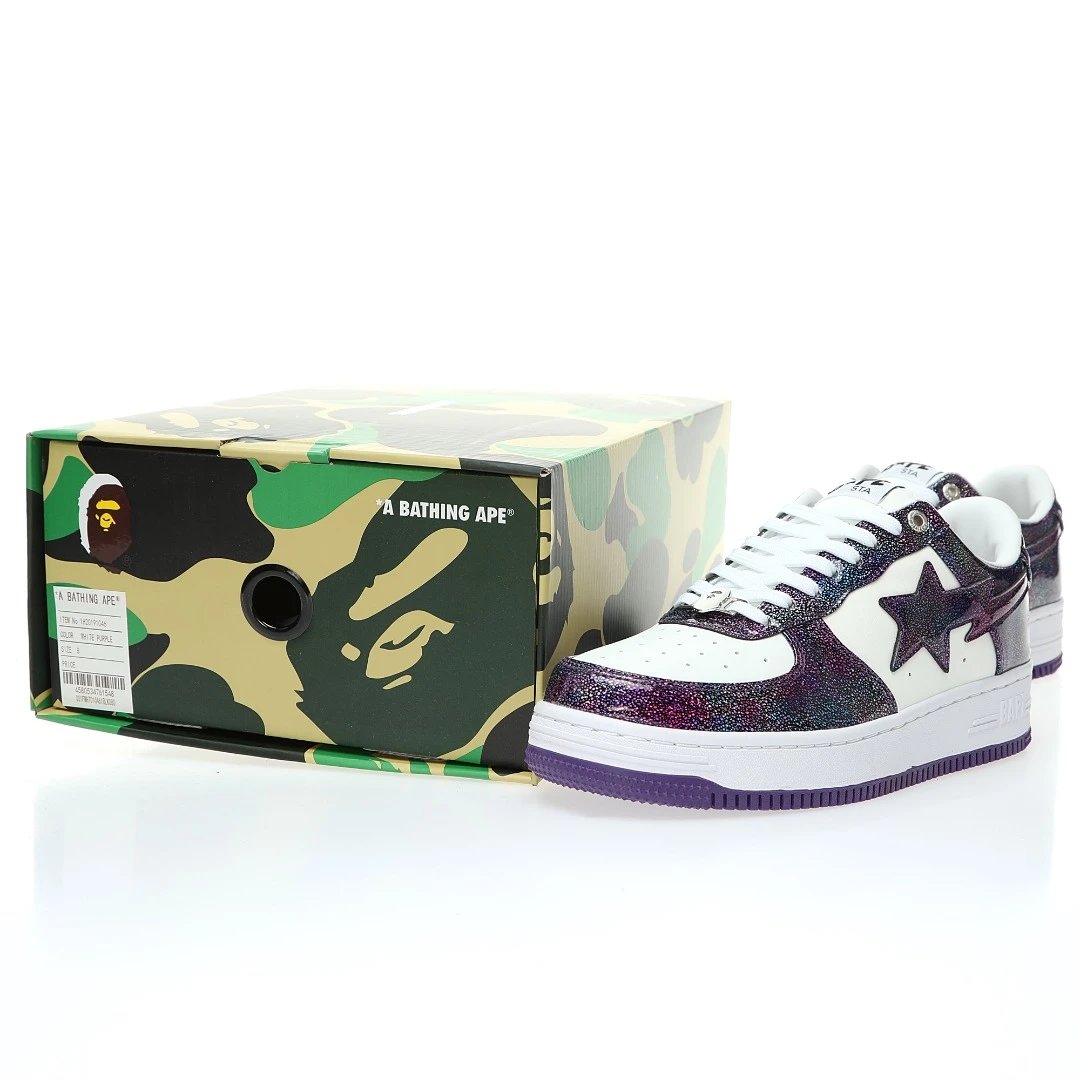 BAPE Sta Low Men's Casual Sneakers use patent cow split leather upper, thick durable rubber outsole, hard drawer box & dust bag.