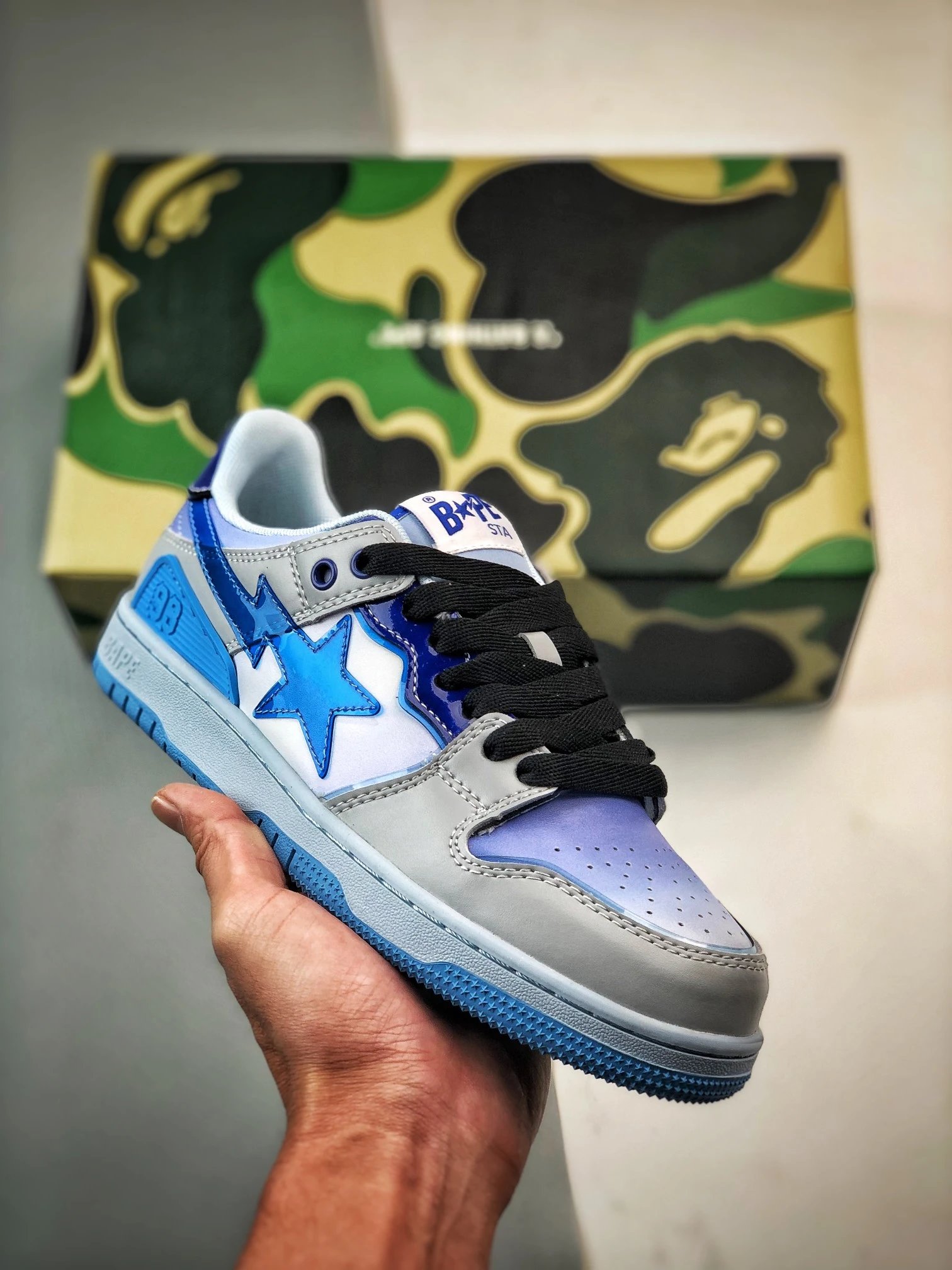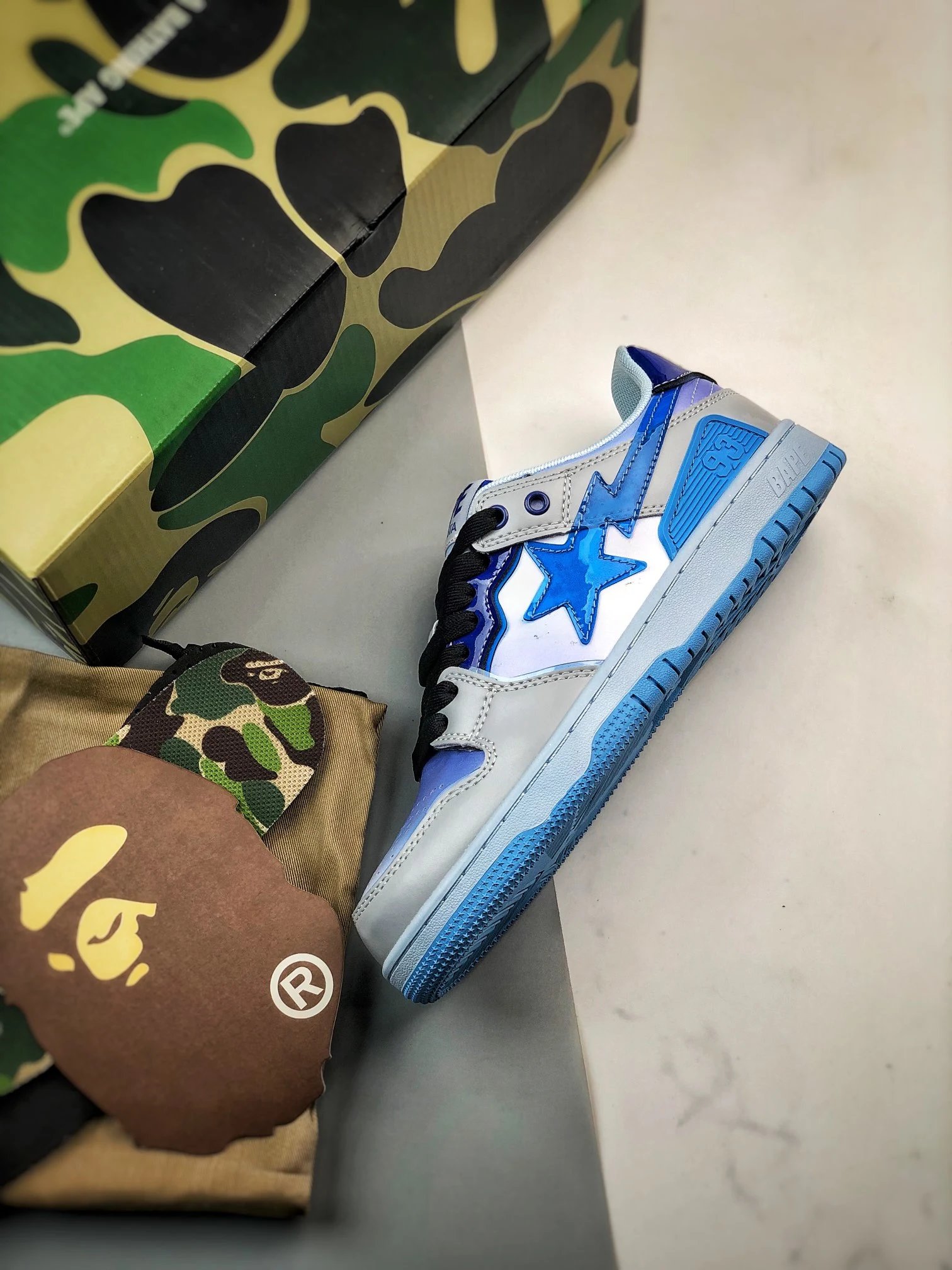 BAPE Sk8 Sta Low Low-Top Skate Shoes feature original last pattern for authentic fit.