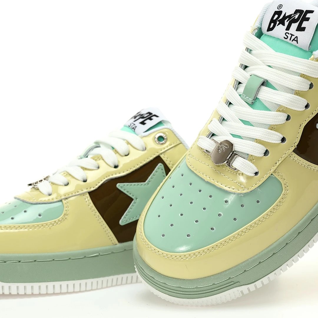 BAPE STA Low Unisex Hard Lacquered Leather Casual Sneakers