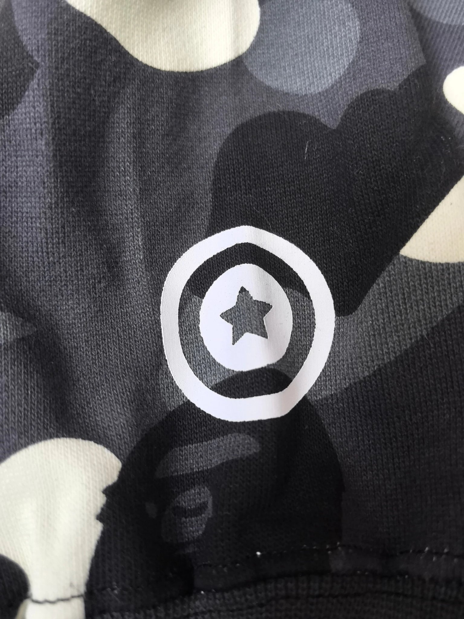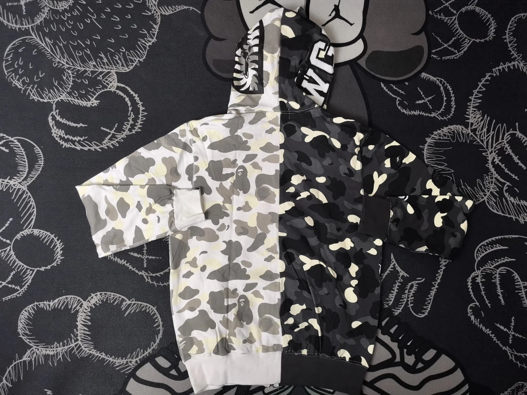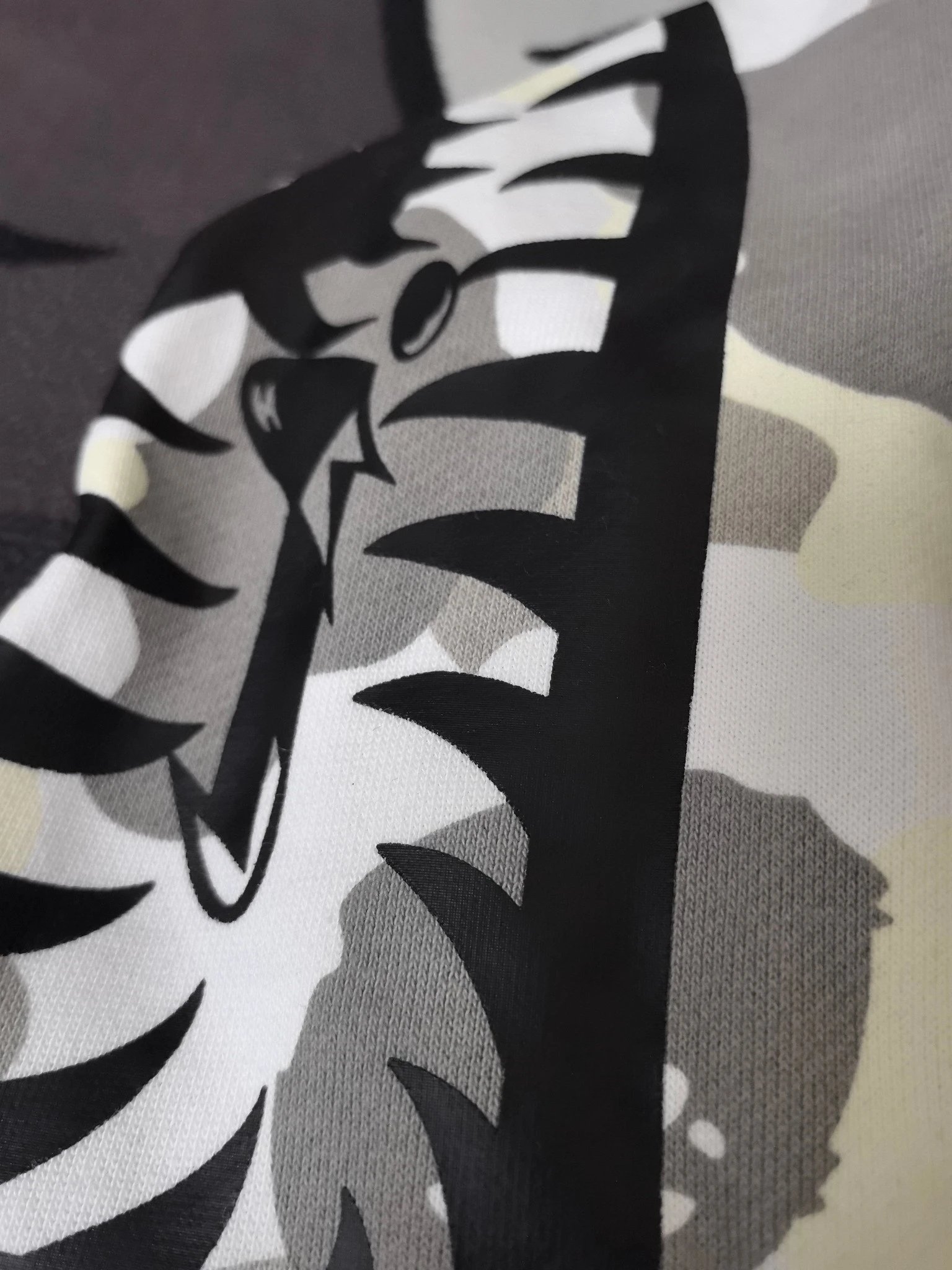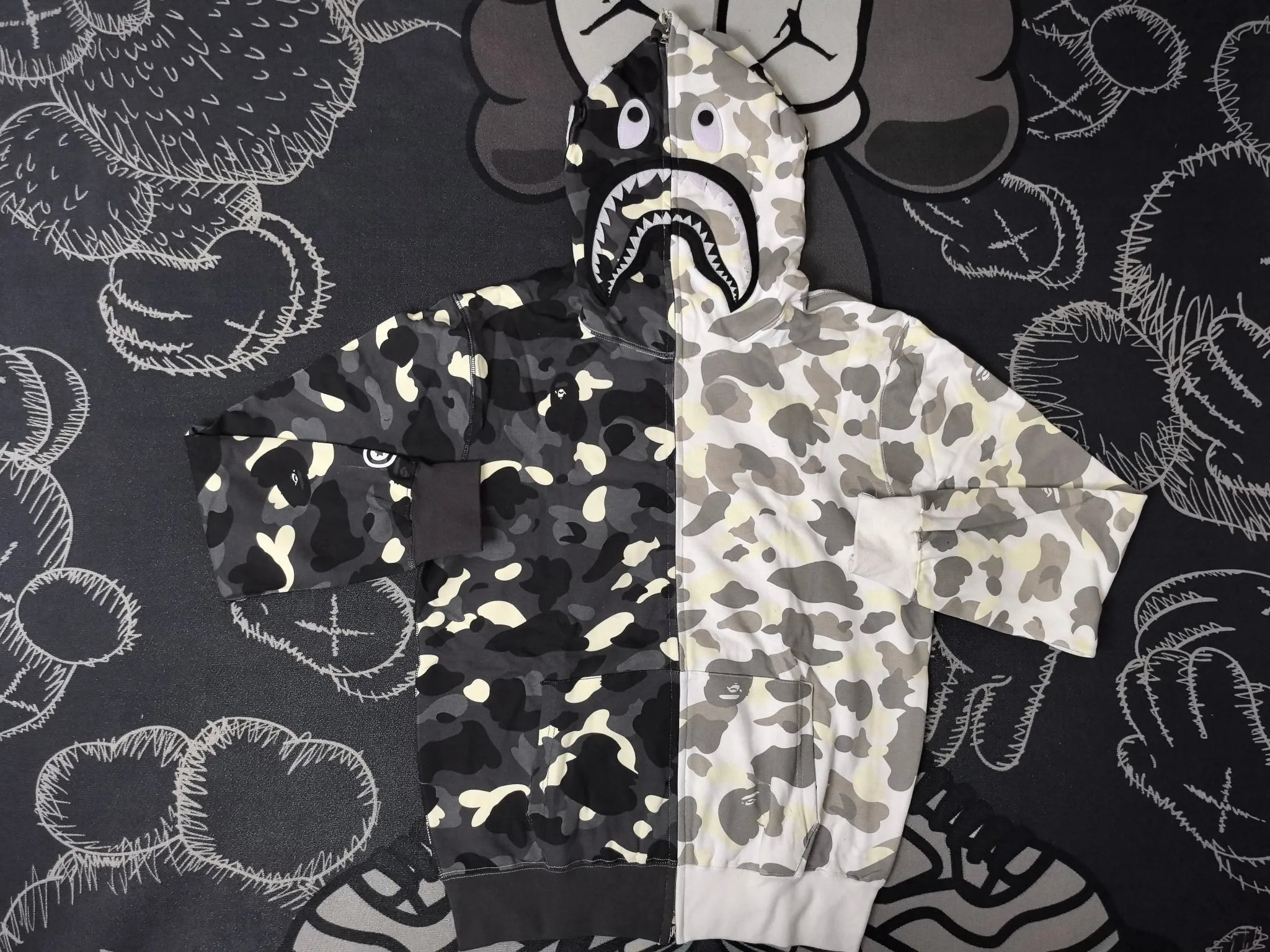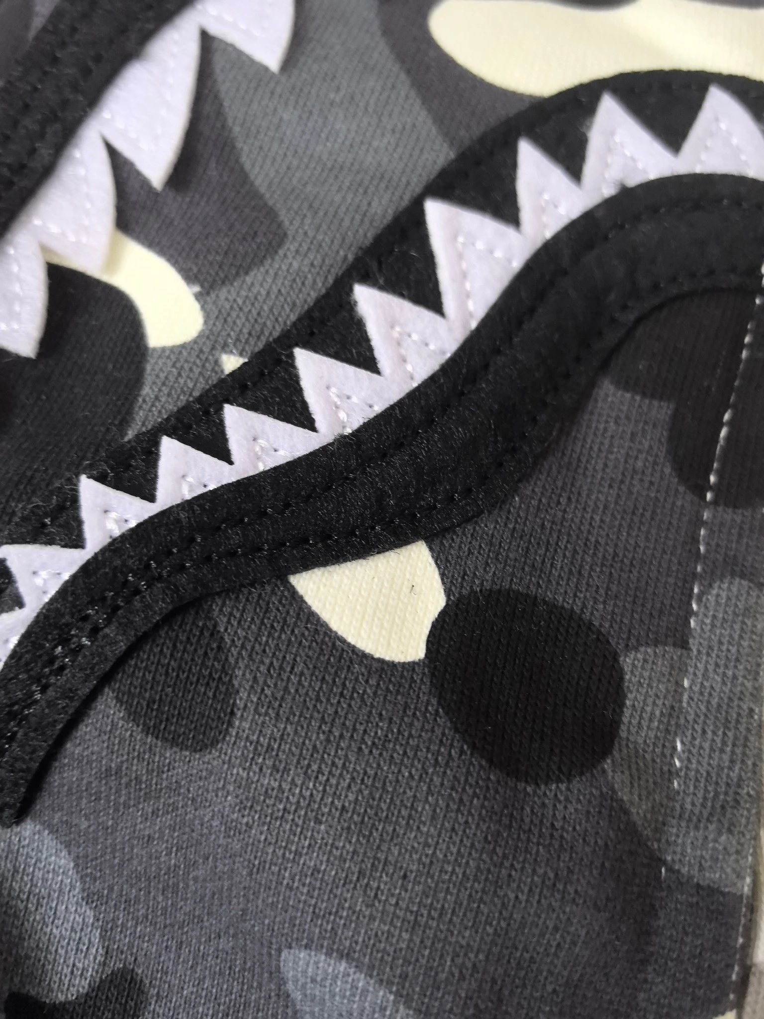 BAPE Classic Yin-Yang Glow-in-the-Dark Camo Shark Zip Hoodie uses stiff, high-quality fabric distinct from regular versions.
