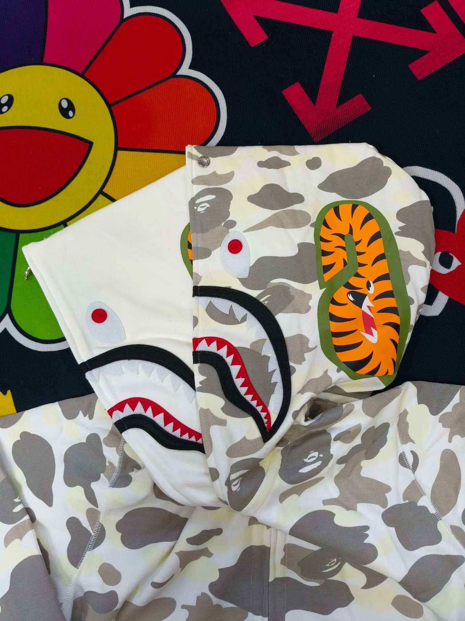 BAPE XX126 Hoodies: Glow-in-dark camo print, classic design, custom fabric, couple-friendly.