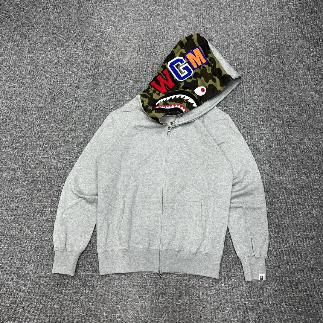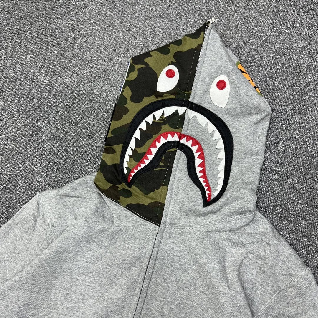 BAPE XX213 Ba Limited Shark Hoodie features green camo design, also available in black/gray.