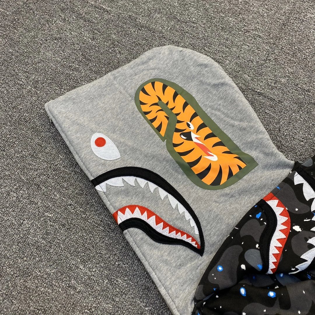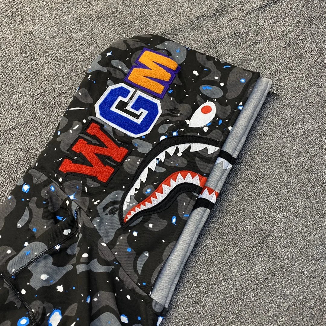 BAPE XX051 Space Camo Shark Luminous Hoodie is a couple style with black & white colors, available in S, M, L, XL, XXL.