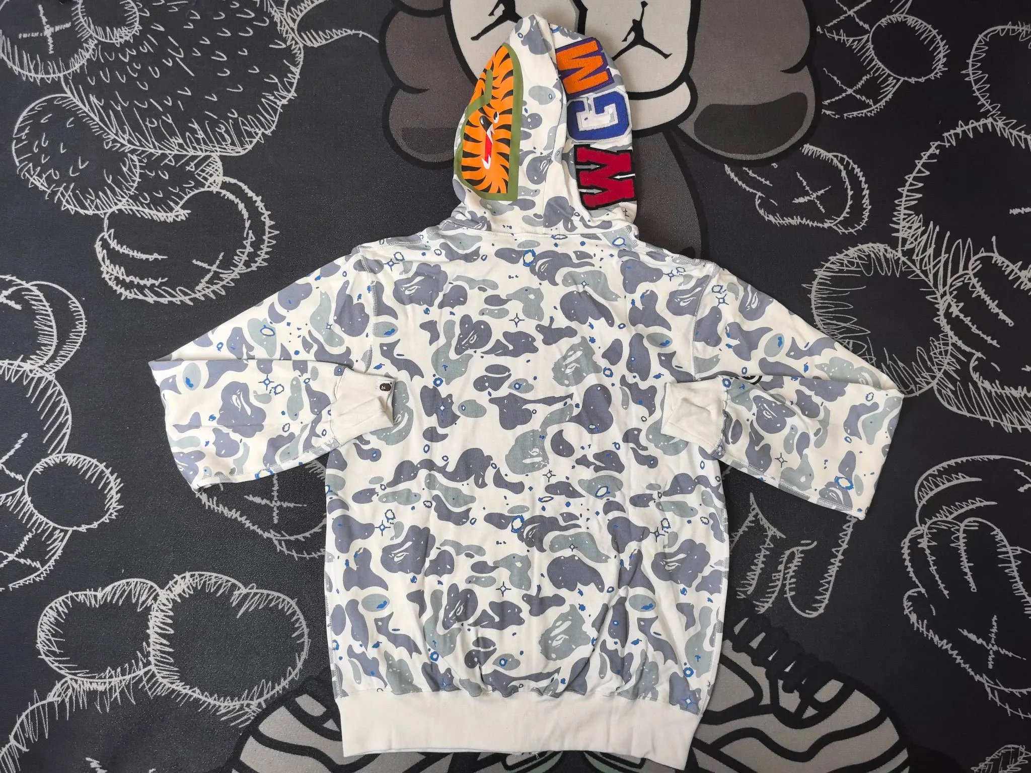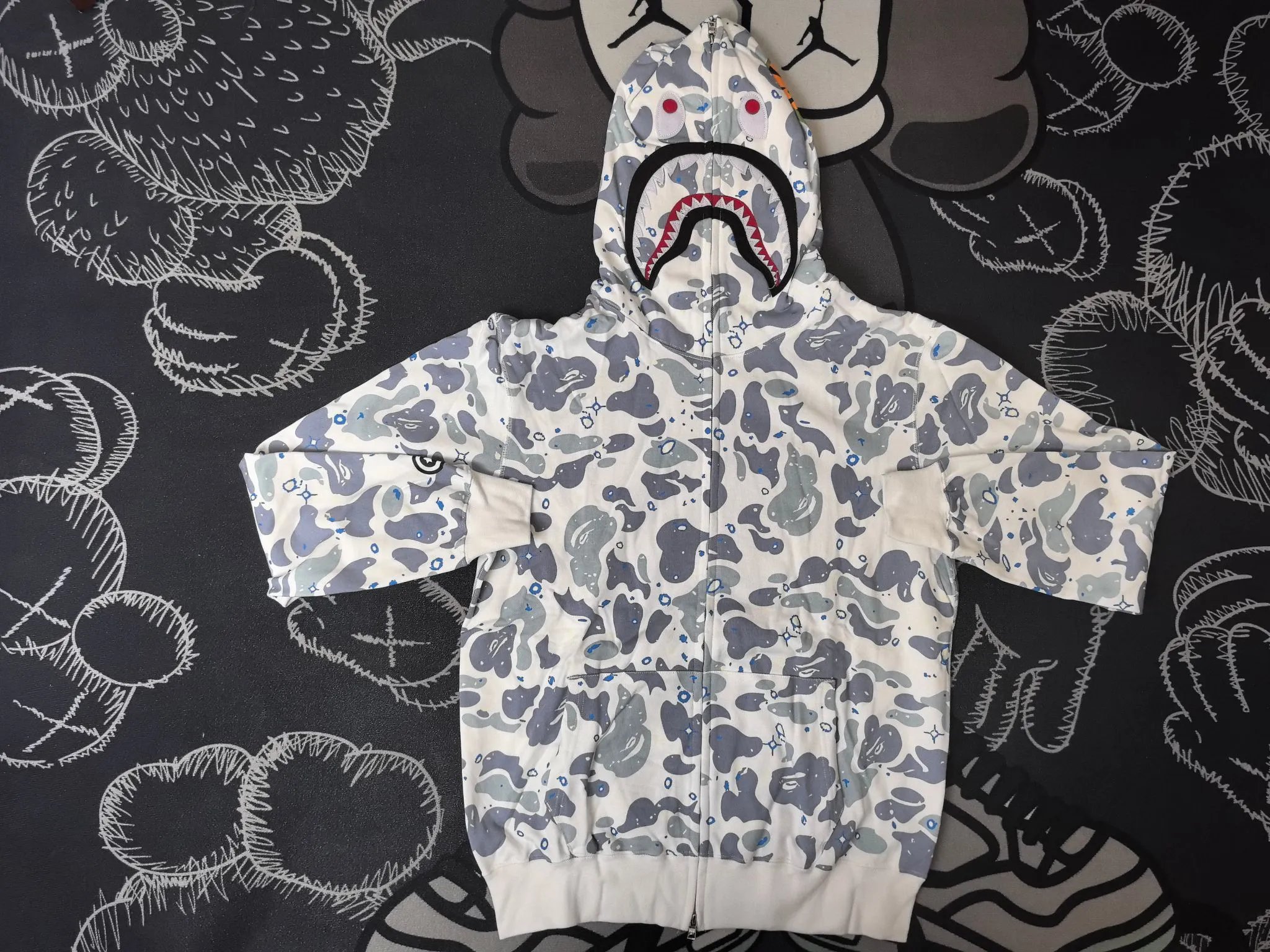 BAPE Space Camo Shark Hoodie uses premium hard-wearing fabric, unlike common soft styles.