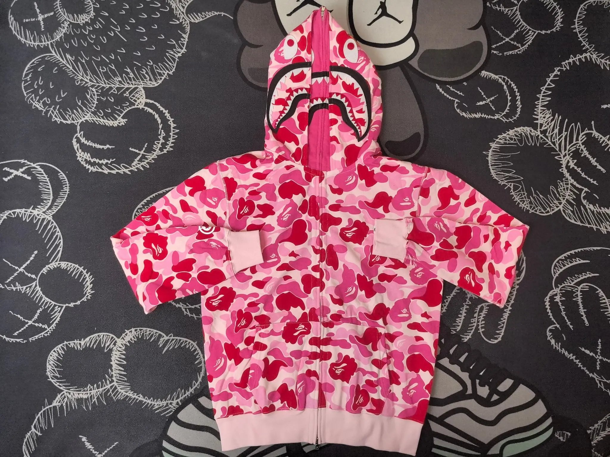 BAPE Classic Camo Shark Zip Double Hoodie uses hard-wearing fabric for a structured fit.