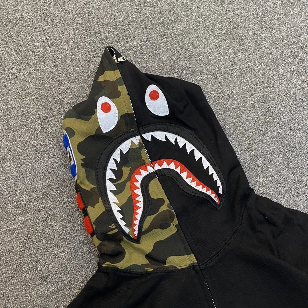BAPE XX097 Shark Camo Panel Hoodies with classic WGM logo.