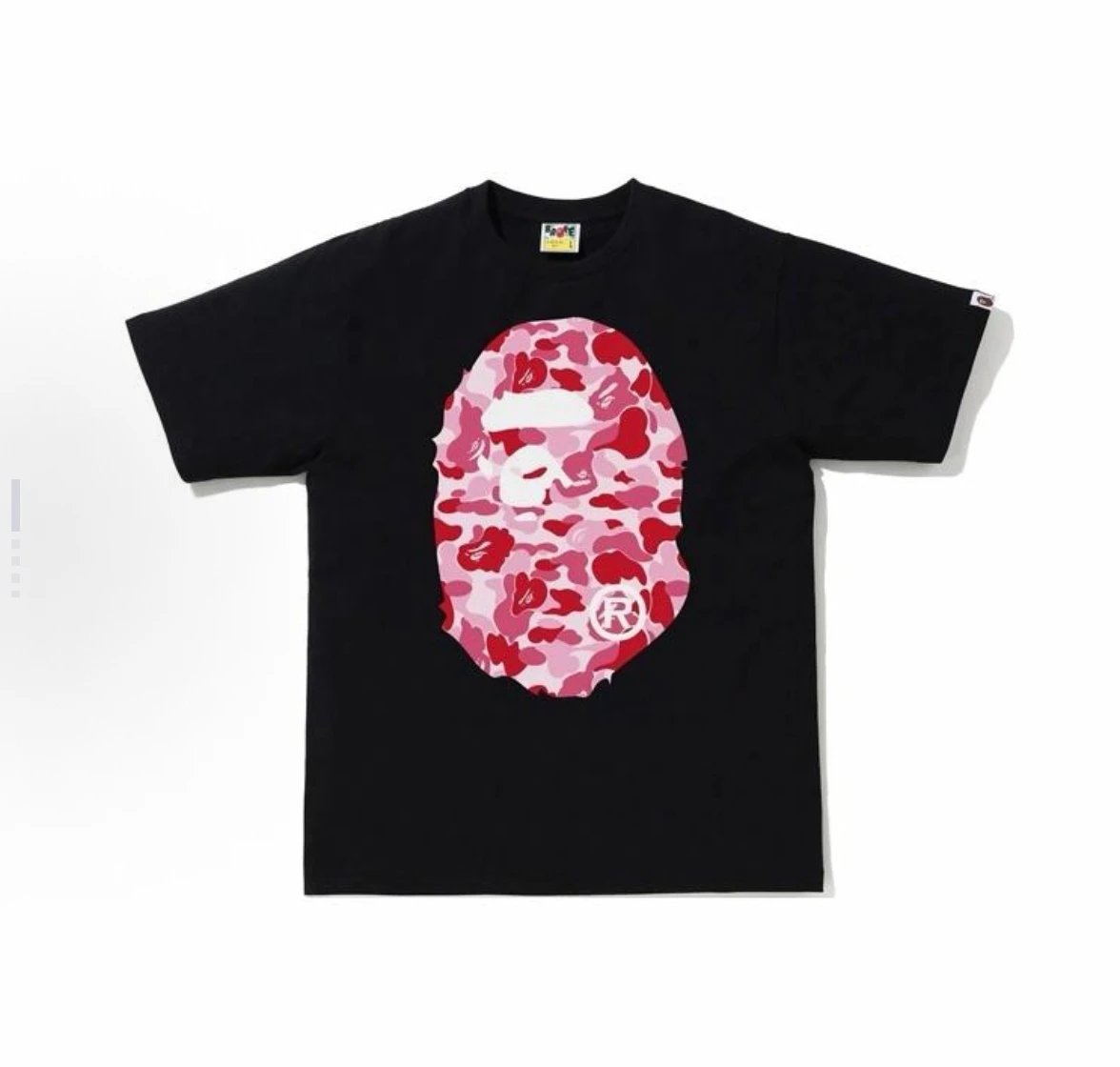 A BATHING APE 00103 series features camouflage big ape head print unisex short sleeve t-shirts.