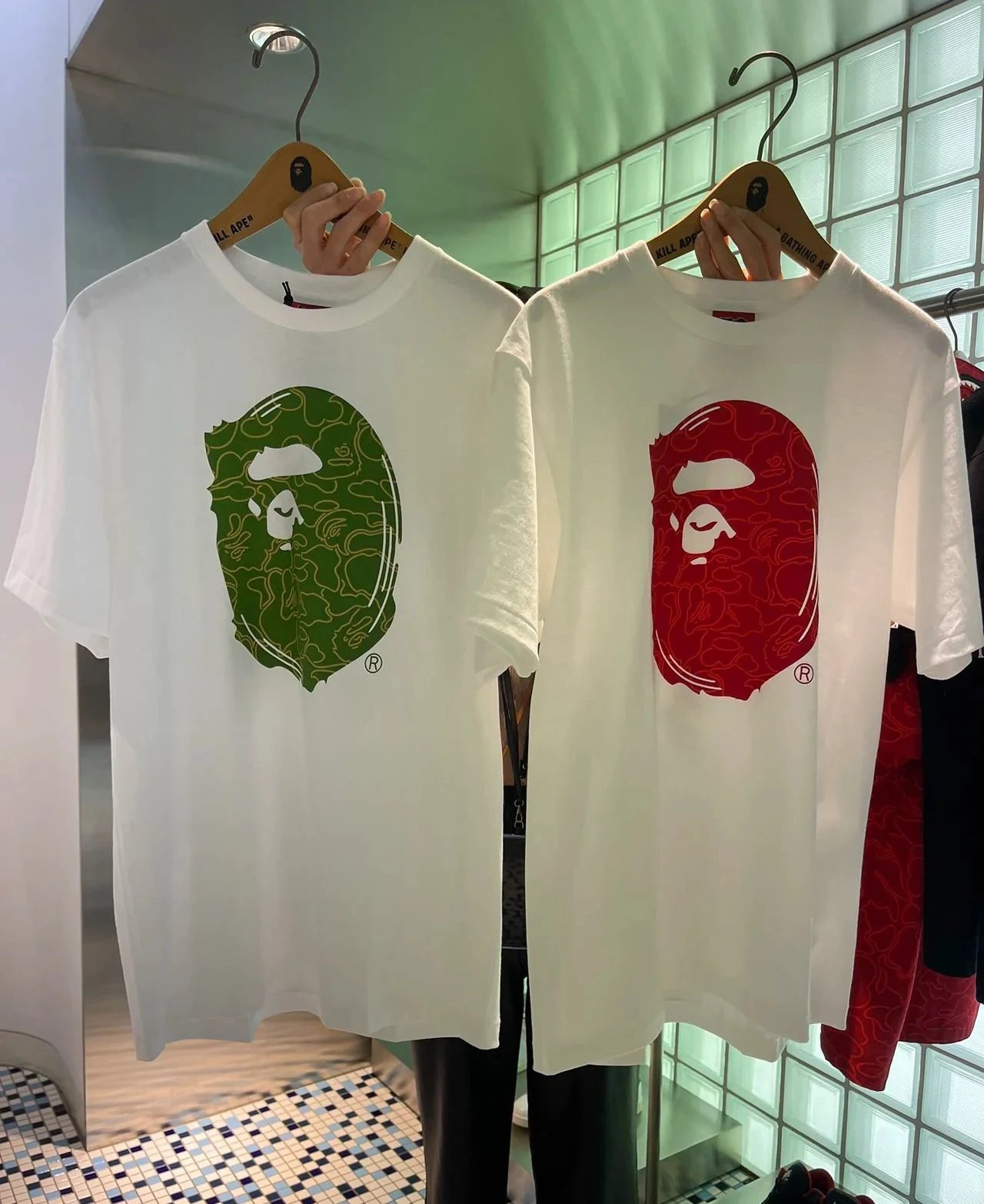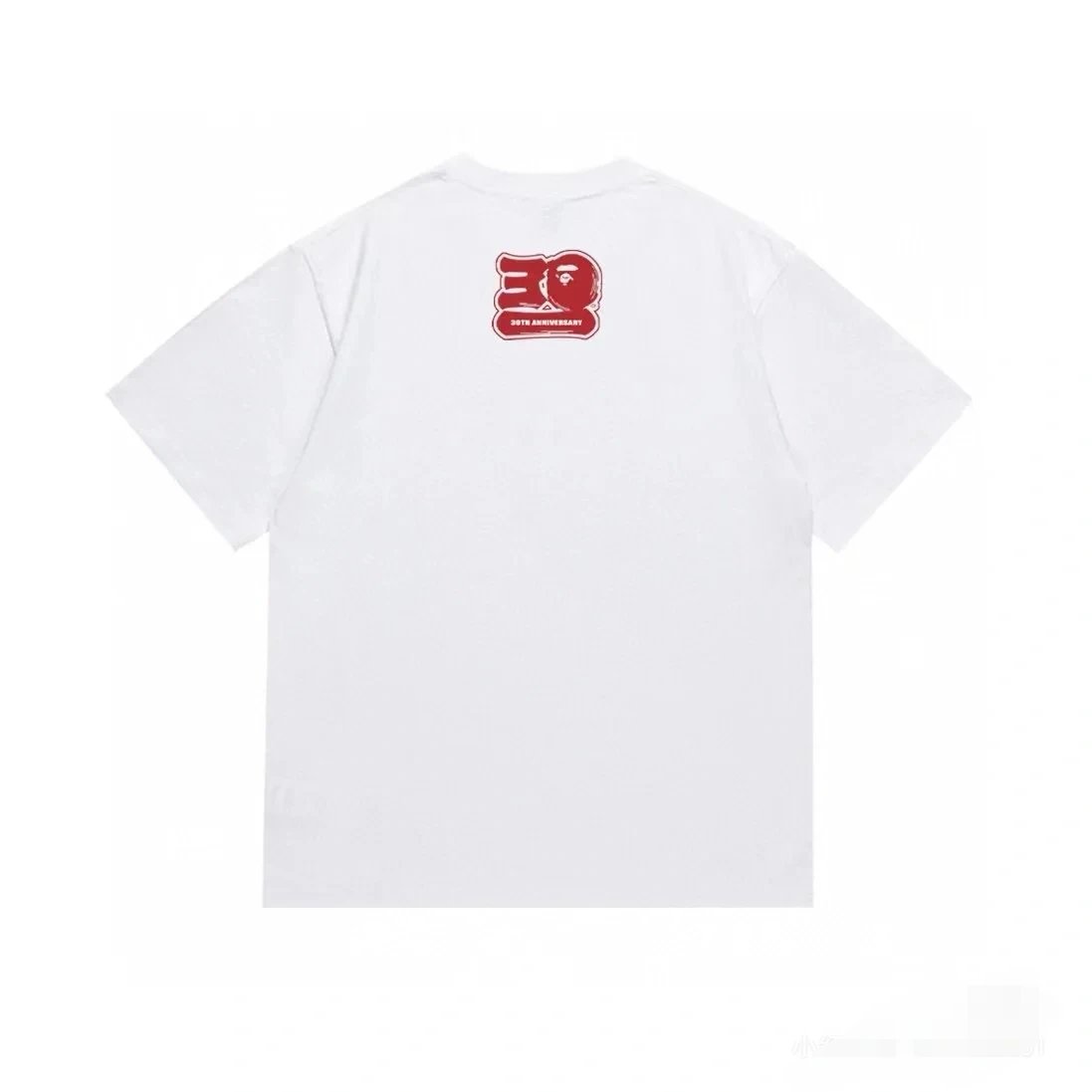 A BATHING APE 30th Anniversary FW23 00153 Unisex T-Shirt has an ape head graphic on the chest.