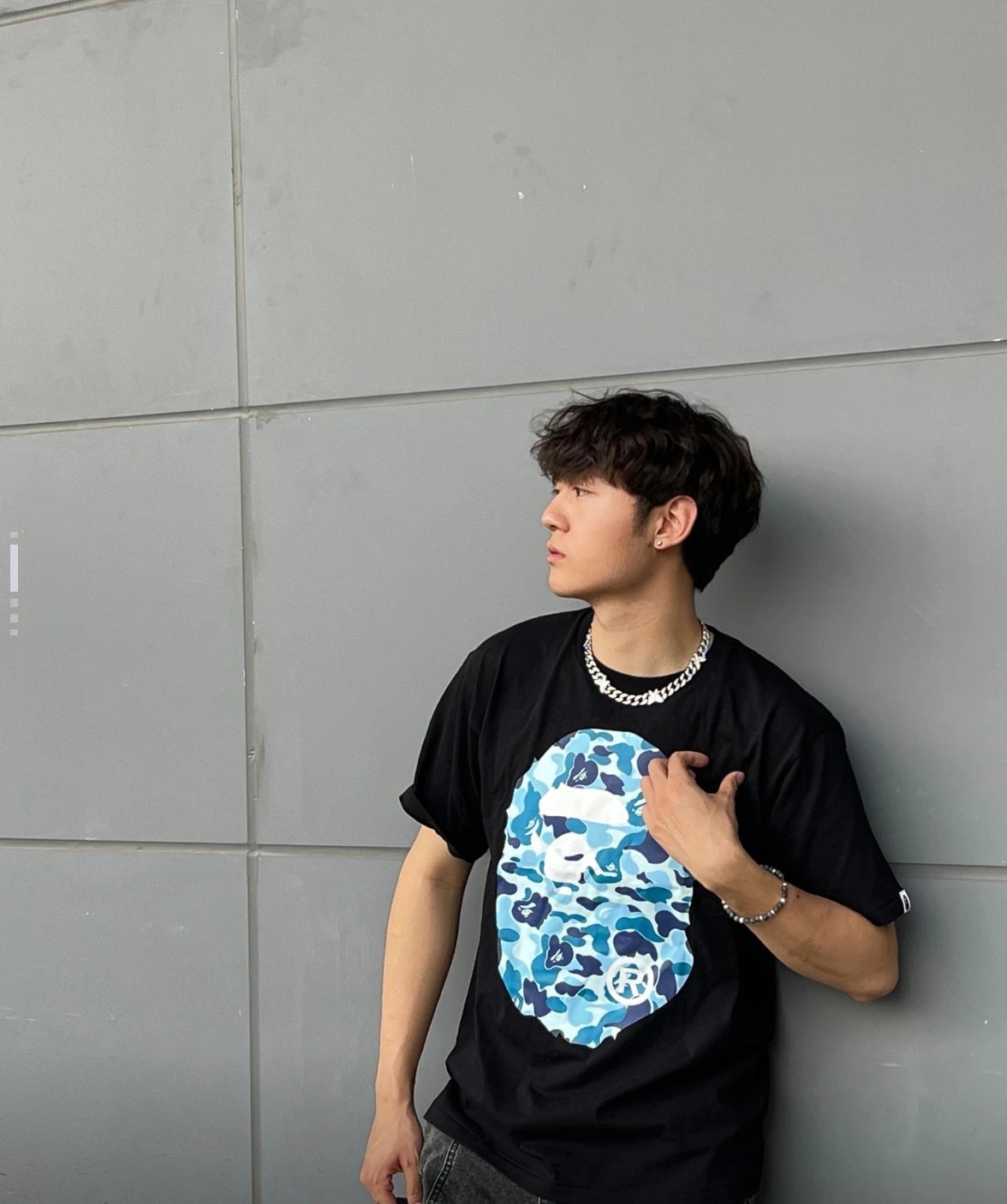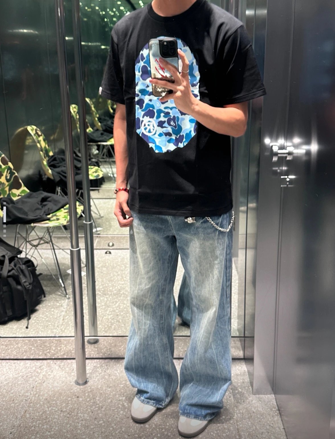 A BATHING APE 00103 Series Unisex T-Shirt has big ape head camo print.