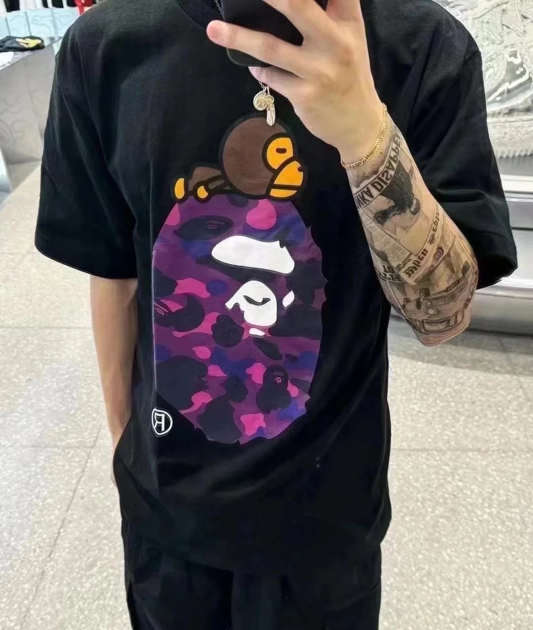 BAPE FW22 Color Camo Milo Unisex T-Shirt Black Purple White