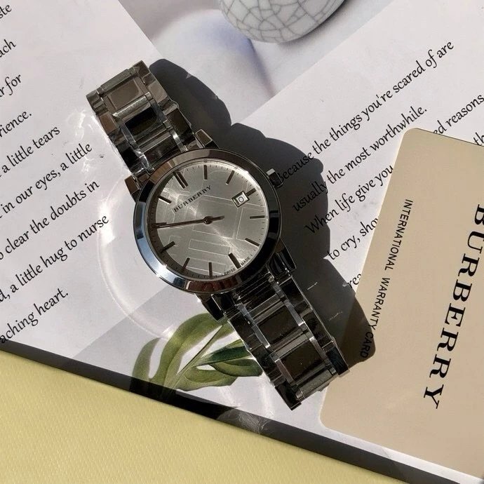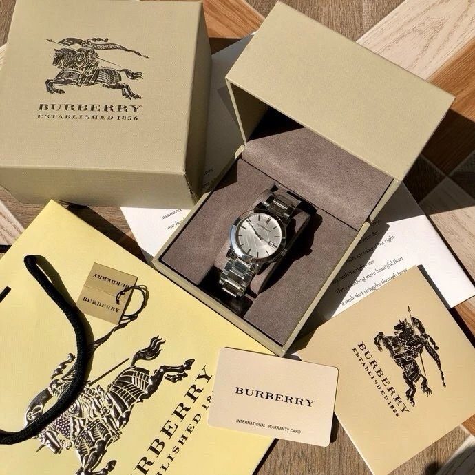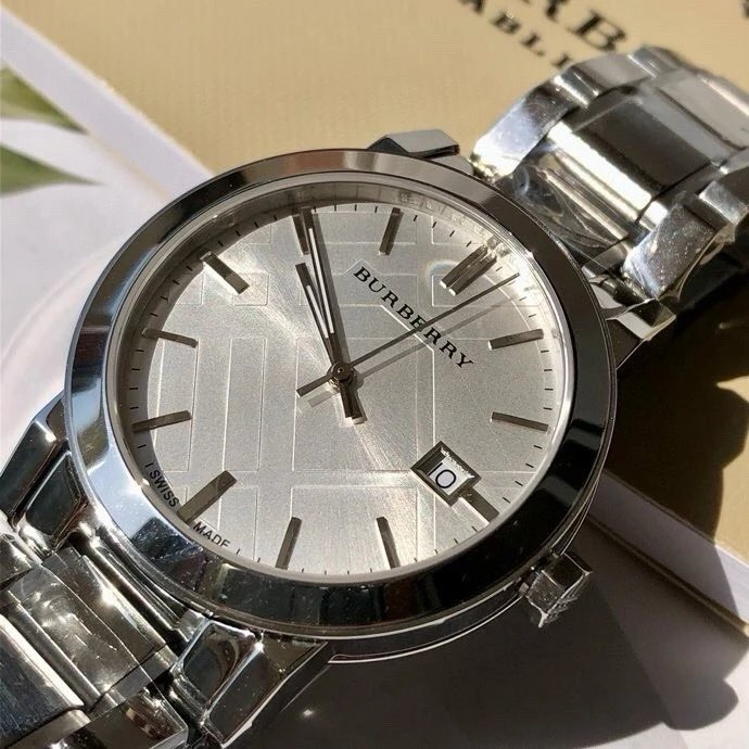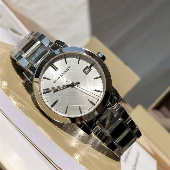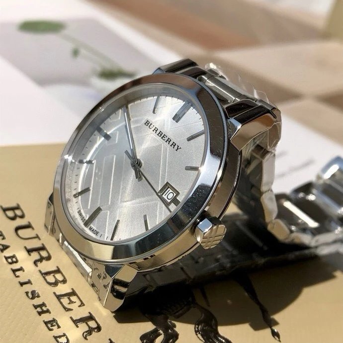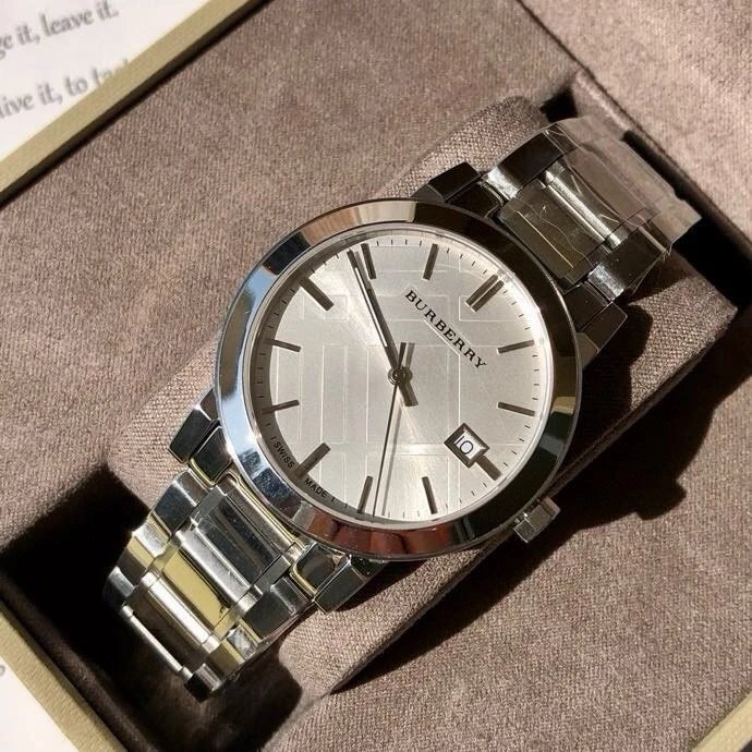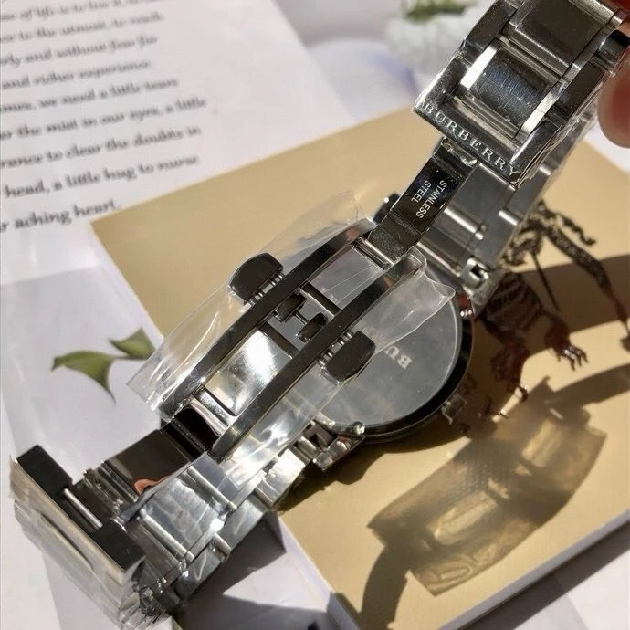 Burberry Men's Quartz Watch features timeless design, 316L stainless steel strap, 39mm case, double push butterfly clasp. Packaged included.