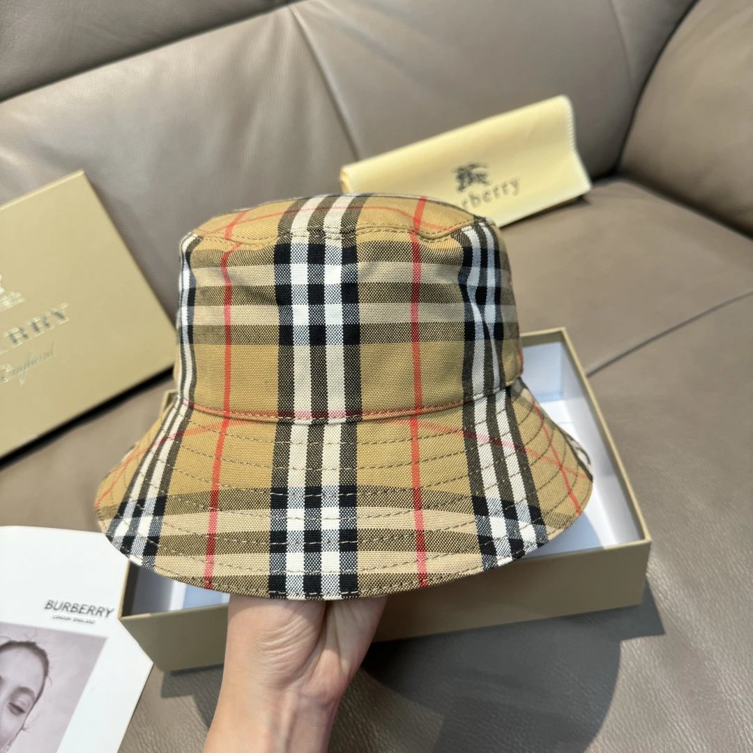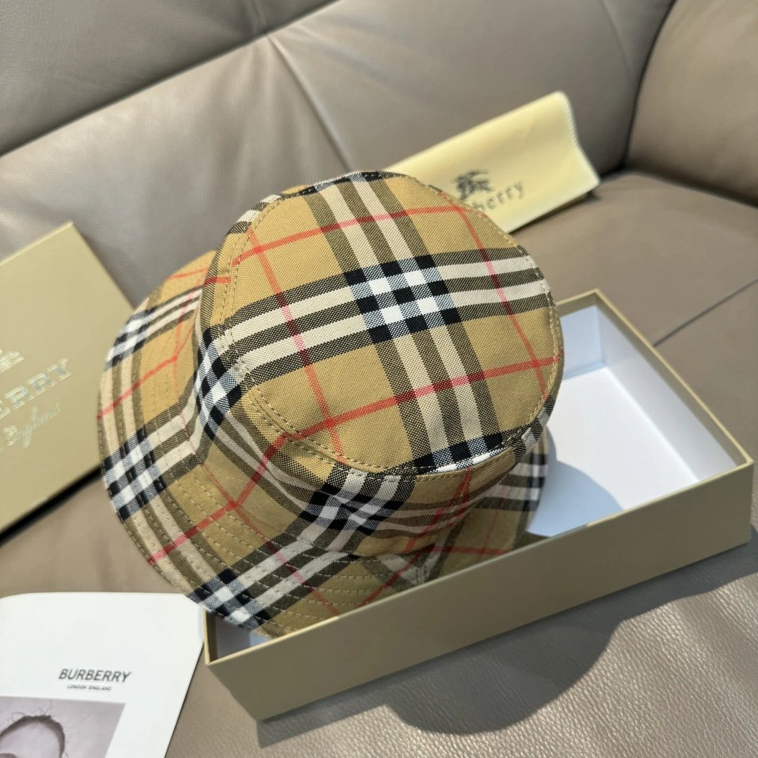 Burberry Classic Bucket Hat features original check pattern, cotton lining, precise alignment, lightweight & breathable.