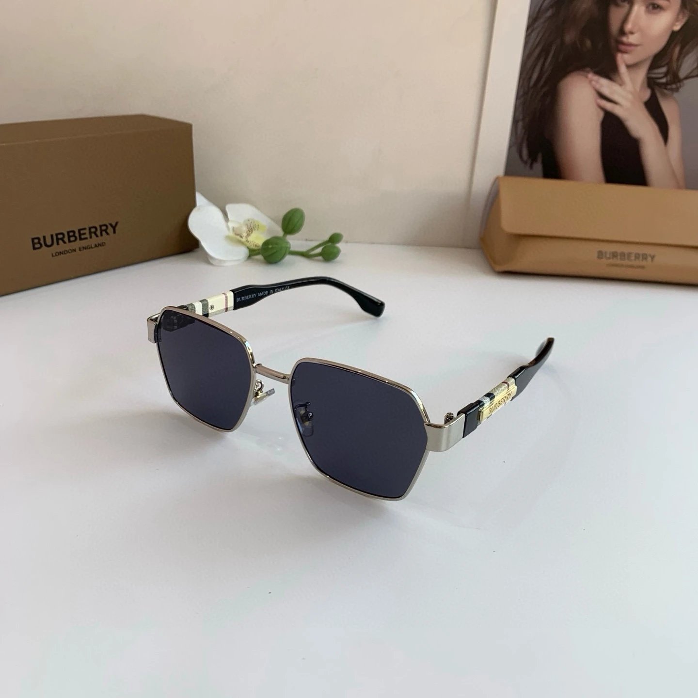 Home > Goods List Burberry Classic Luxe Metal Square Driving Sunglasses
