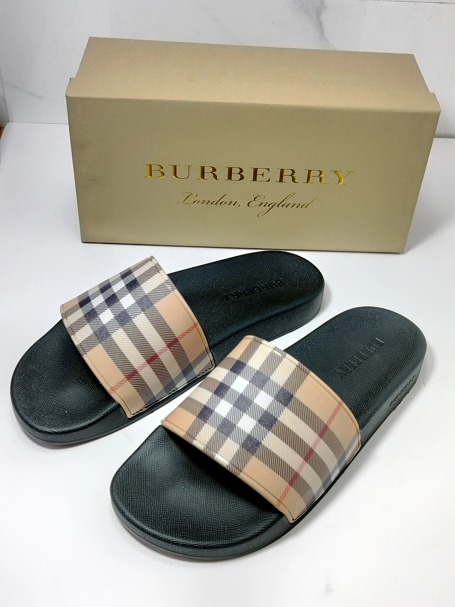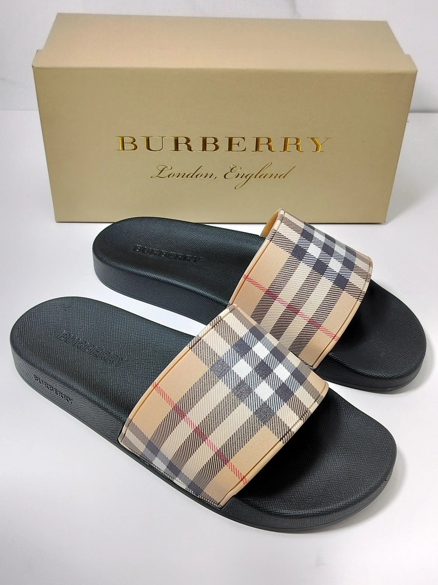 Burberry Classic Check Flat Slide Sandals are unisex, ideal for casual, beach & daily use.