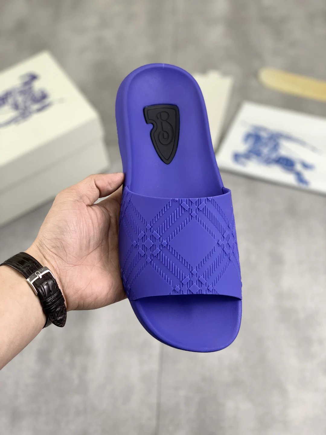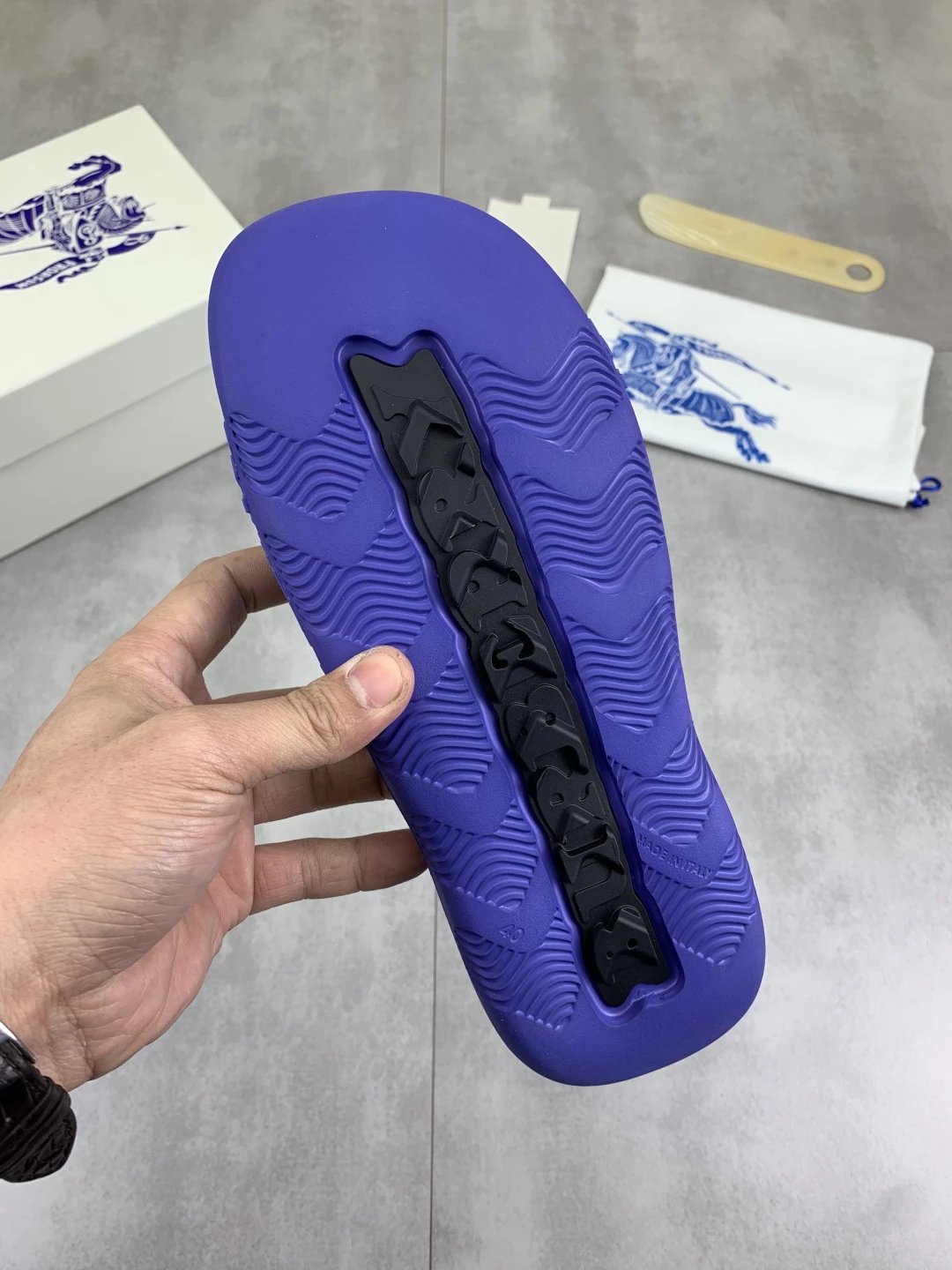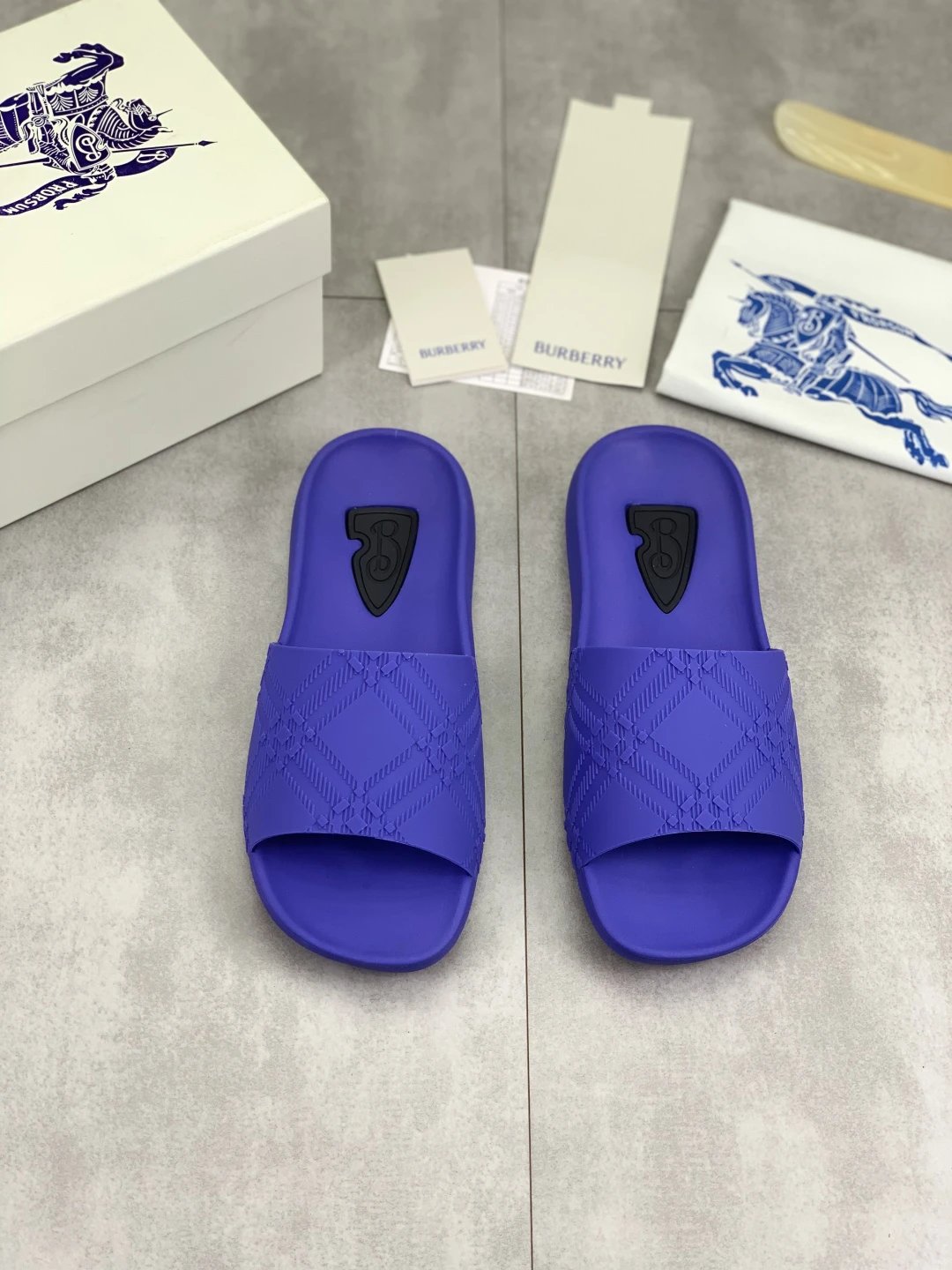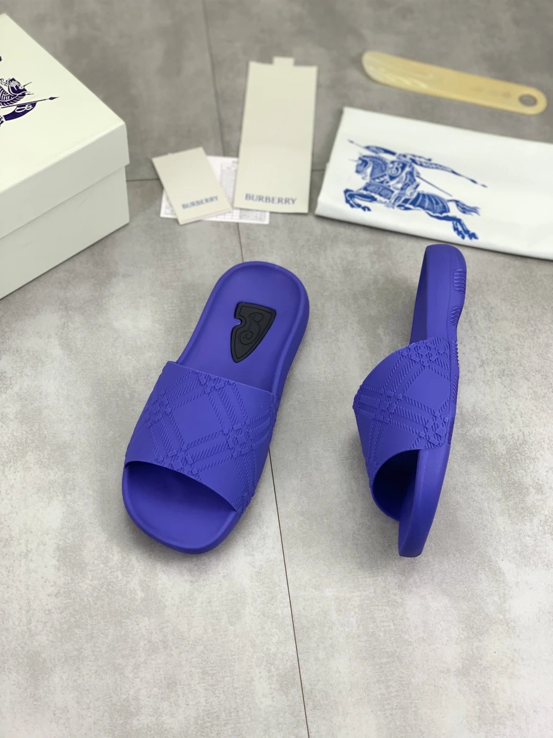 Burberry Slippers feature top craftsmanship, non-slip rubber sole, versatile & comfortable. Standard sizes 38-45 available, custom 45 option. Top packaging included.