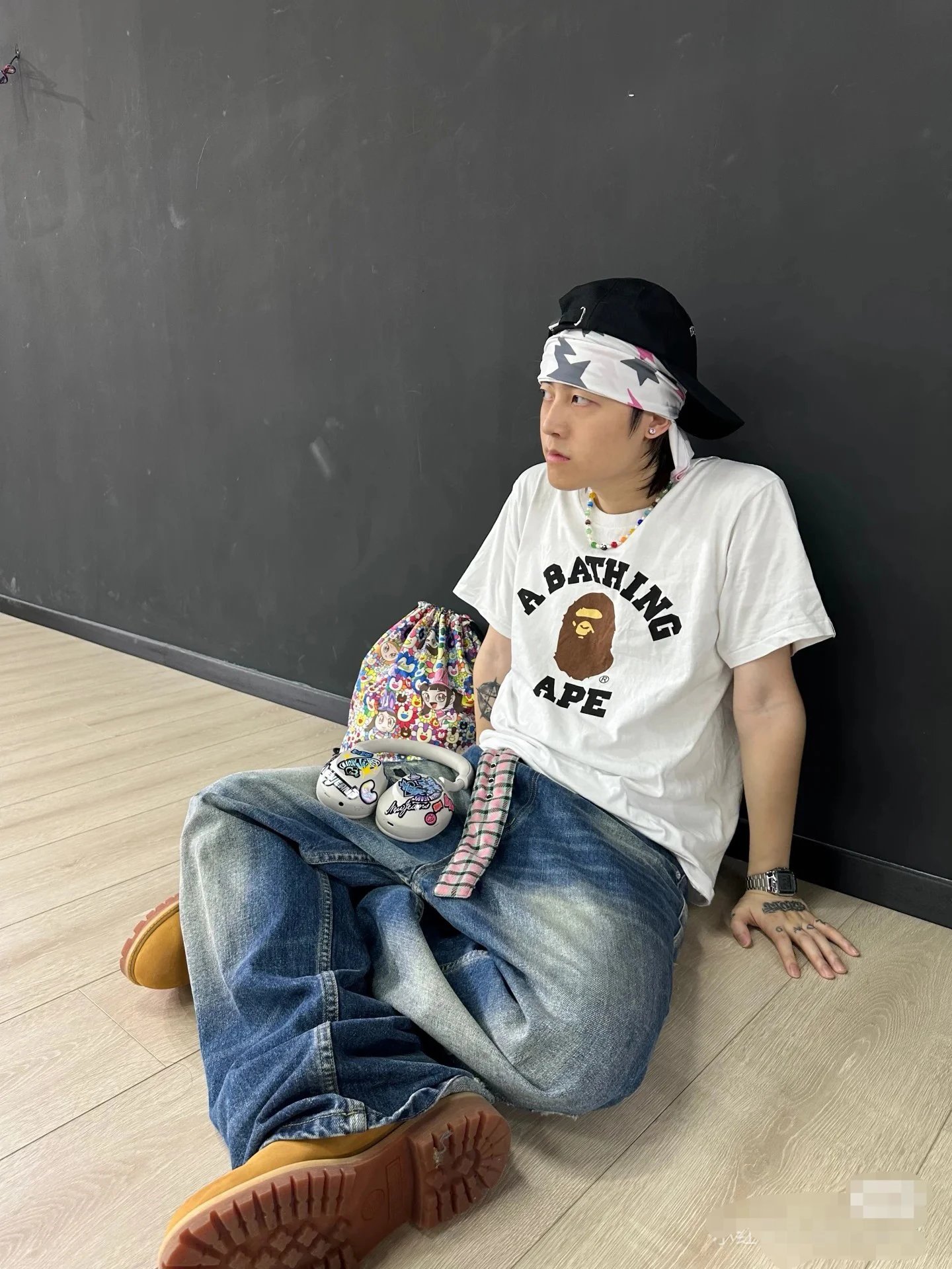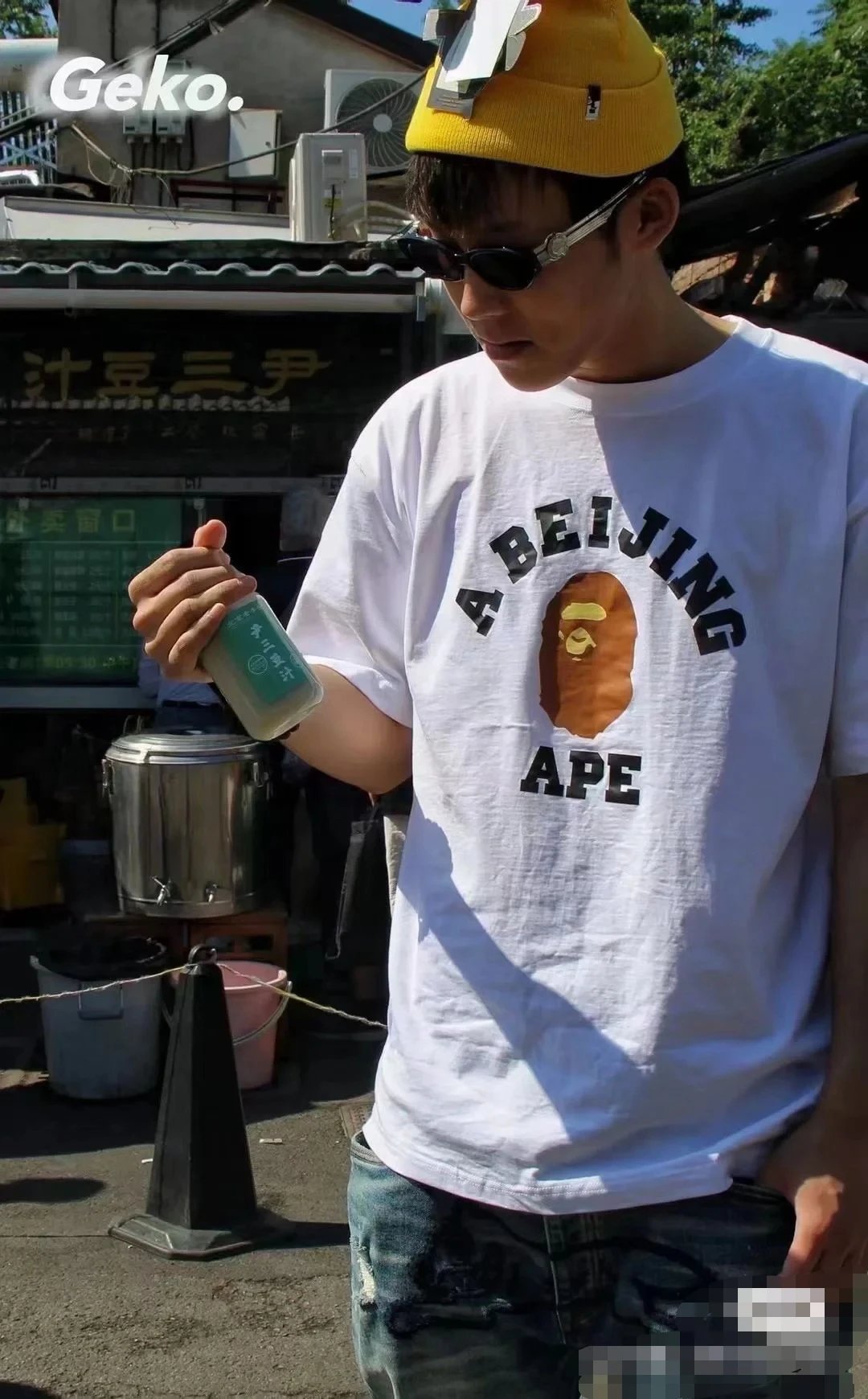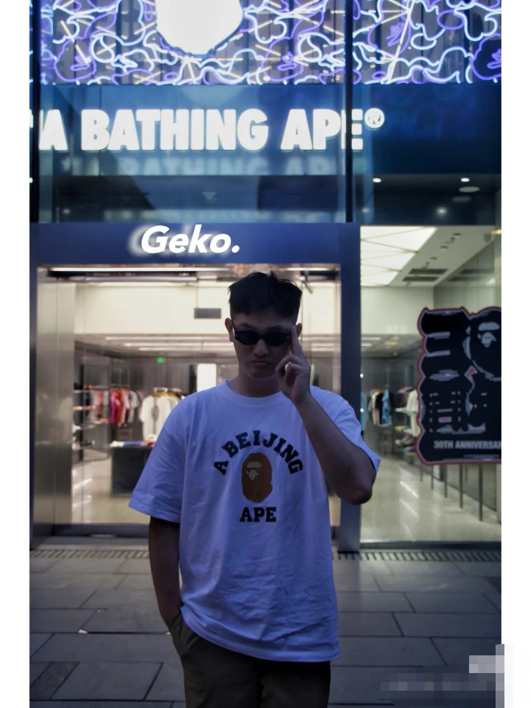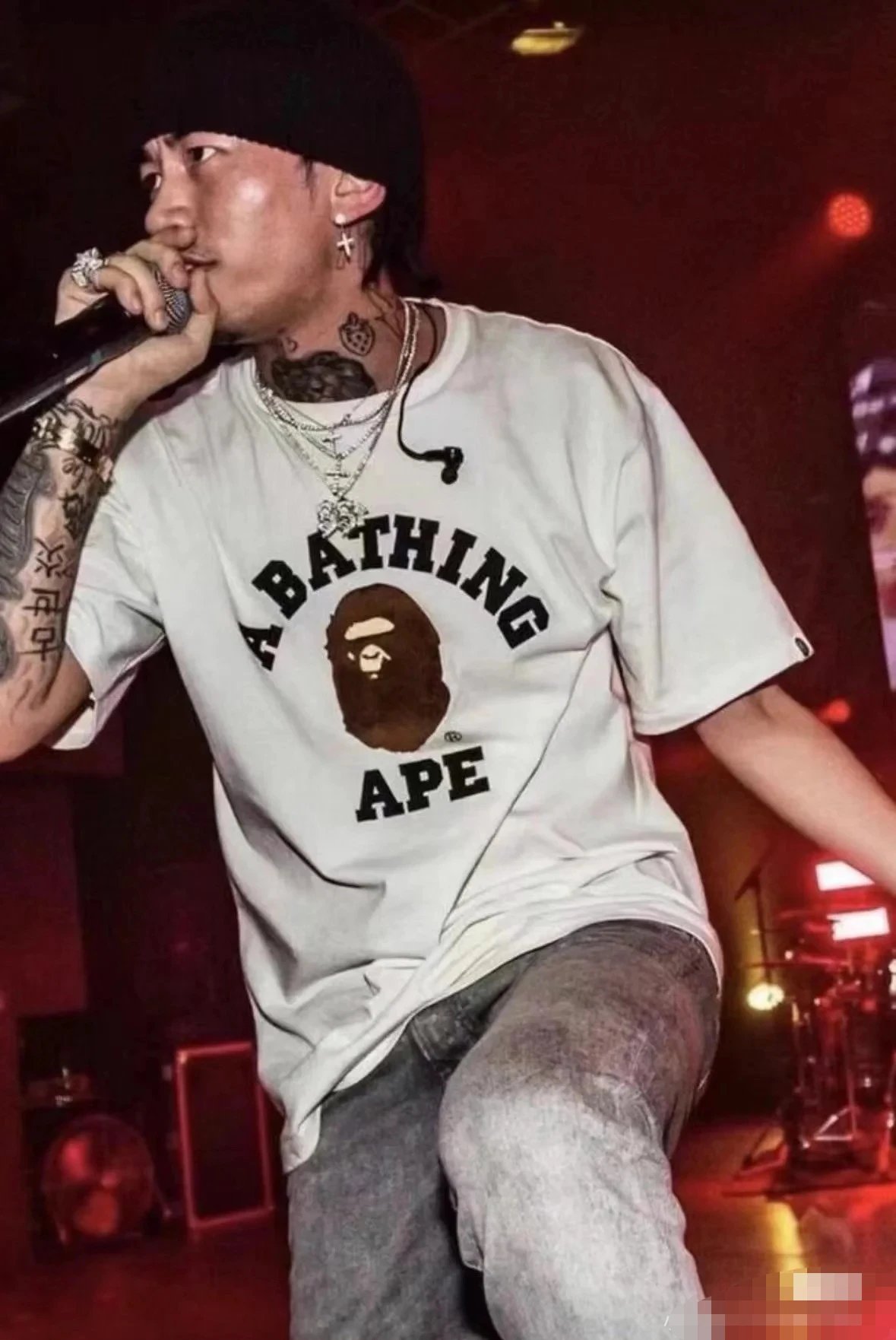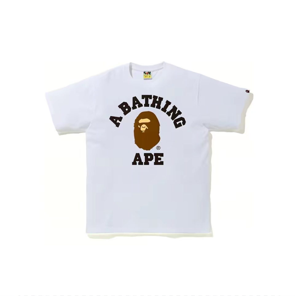 BAPE 00116 College Tee has ape head letter print & unisex short sleeve design.