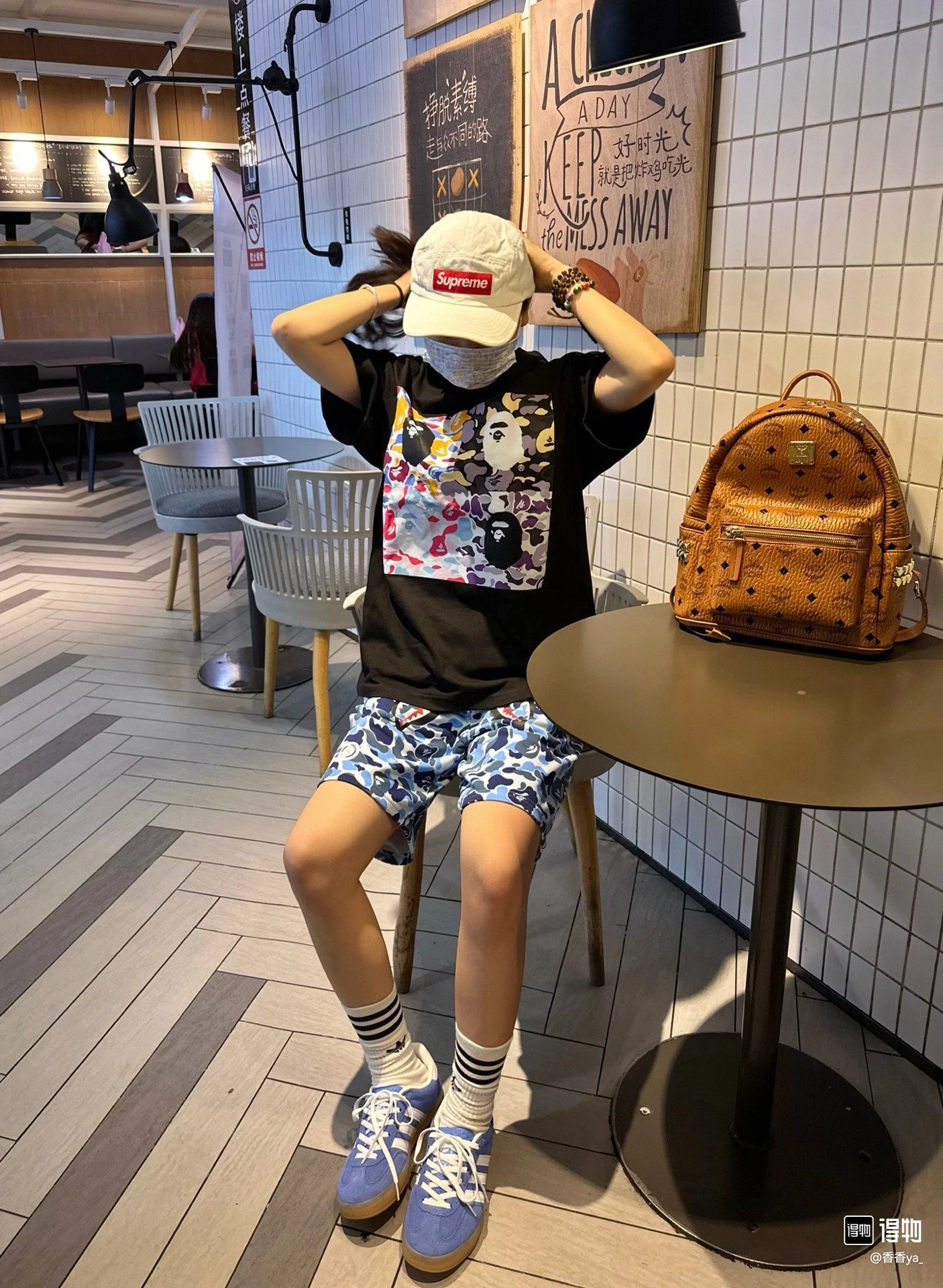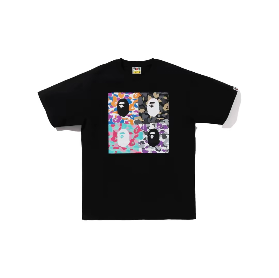 A BATHING APE 00135 US Limited Collection Camo Short Sleeve T-Shirt is unisex with unique camo design.