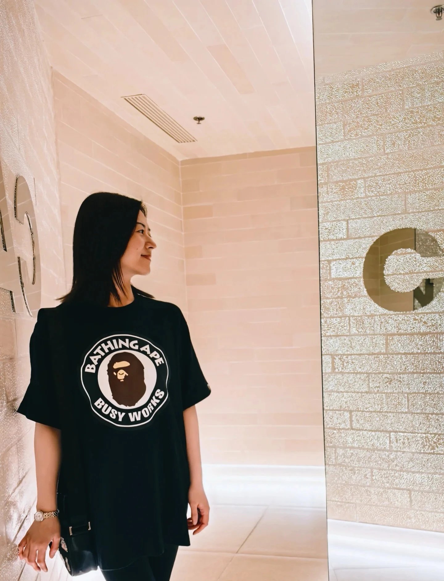 BAPE 00185 Letter Print Short Sleeve T-Shirt is unisex with letter prints. Available in black & white, sizes S, M, L, XL, 2XL.