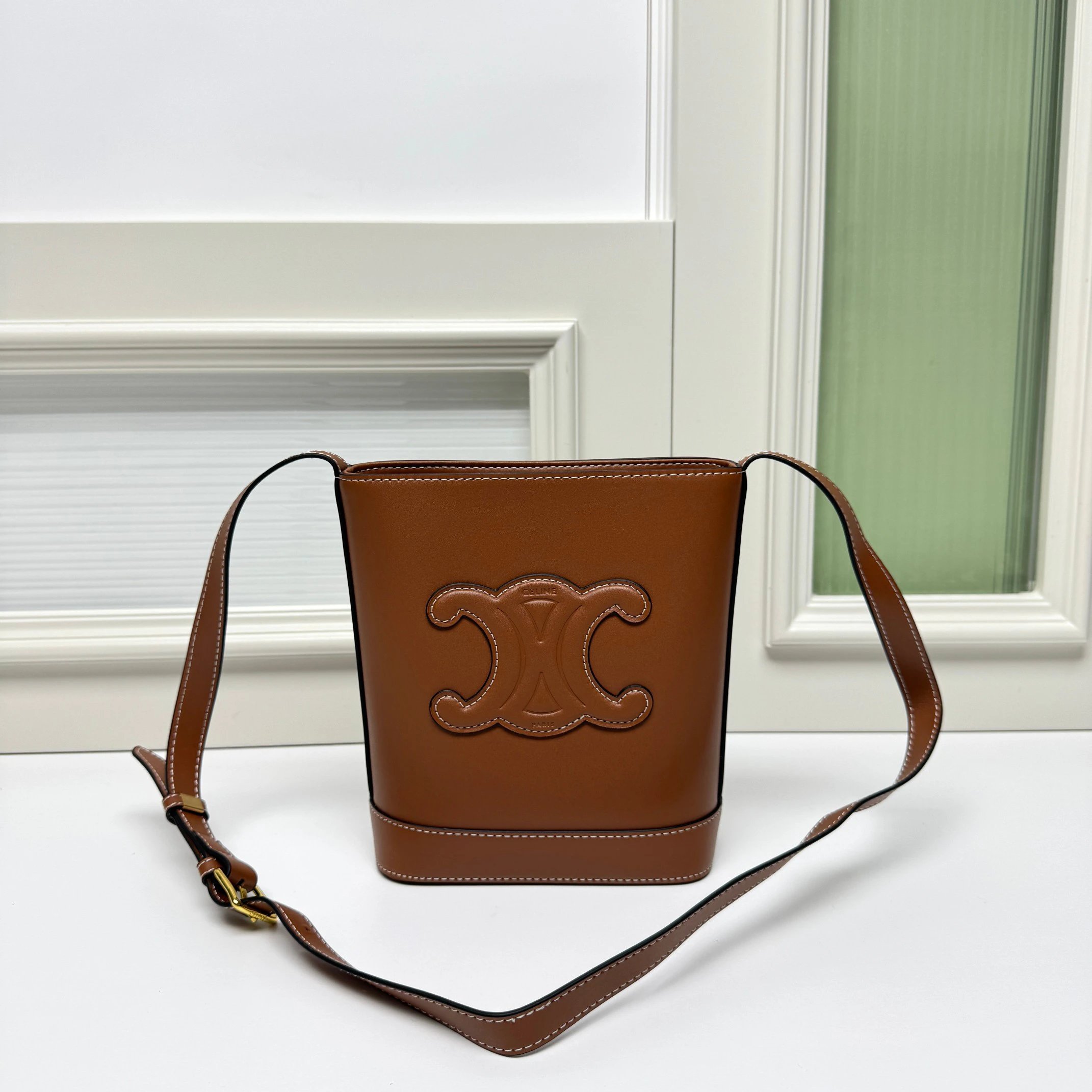 CELINE Mini Bucket Bag (009) is the mini version of the embossed bucket bag, same design but smaller size.