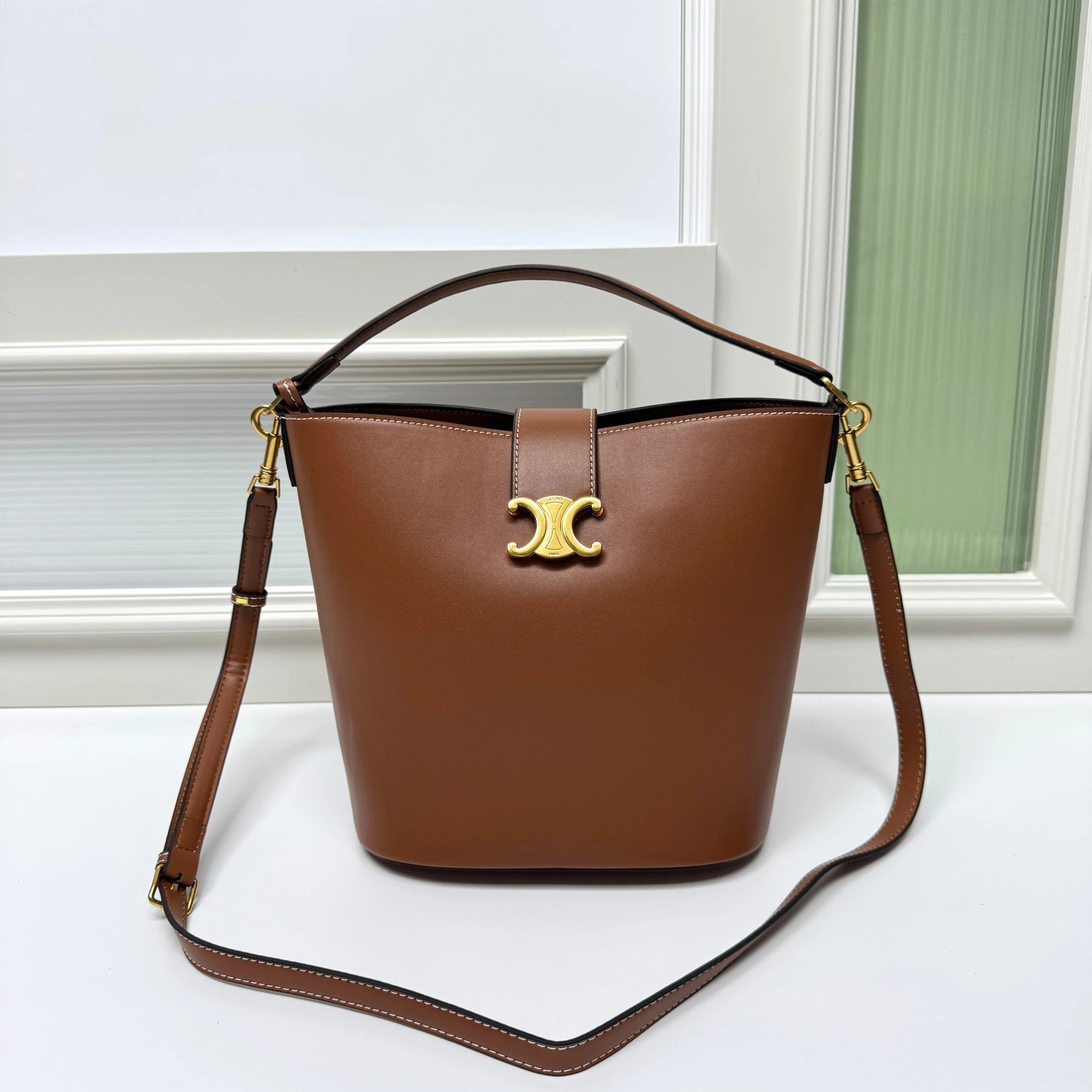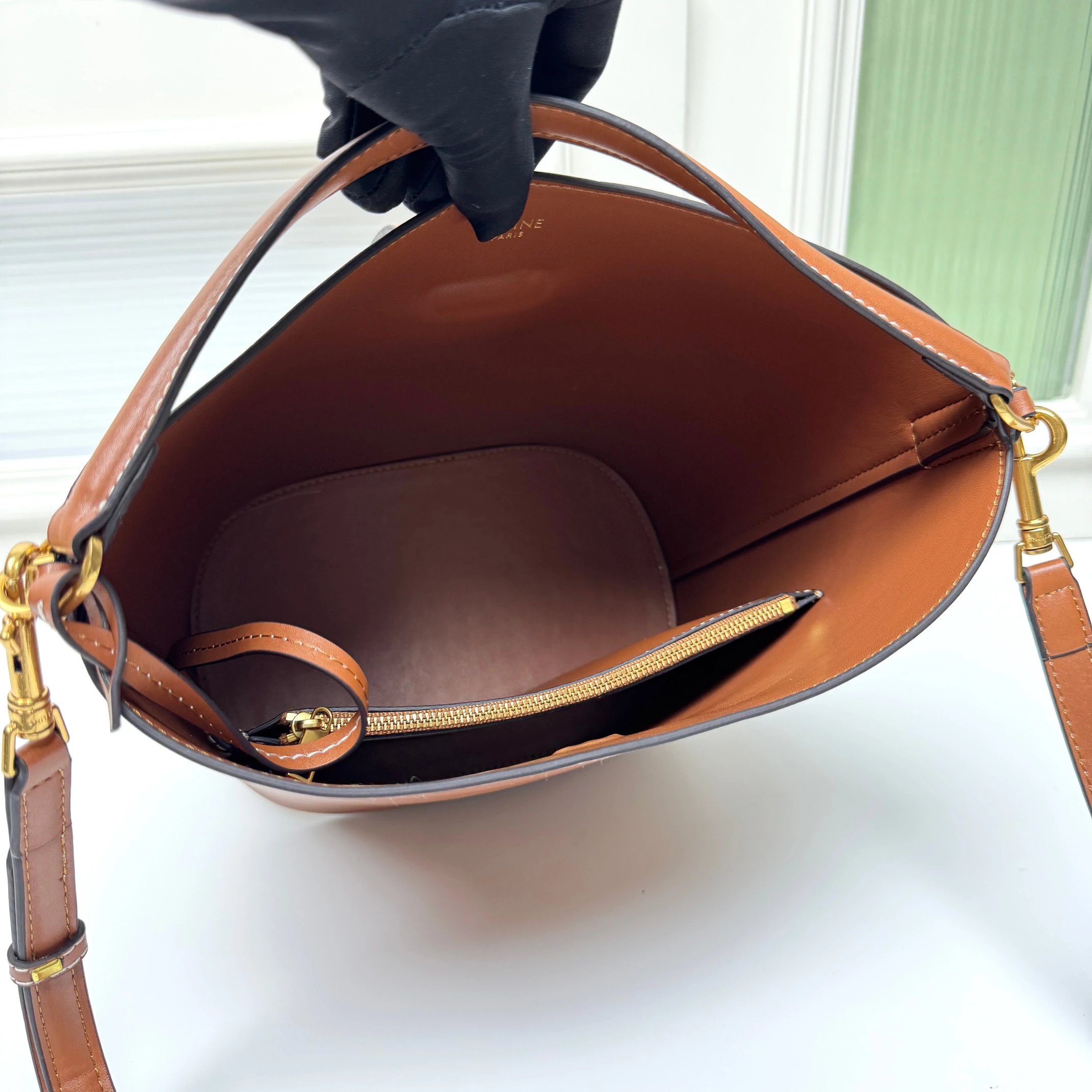 CELINE Louise is a new bucket bag crafted from glossy fine calfskin with a sleek silhouette.