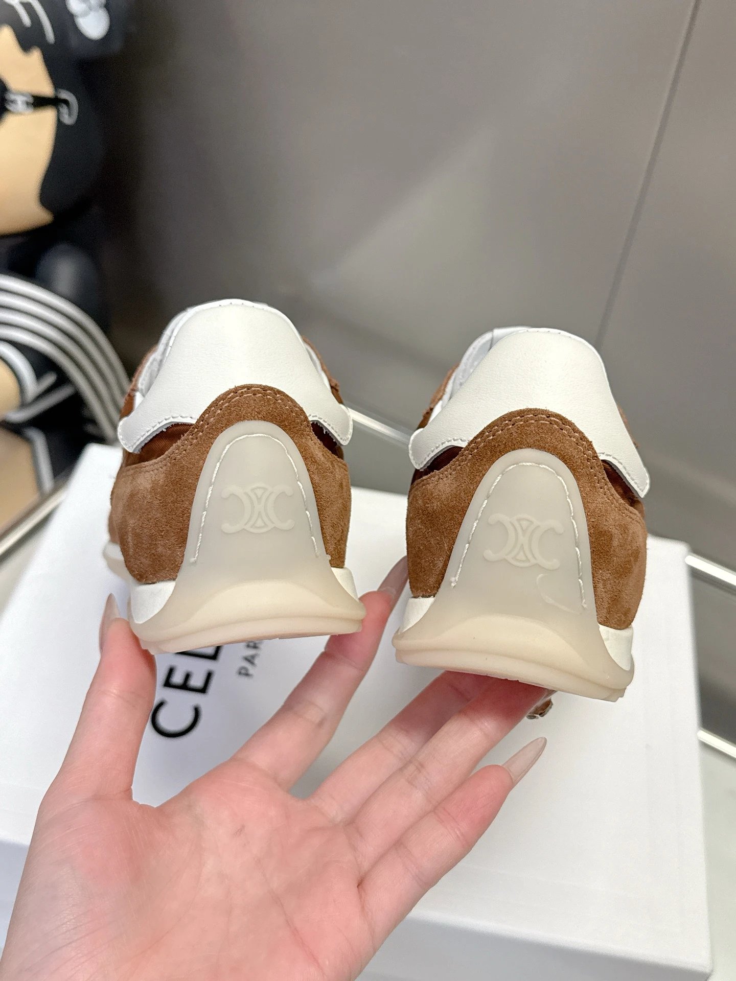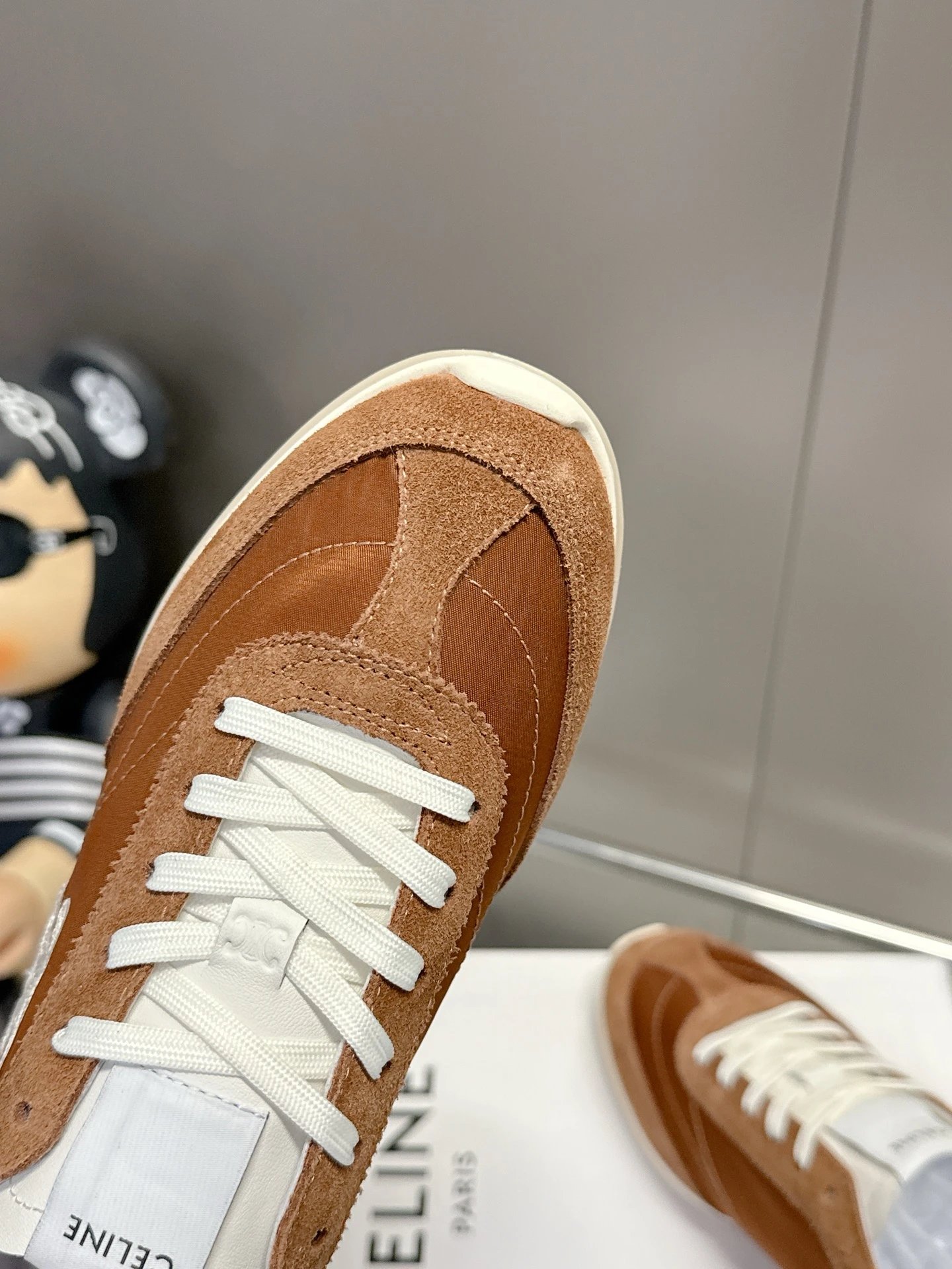 Made from nylon, suede & smooth calfskin, breathable, with iconic Triomphe logo. Customizable sizes 35-41.