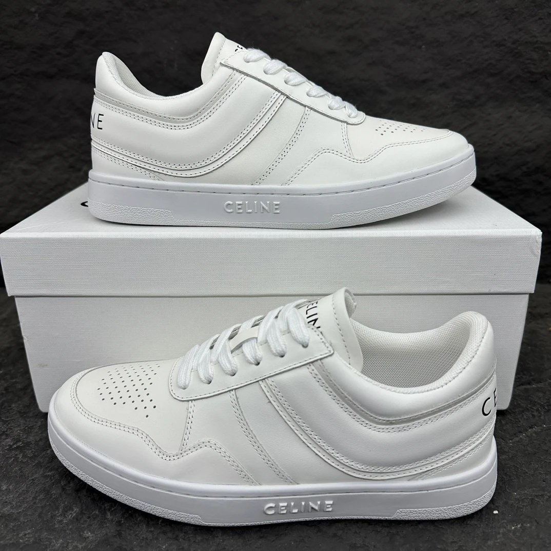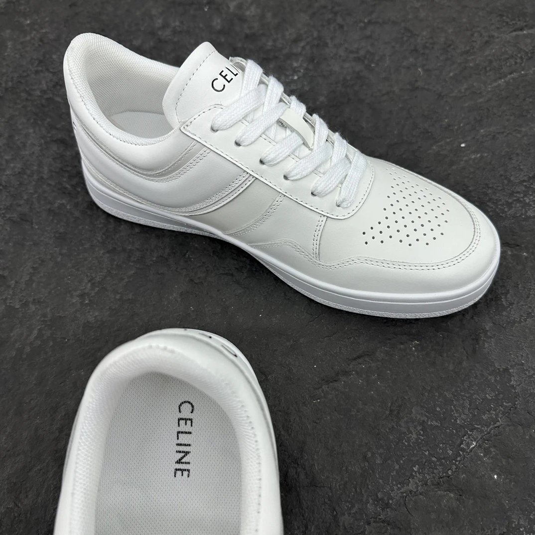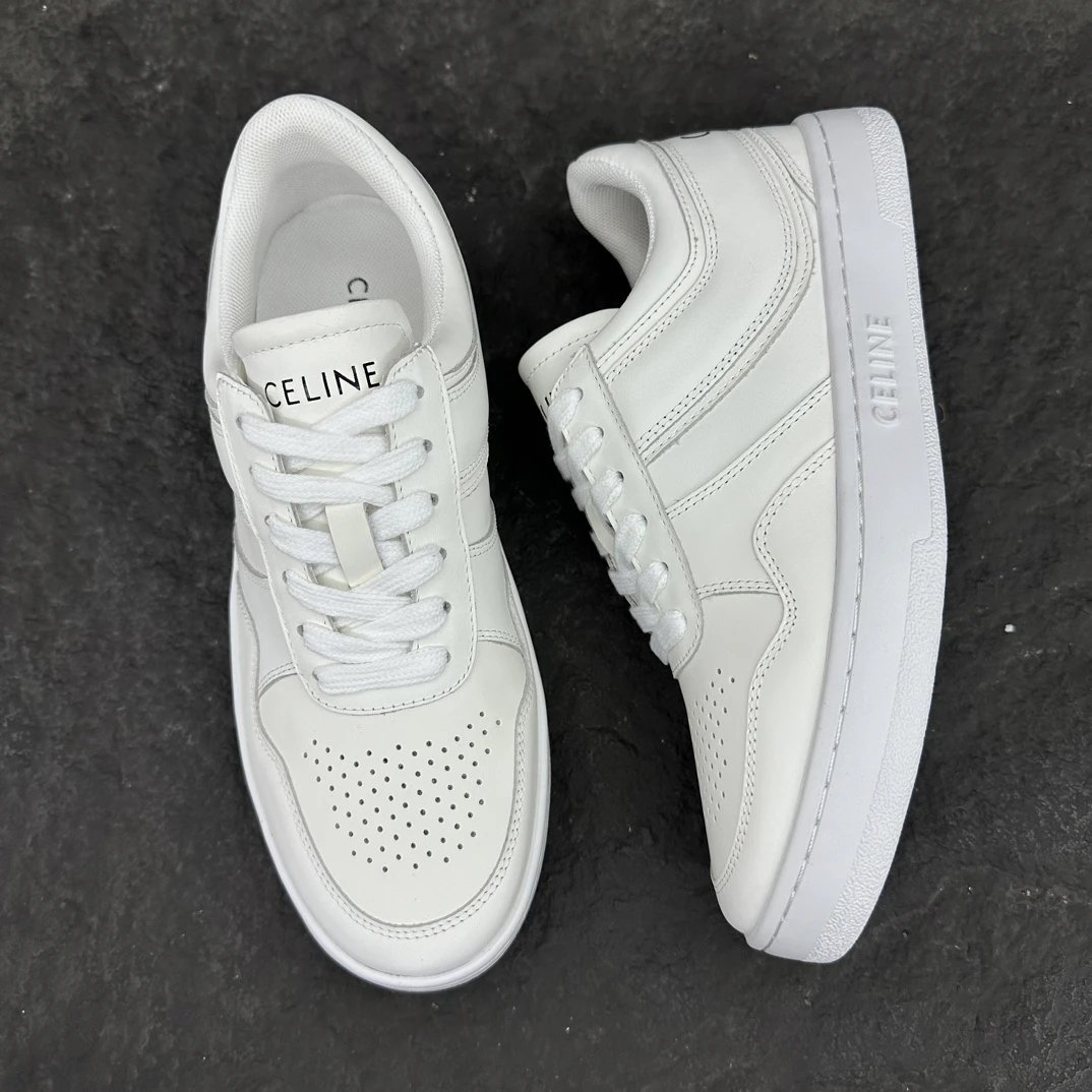 CELINE TRAINER unisex sneakers in fluorescent white calfskin.