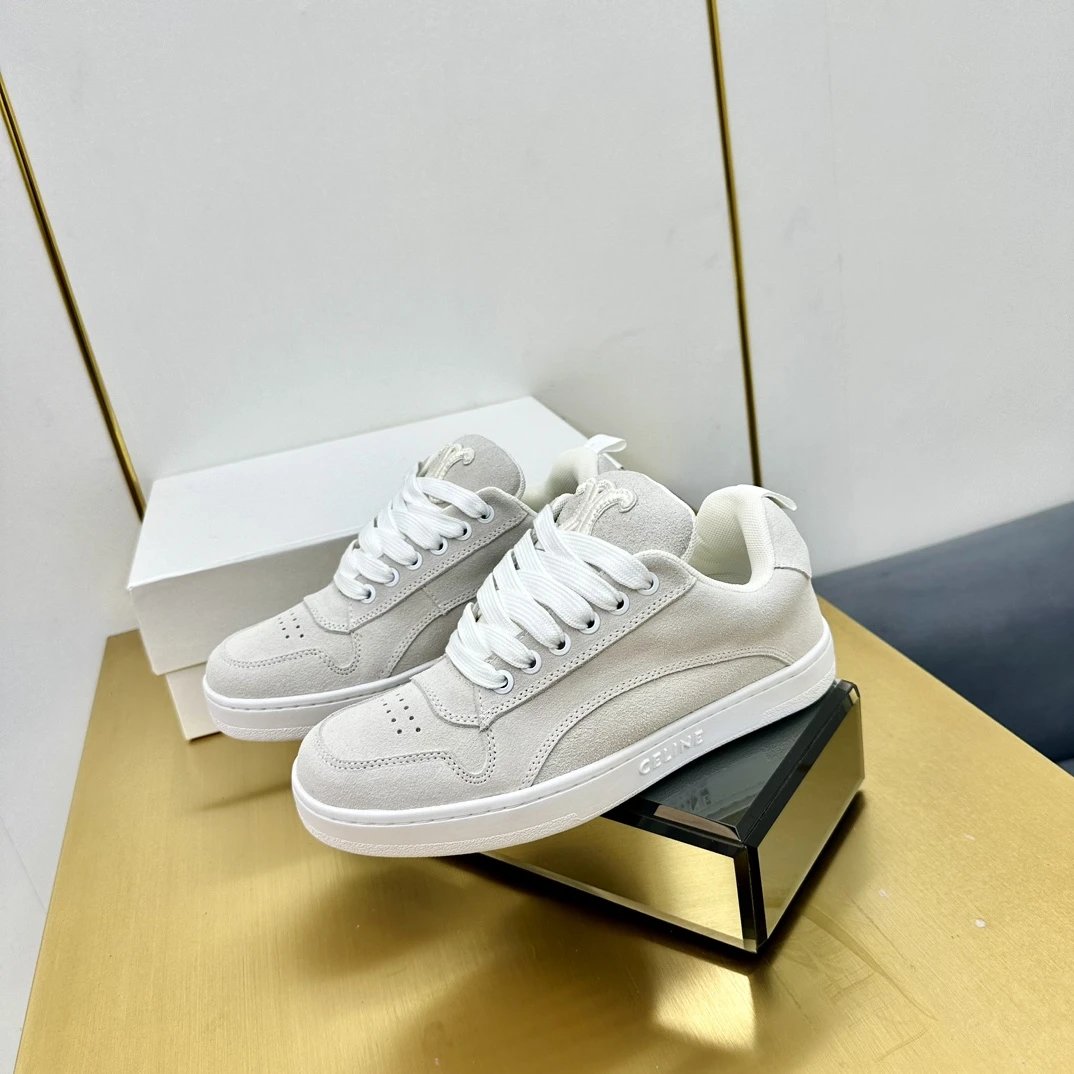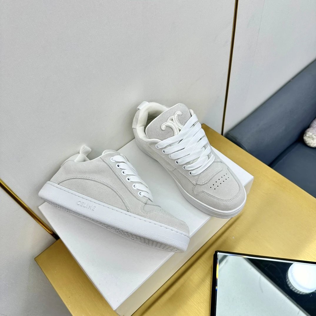 Chunky shape loved by bloggers/stars; cow suede upper, breathable mesh lining, anti-slip rubber outsole.