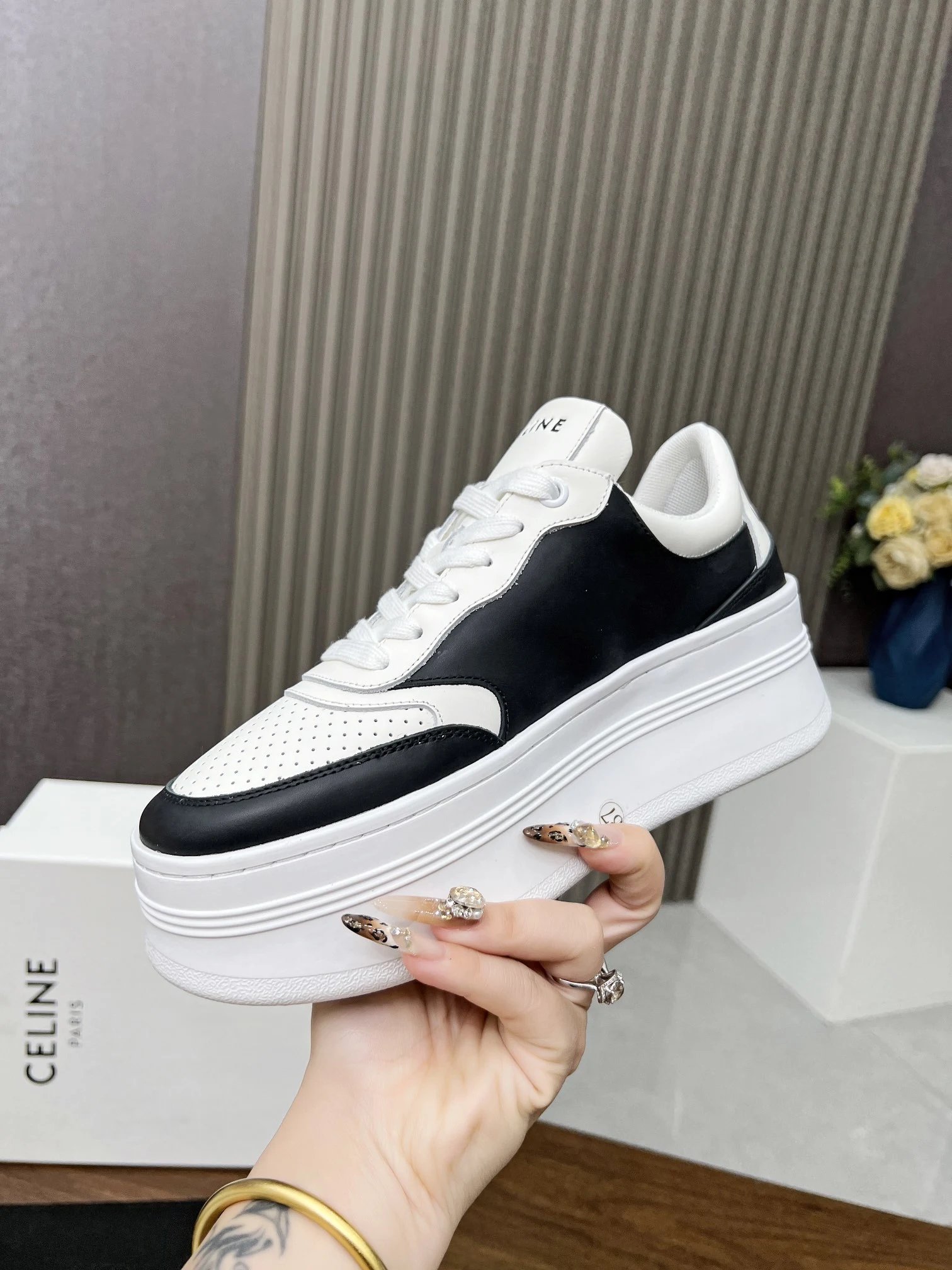 Upper: calfskin (color contrast); Lining: original; Outsole: rubber.