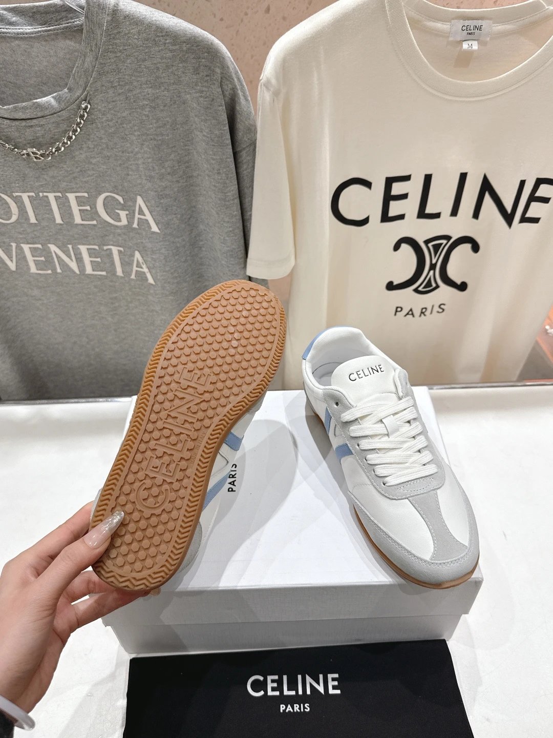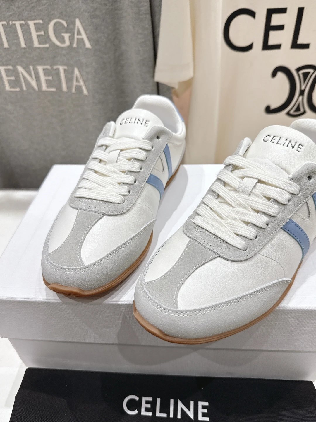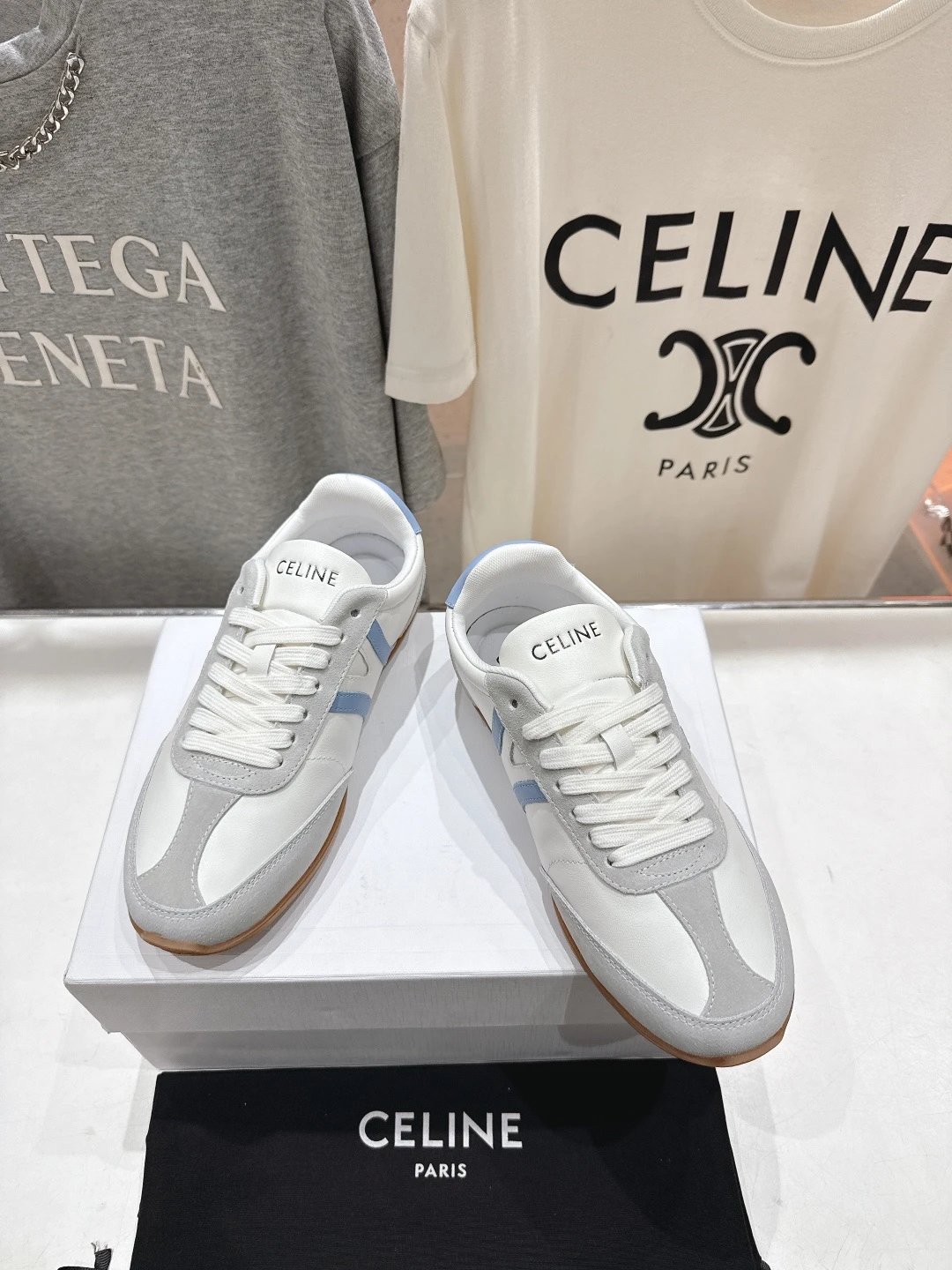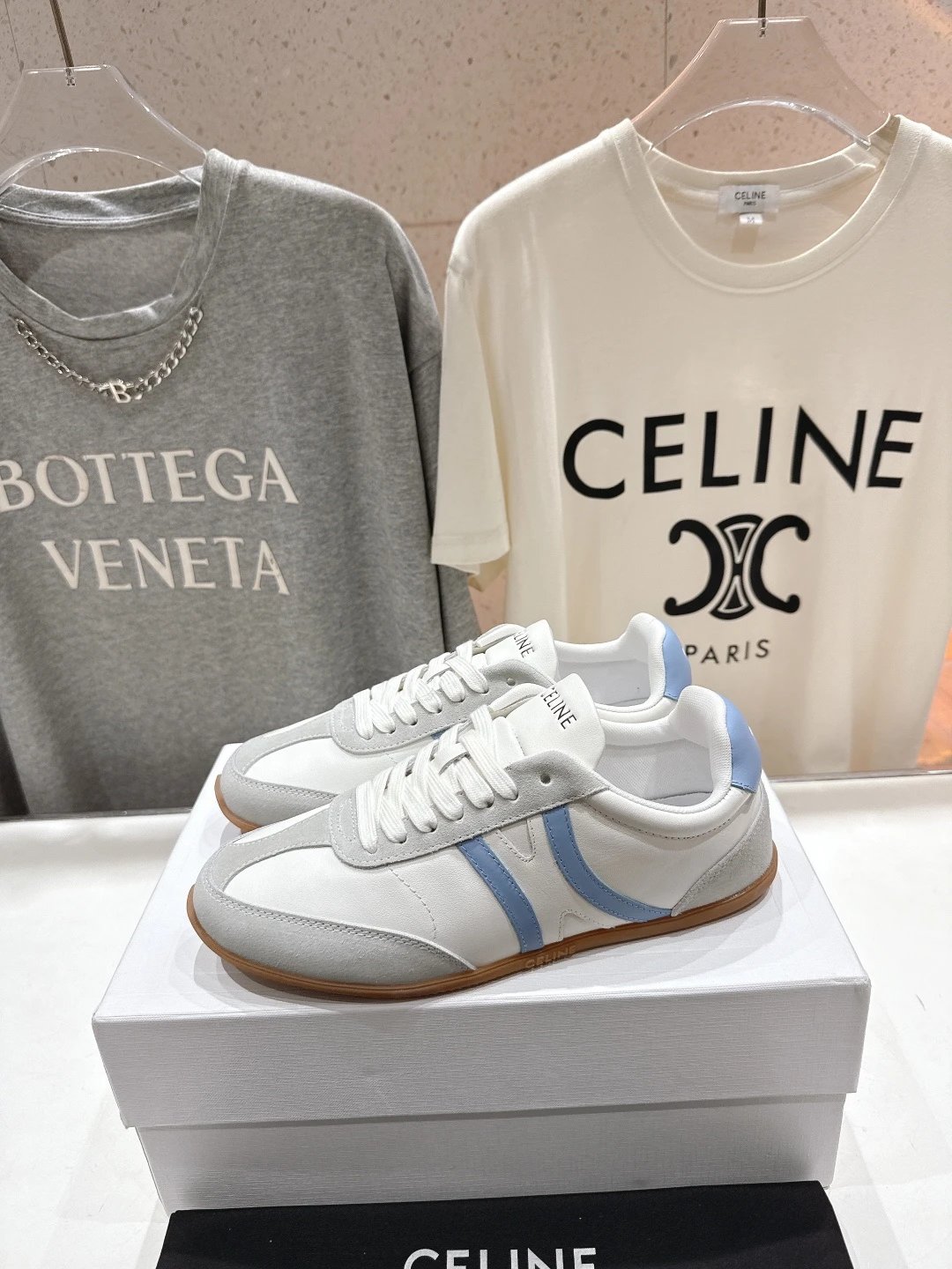CELINE New Logo Lace-Up White Sneakers are casual sports shoes with a clean, versatile design.