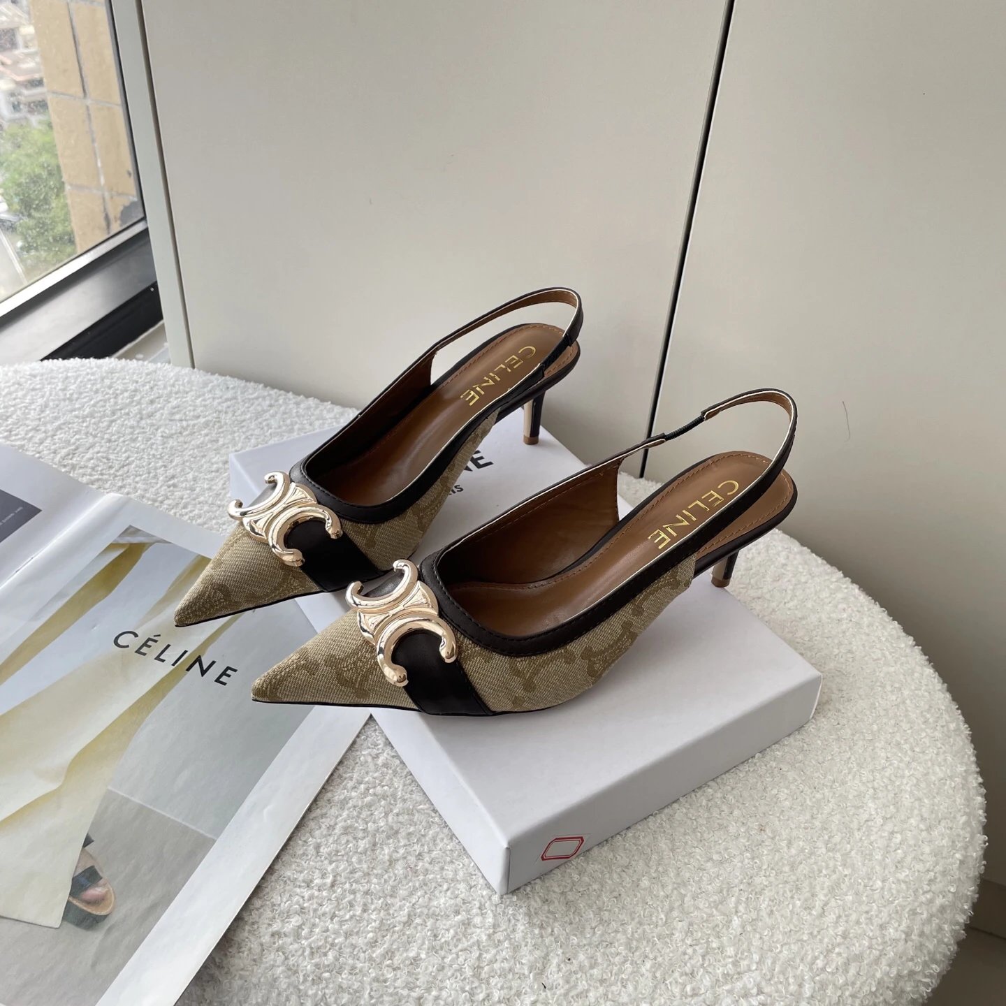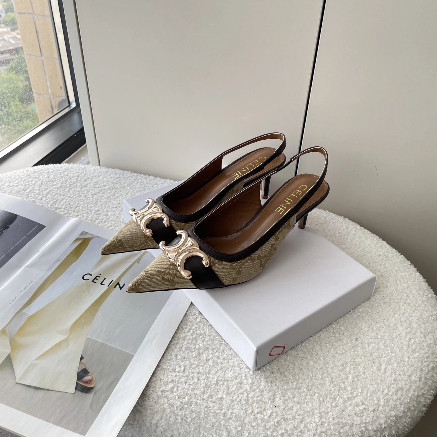 CELINE 2025 Summer New Triumphal Arch Print High Heels