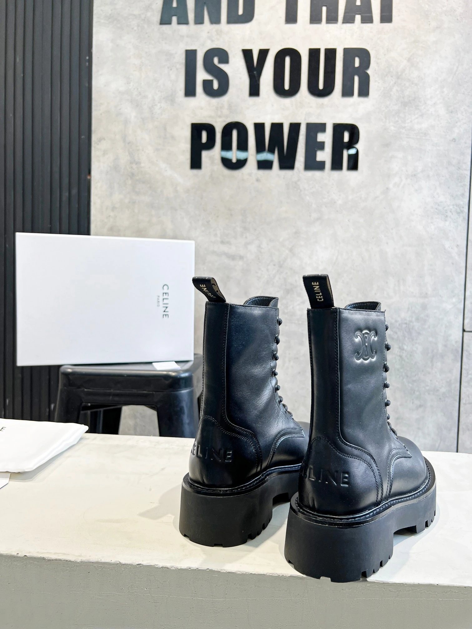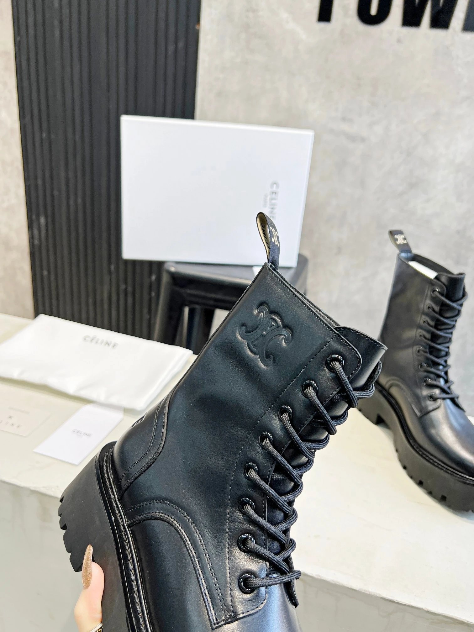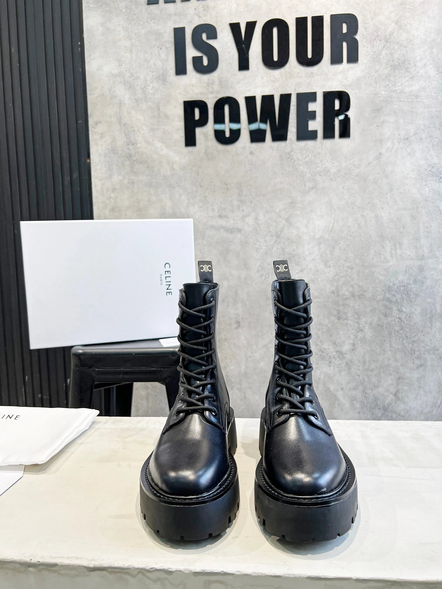 Home > Goods List CELINE New Lace-Up Marten Ankle Boots, Italian Leather, Sizes 35-40