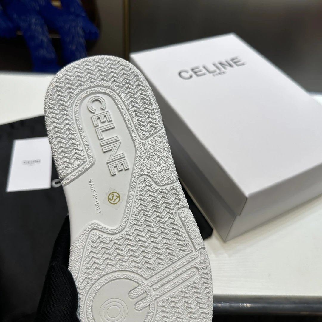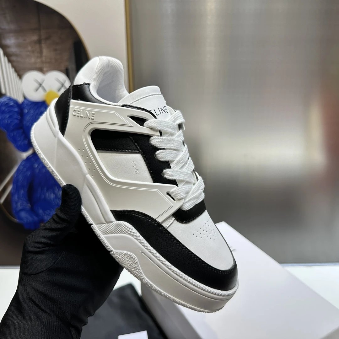 Celine 23ss CT07 Unisex Low-Top White Sneakers (spring-summer new). Panda color, comfy, versatile; unique side/heels logos.